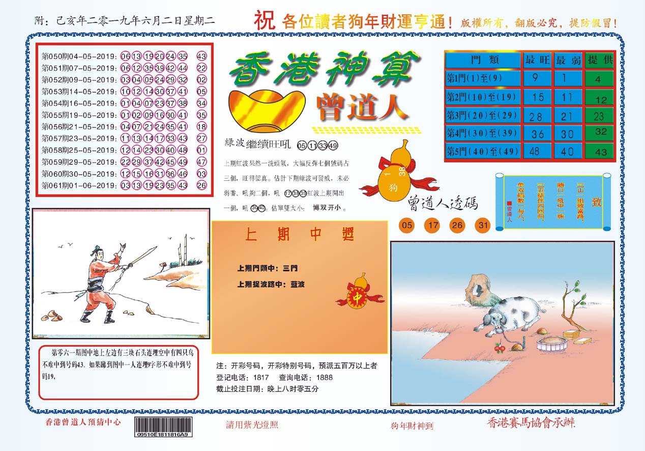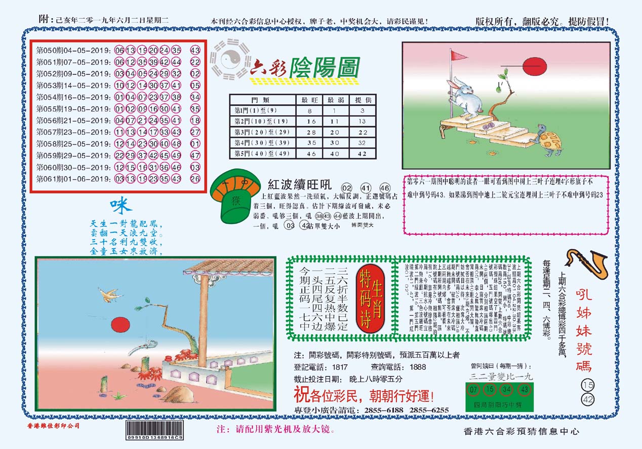 | 1765 | 黄大仙救世报 | 1766 | 香港马会专刊A | 1767 | 香港马会专刊B | 1768 | 赌王心经 |