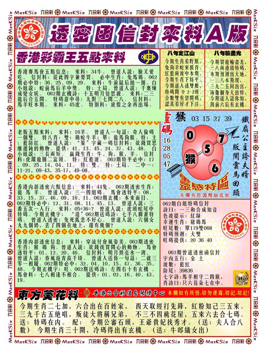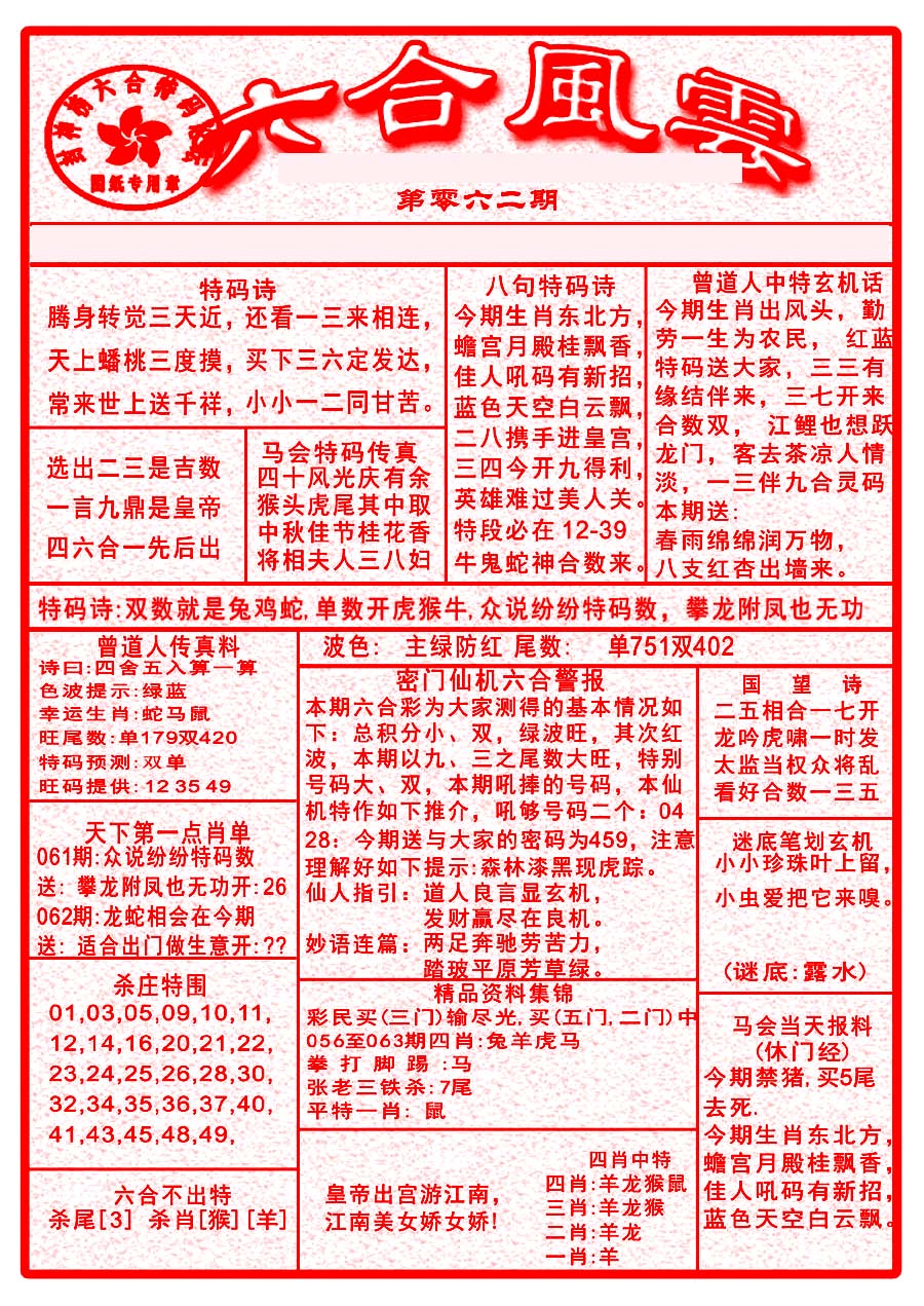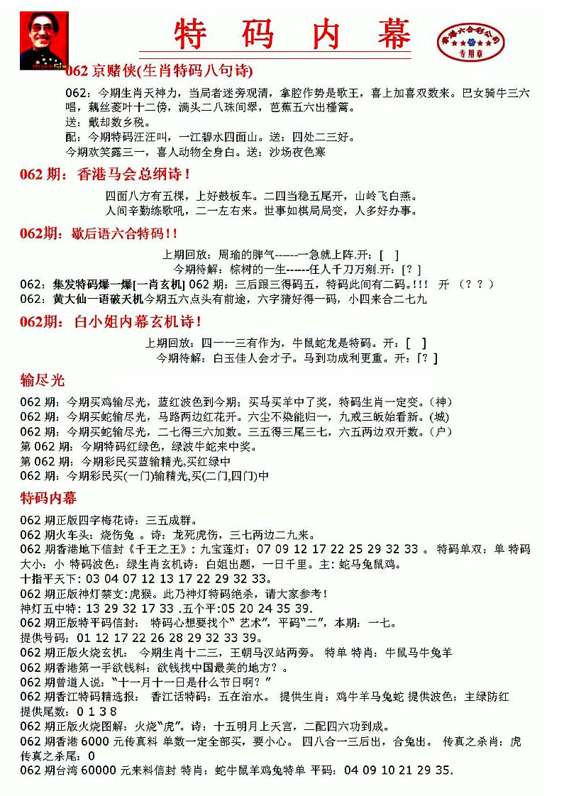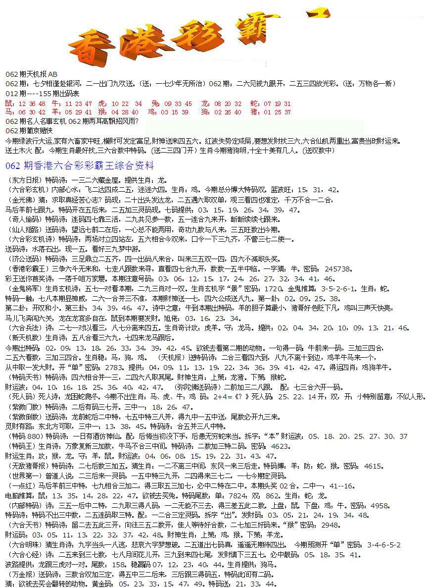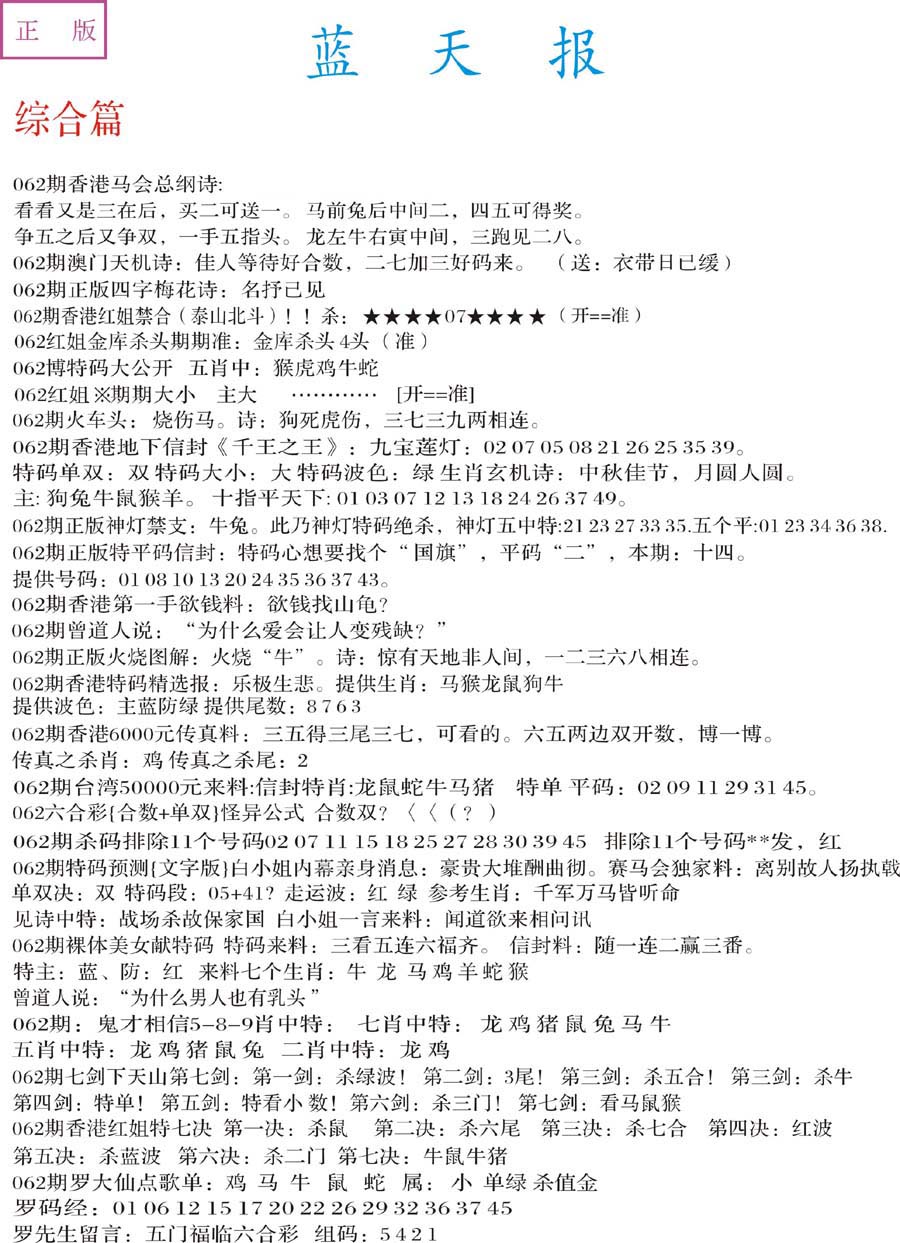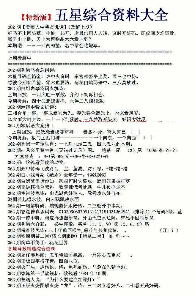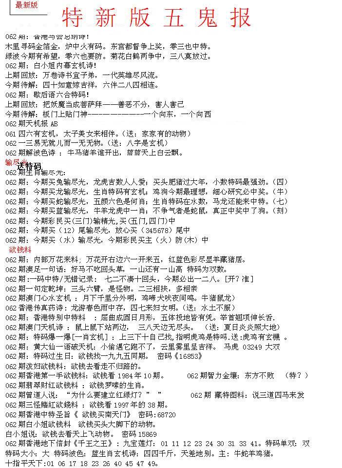 | 063 | 六合禅机A | 064 | 六合禅机B | 069 | 特 新 报A | 070 | 特 新 报B | |||||||||||||||||||||||||||||||||||||||||||||||||||
