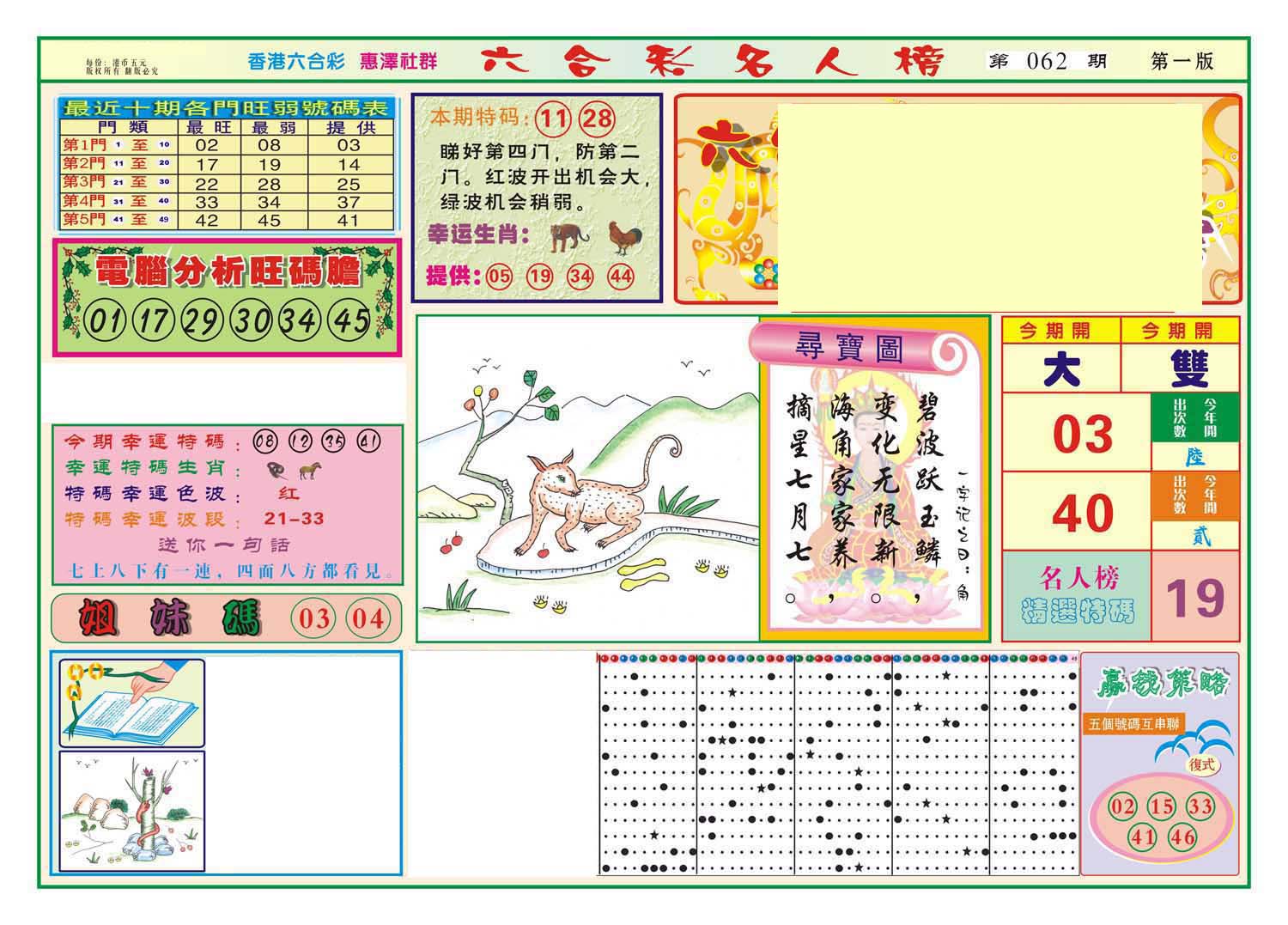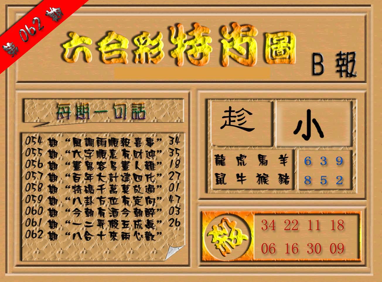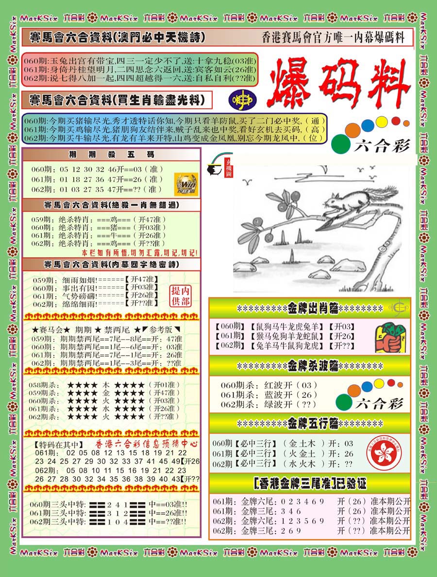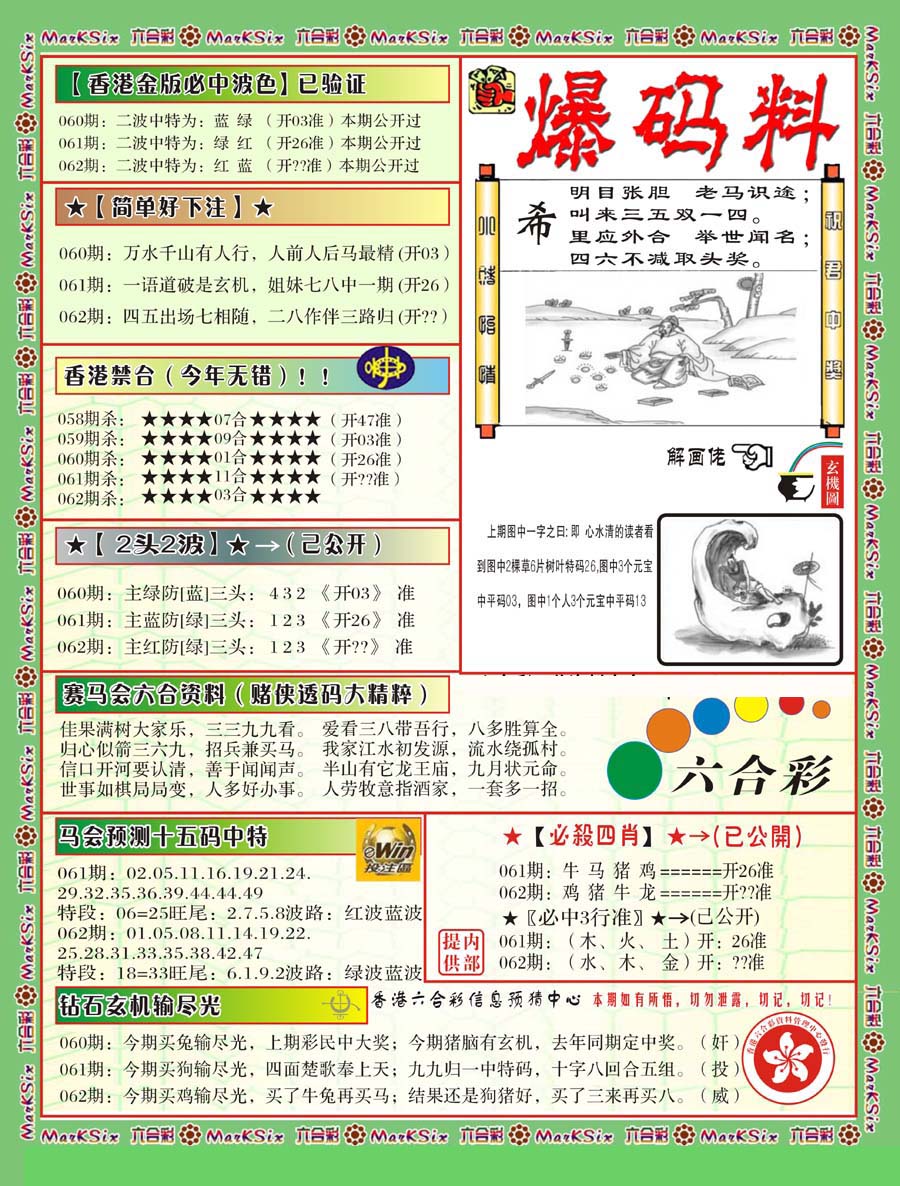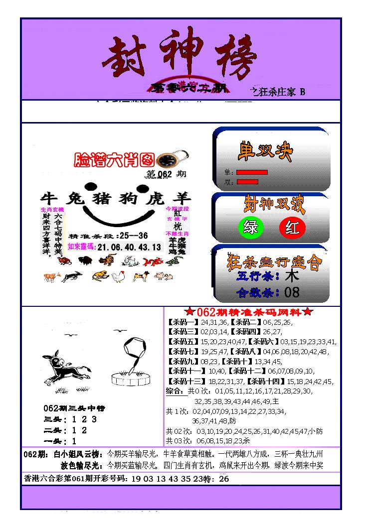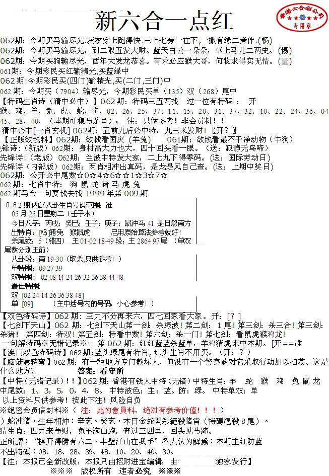 | 063 | 六合禅机A | 064 | 六合禅机B | 069 | 特 新 报A | 070 | 特 新 报B | |||||||||||||||||||||||||||||||||||||||||||||||||||