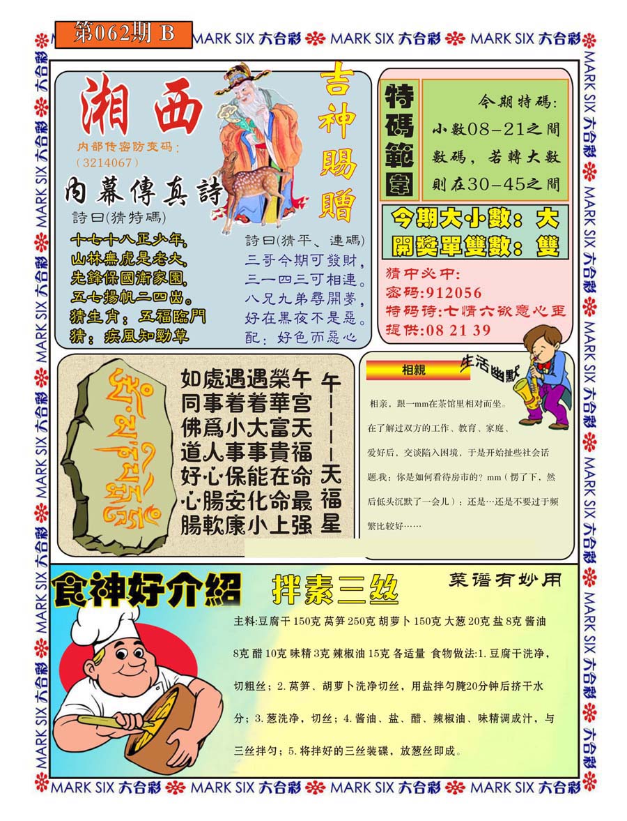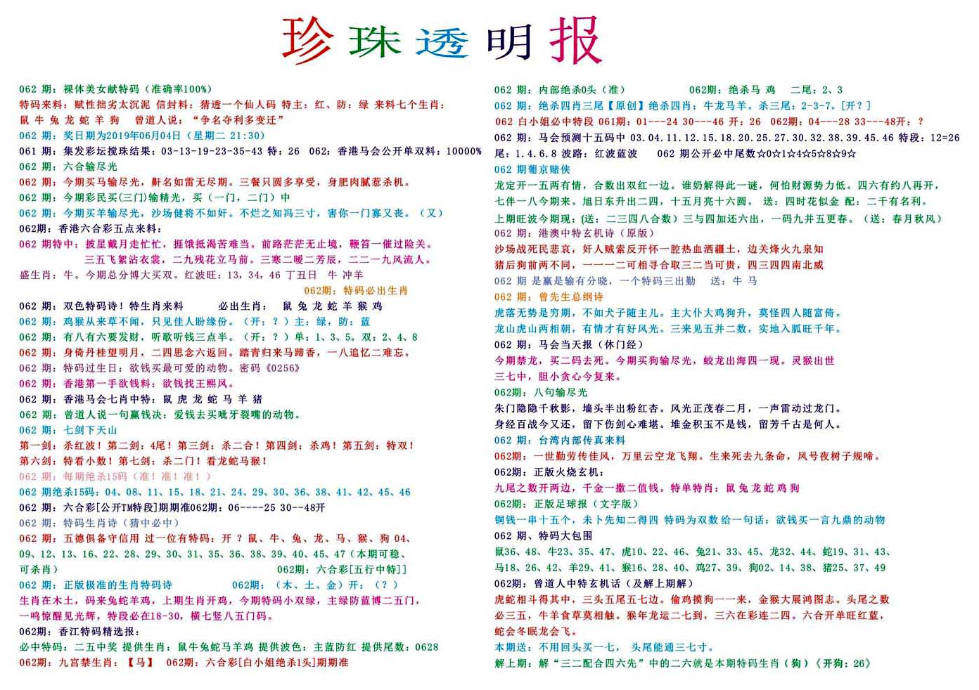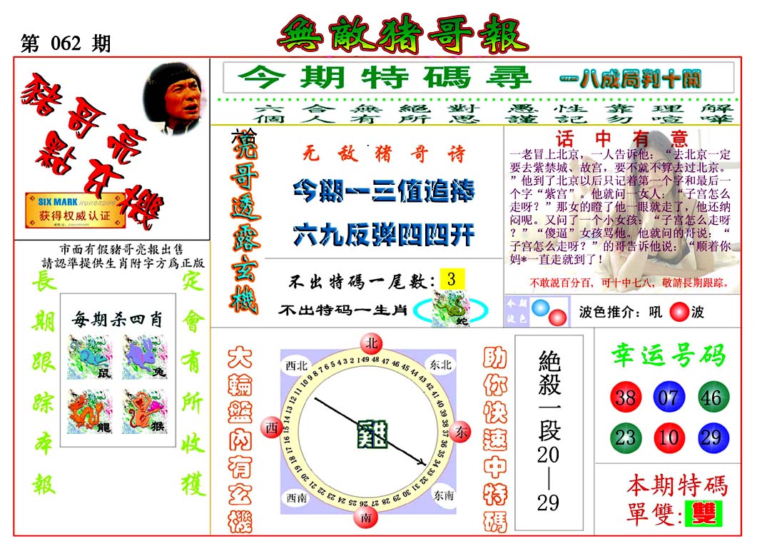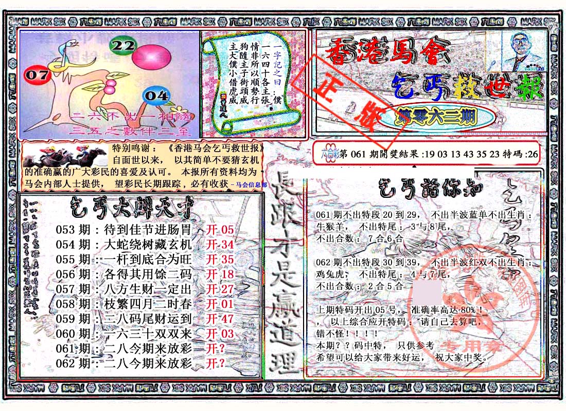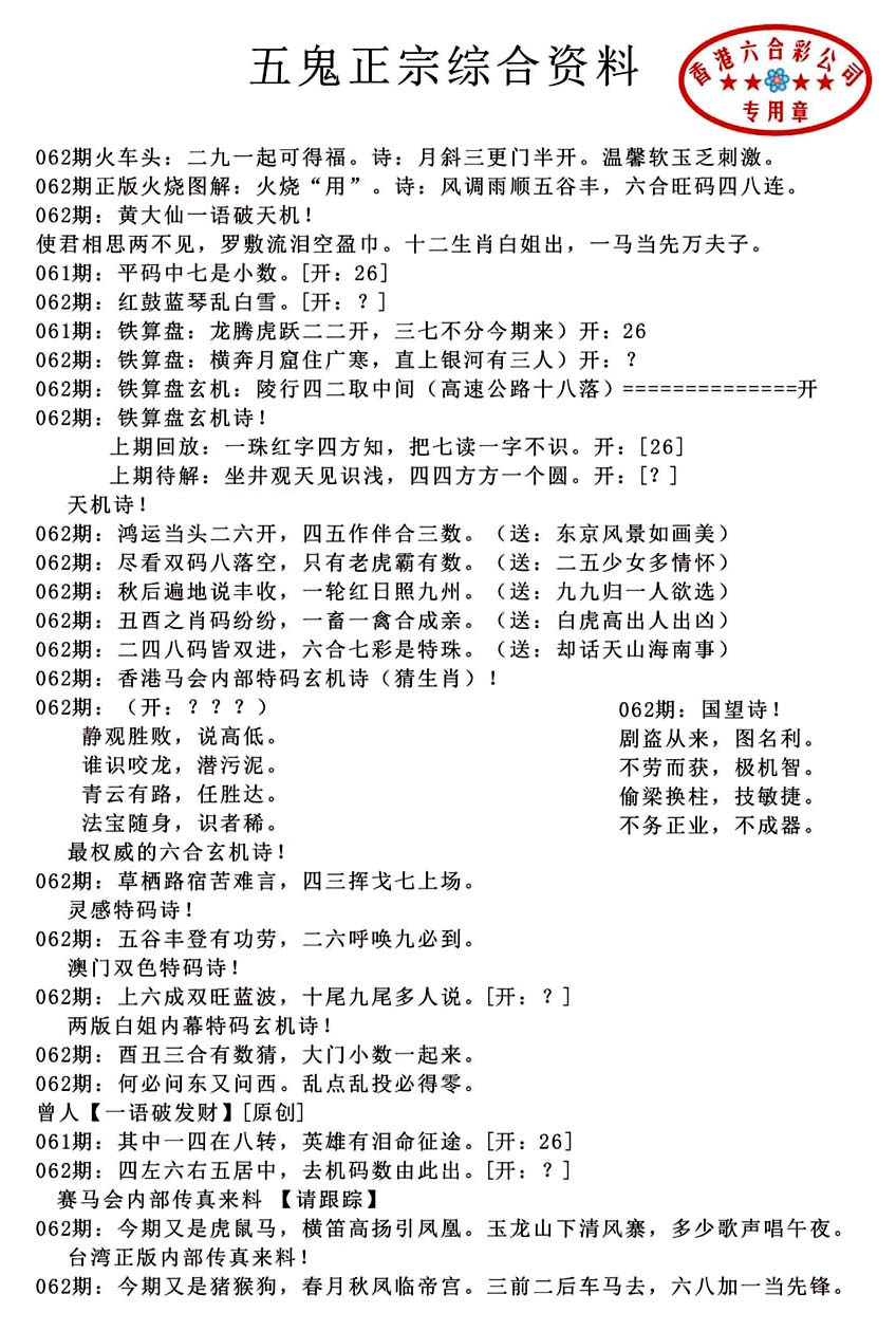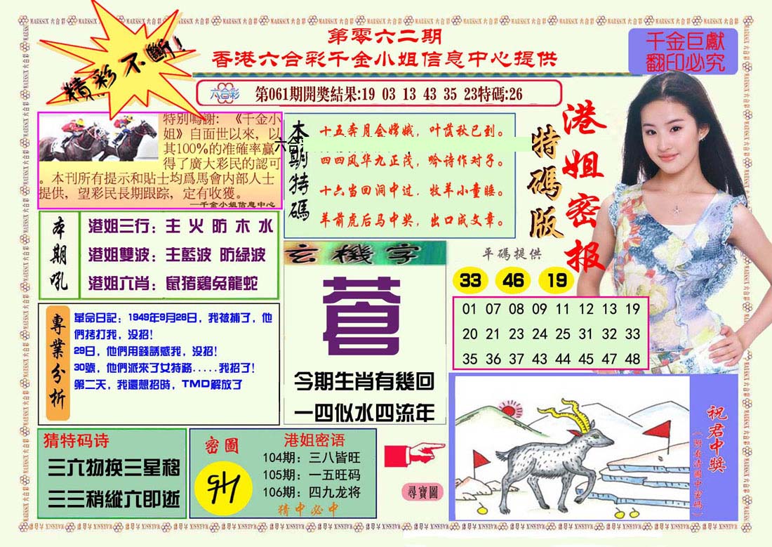 | 063 | 六合禅机A | 064 | 六合禅机B | 069 | 特 新 报A | 070 | 特 新 报B | |||||||||||||||||||||||||||||||||||||||||||||||||||