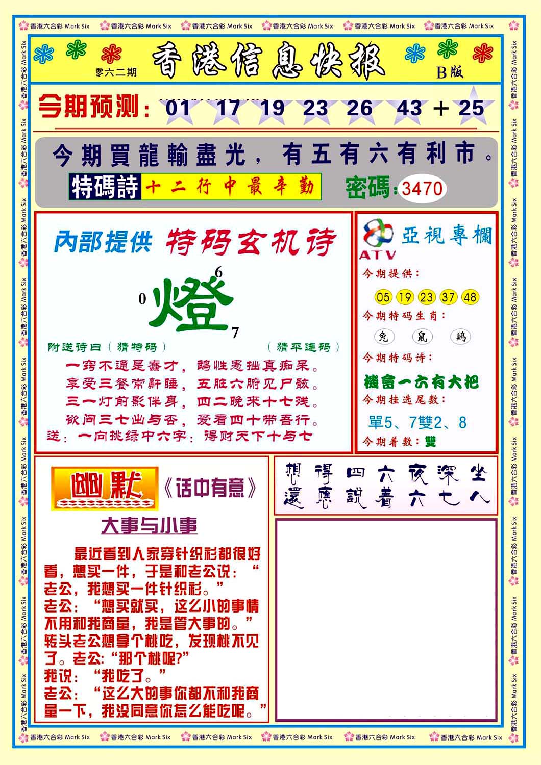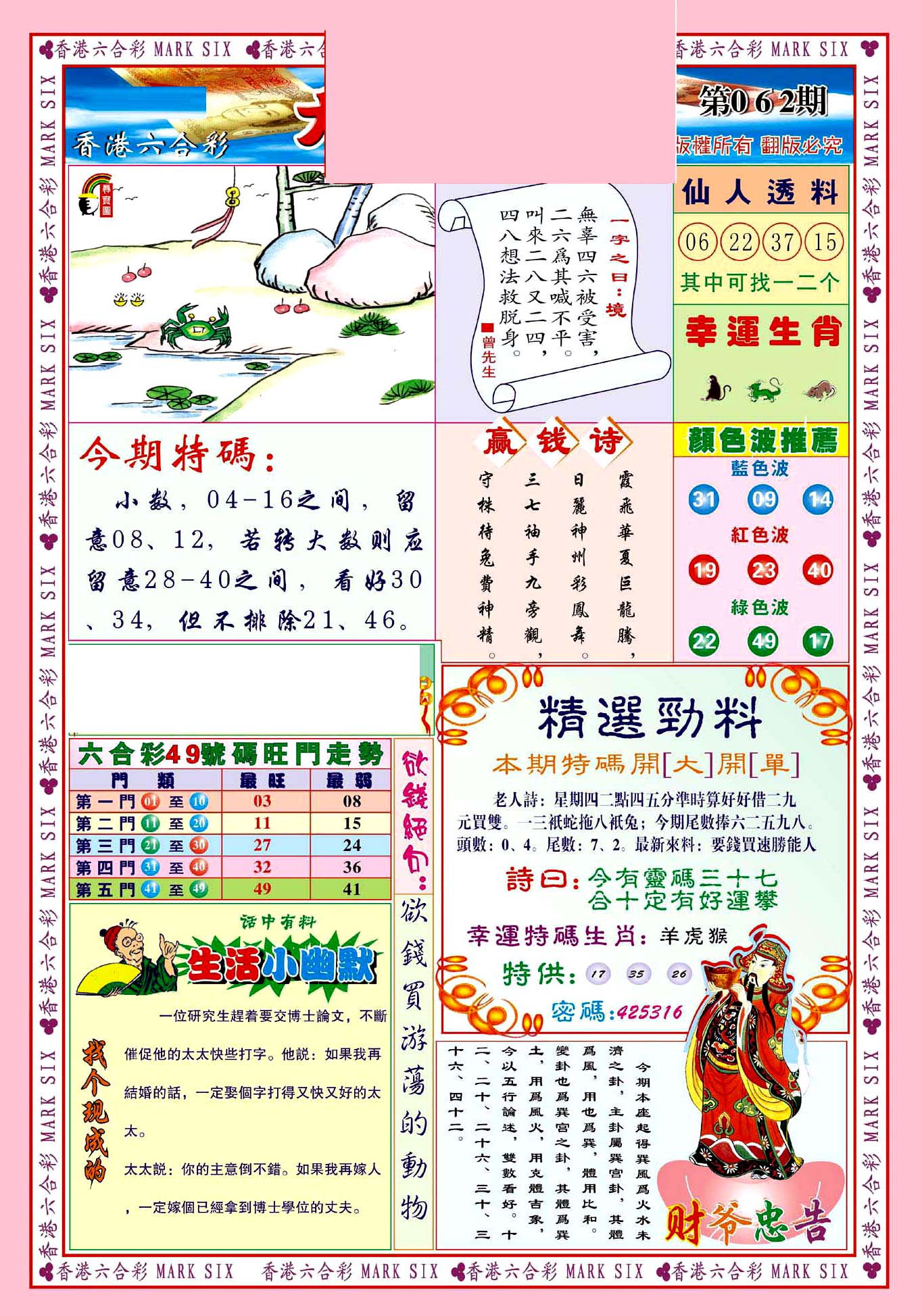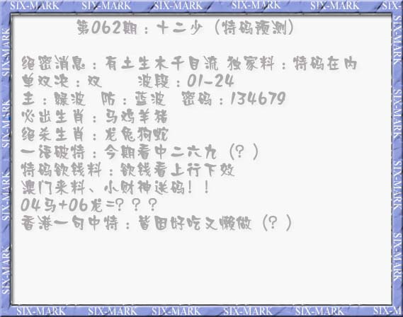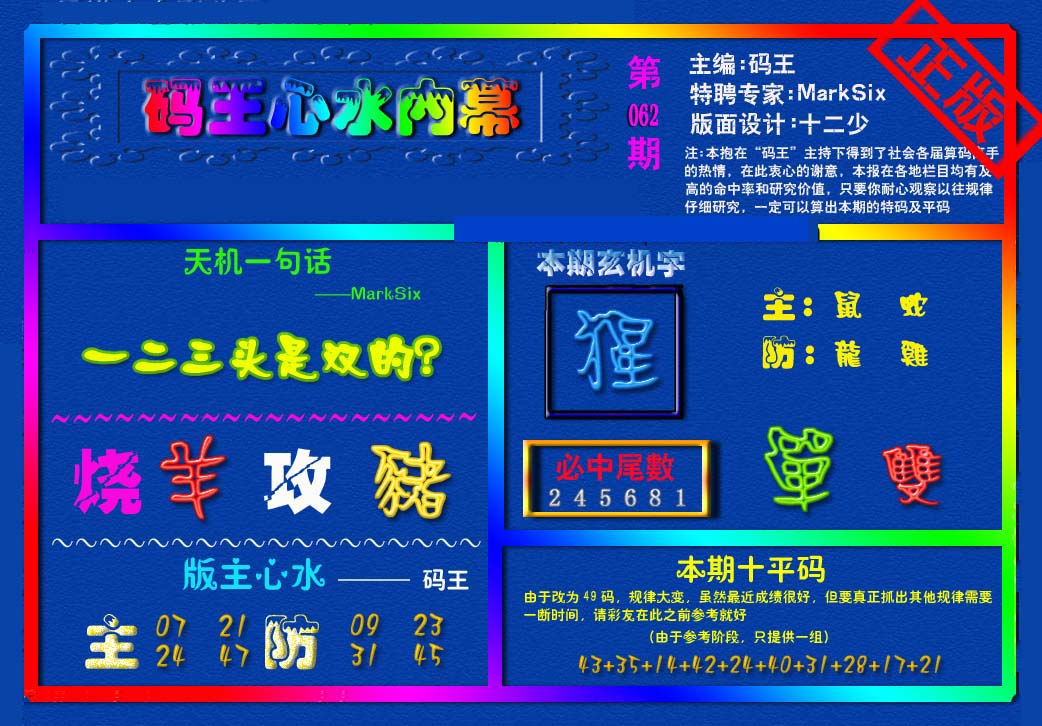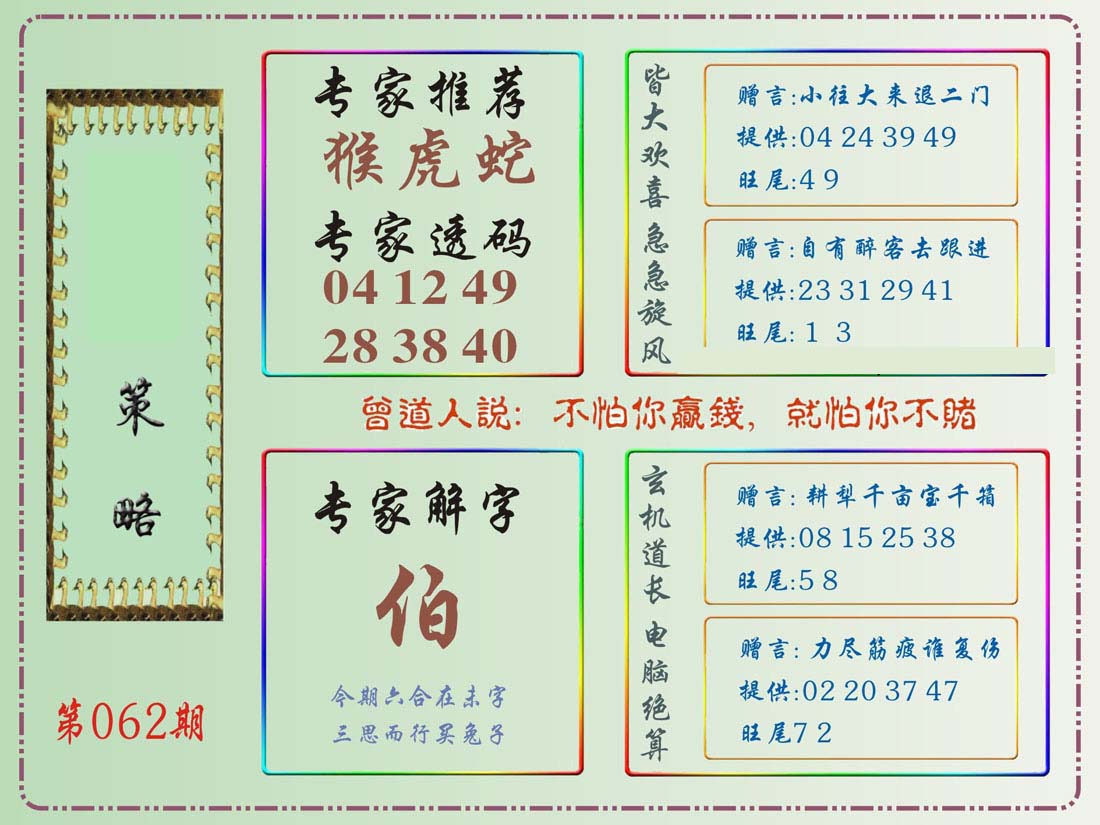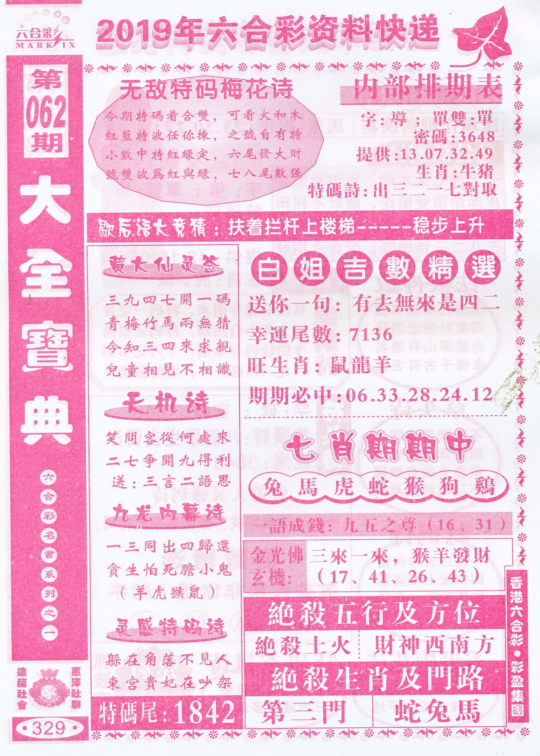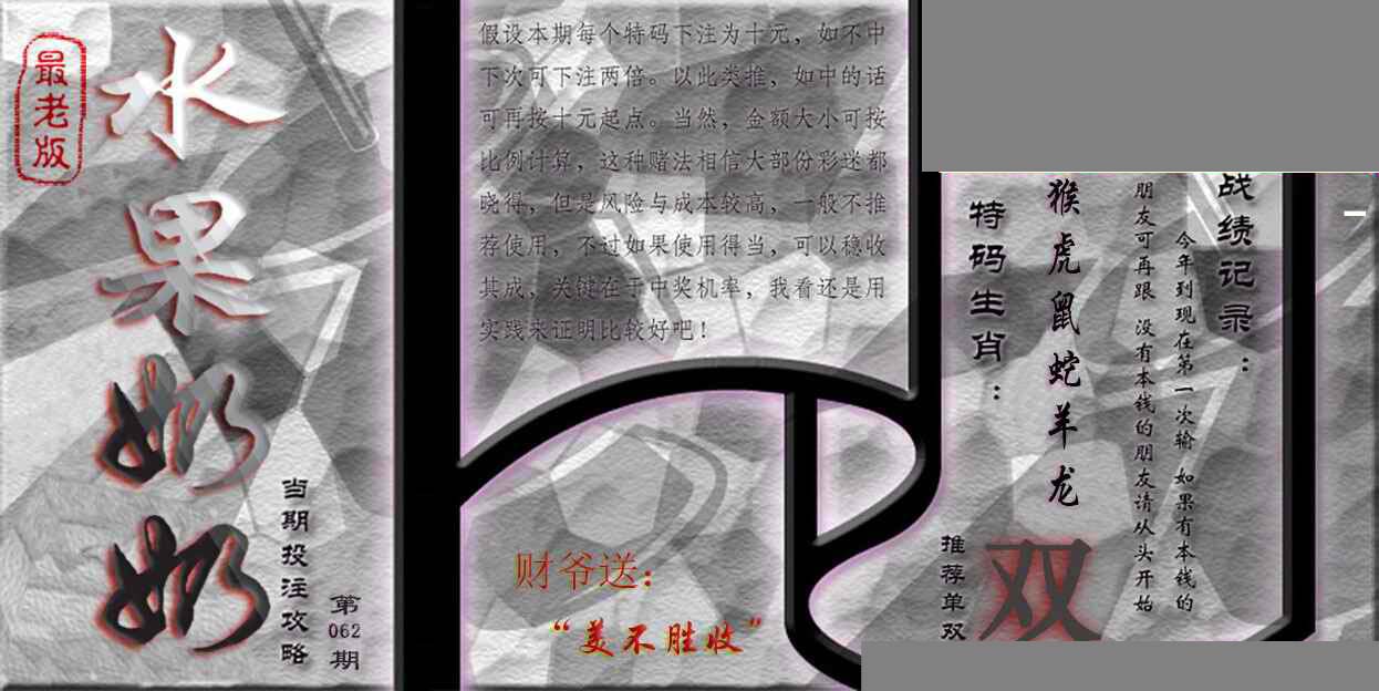 | 063 | 六合禅机A | 064 | 六合禅机B | 069 | 特 新 报A | 070 | 特 新 报B | |||||||||||||||||||||||||||||||||||||||||||||||||||