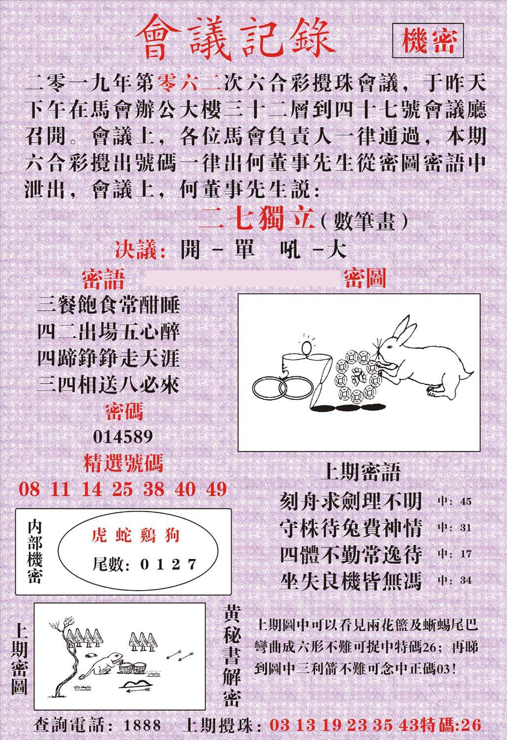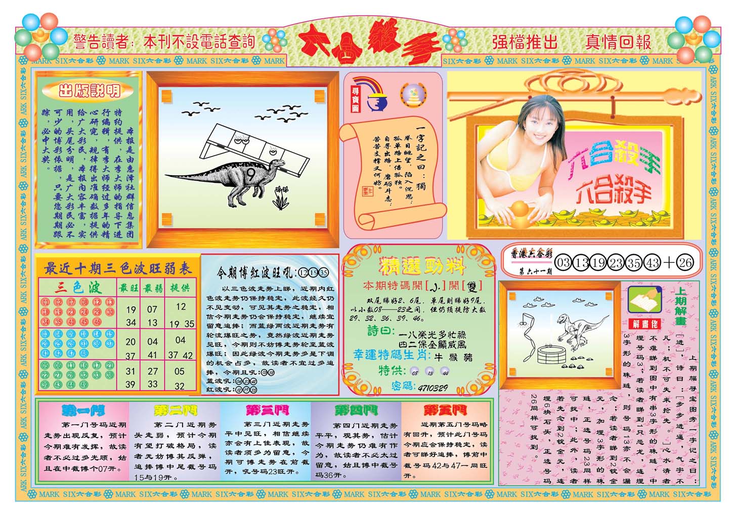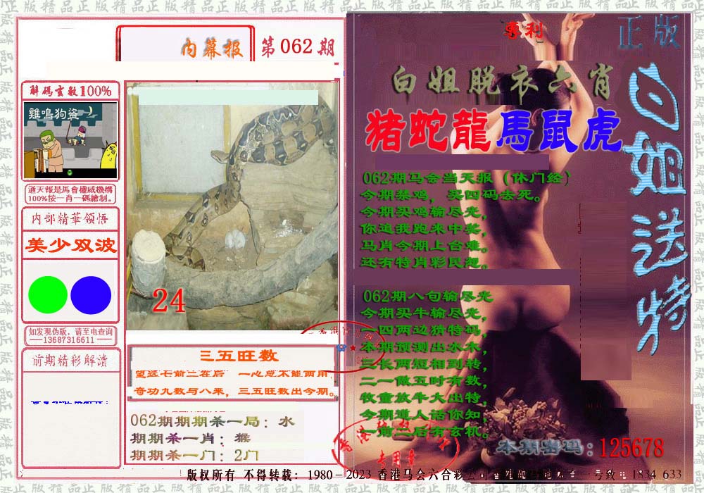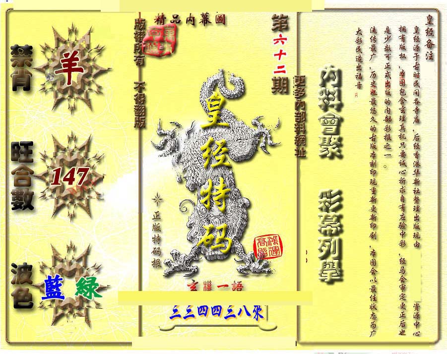 | 1336 | 统一玄机报 | 1337 | 正宗青龙五鬼报A | 1338 | 正宗青龙五鬼报B | 1339 | 美女六肖报 | |||||||||||||||||||||||||||||||||||||||||||||||||||