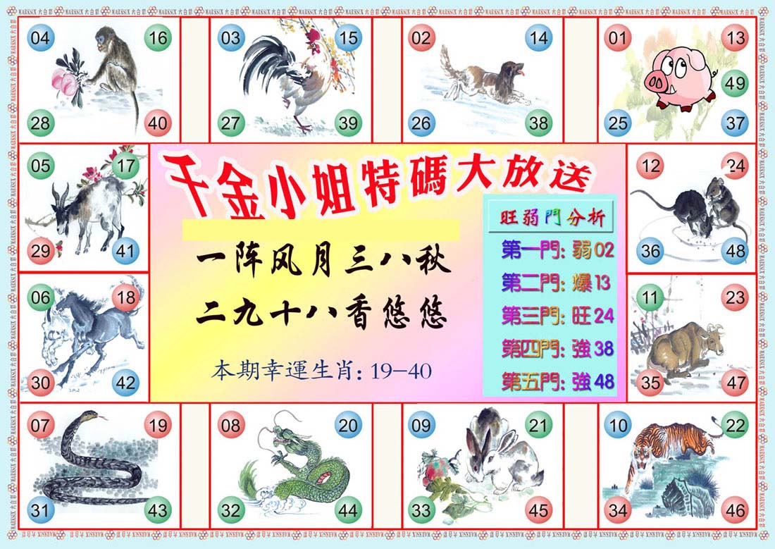 | 1601 | 马会双烧图 | 1602 | 马会禁尾图 | 1603 | 马会必中生肖 | 1604 | 内部禁肖禁尾 | |||||||||||||||||||||||||||||||||||||||||||||||||||