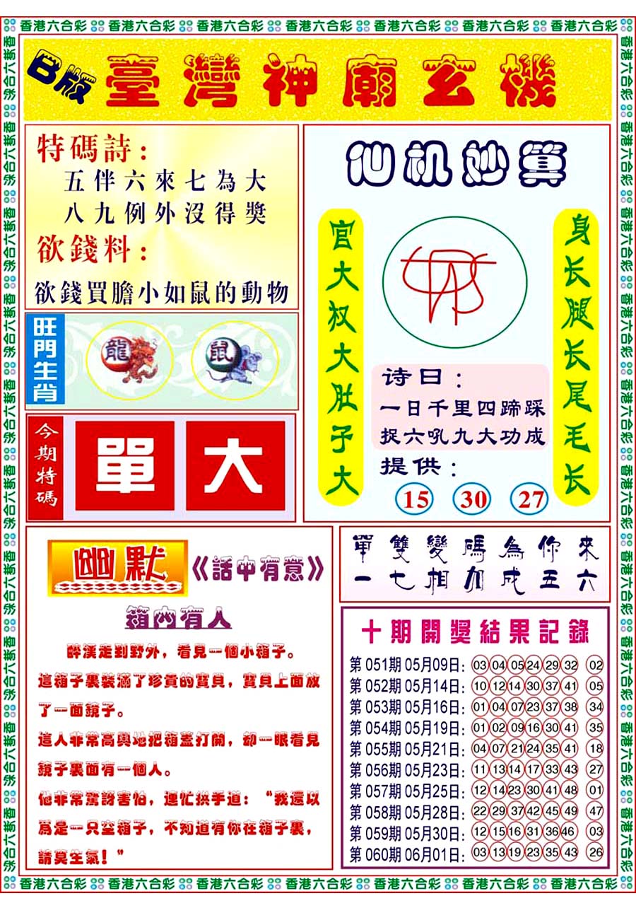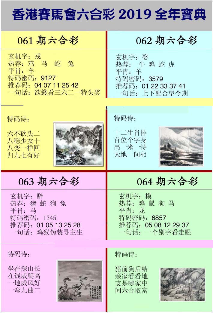 | 065 | 香港神算 | 066 | 澳门三合图 | 067 | 台湾神算通 | 068 | 六彩阴阳图 | |||||||||||||||||||||||||||||||||||||||||||||||||||