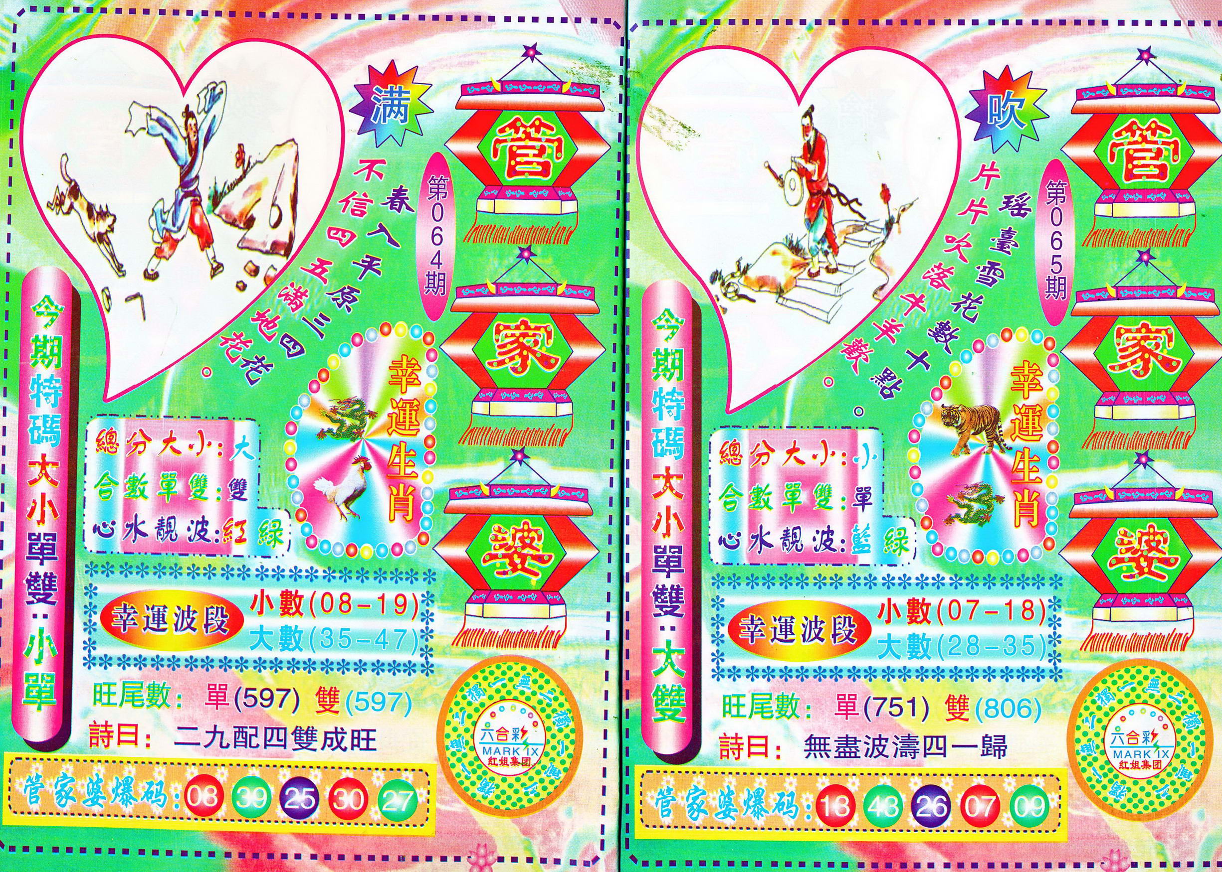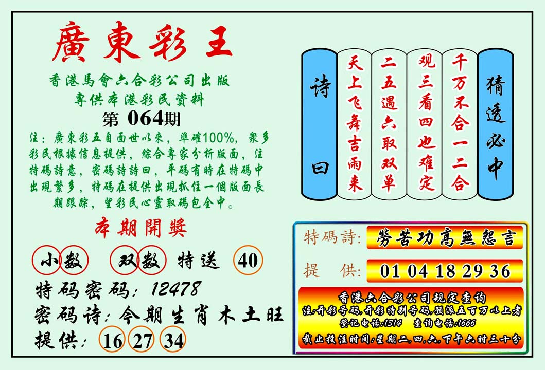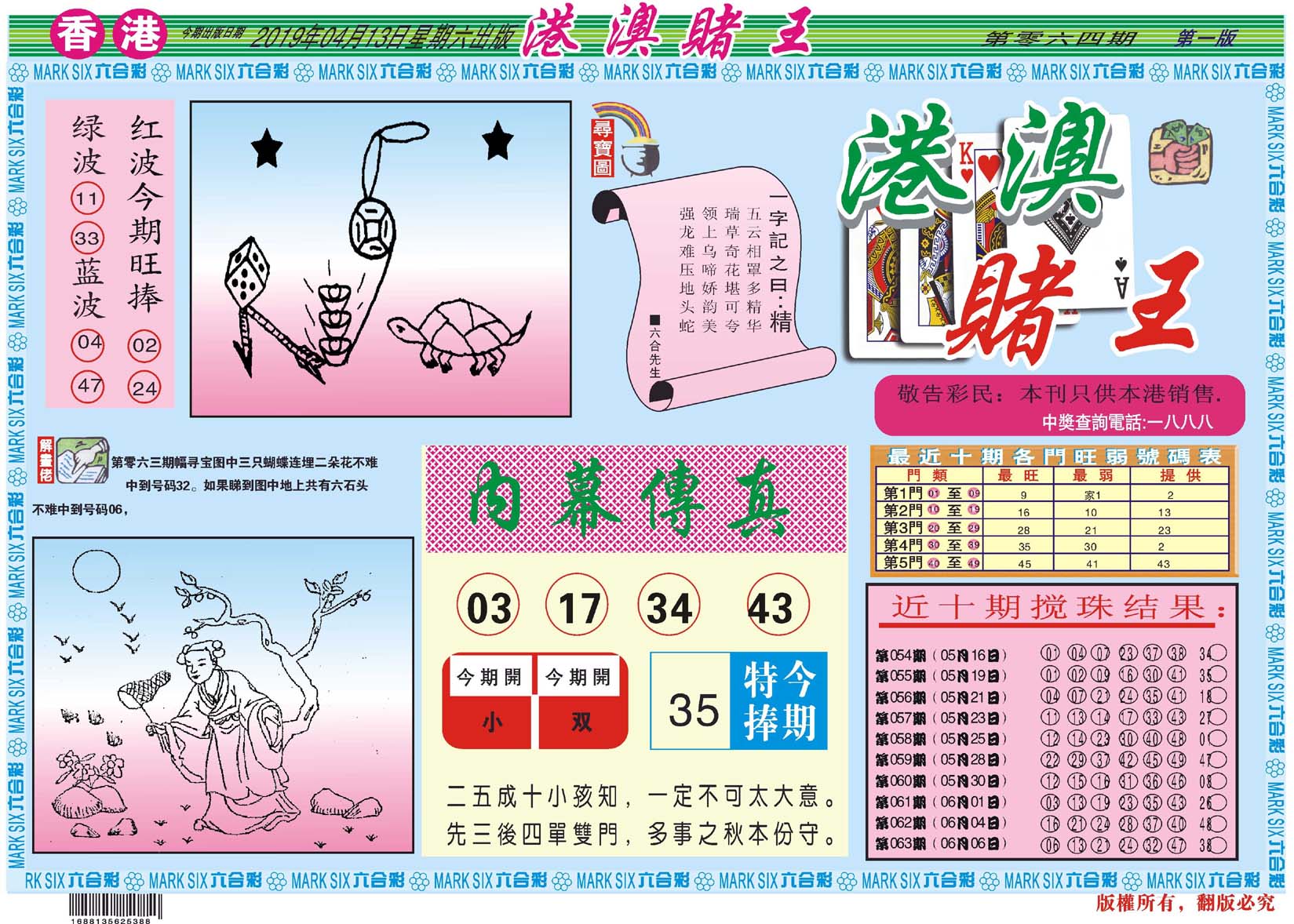 | 1765 | 黄大仙救世报 | 1766 | 香港马会专刊A | 1767 | 香港马会专刊B | 1768 | 赌王心经 |