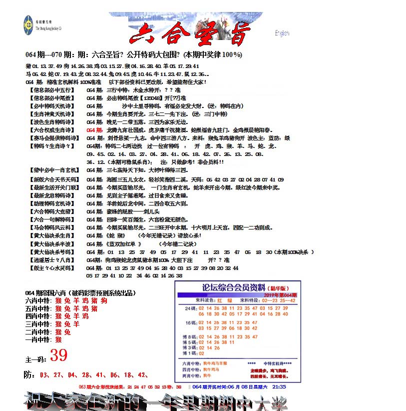| 039 | 六合内部玄机A | 040 | 六合内部玄机B | 041 | 内部精选神算通A | 042 | 内部精选神算通B | |||||||||||||||||||||||||||||||||||||||||||||||||||
