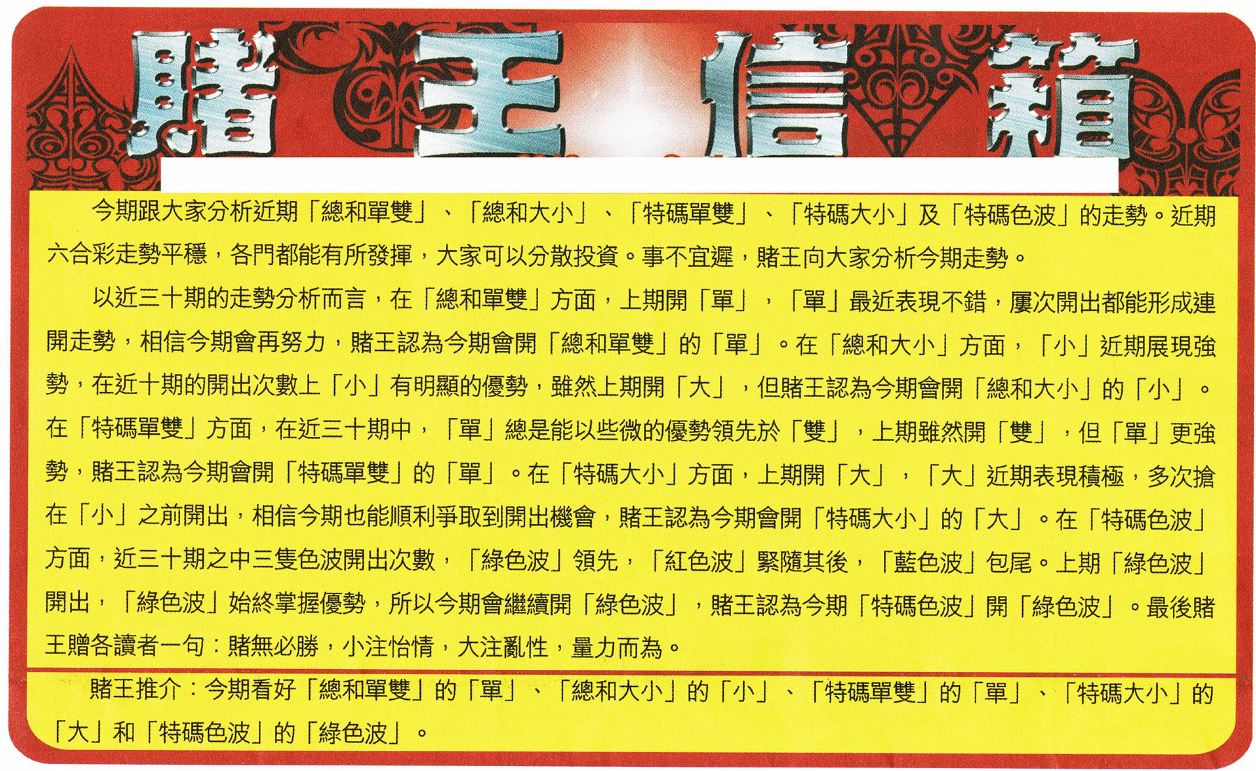 | 1356 | 赌神兔报(信封) | 1357 | 单双攻略(最老版) | 1358 | 藏宝图(最老版) | 1359 | 单双攻略(正版) | |||||||||||||||||||||||||||||||||||||||||||||||||||