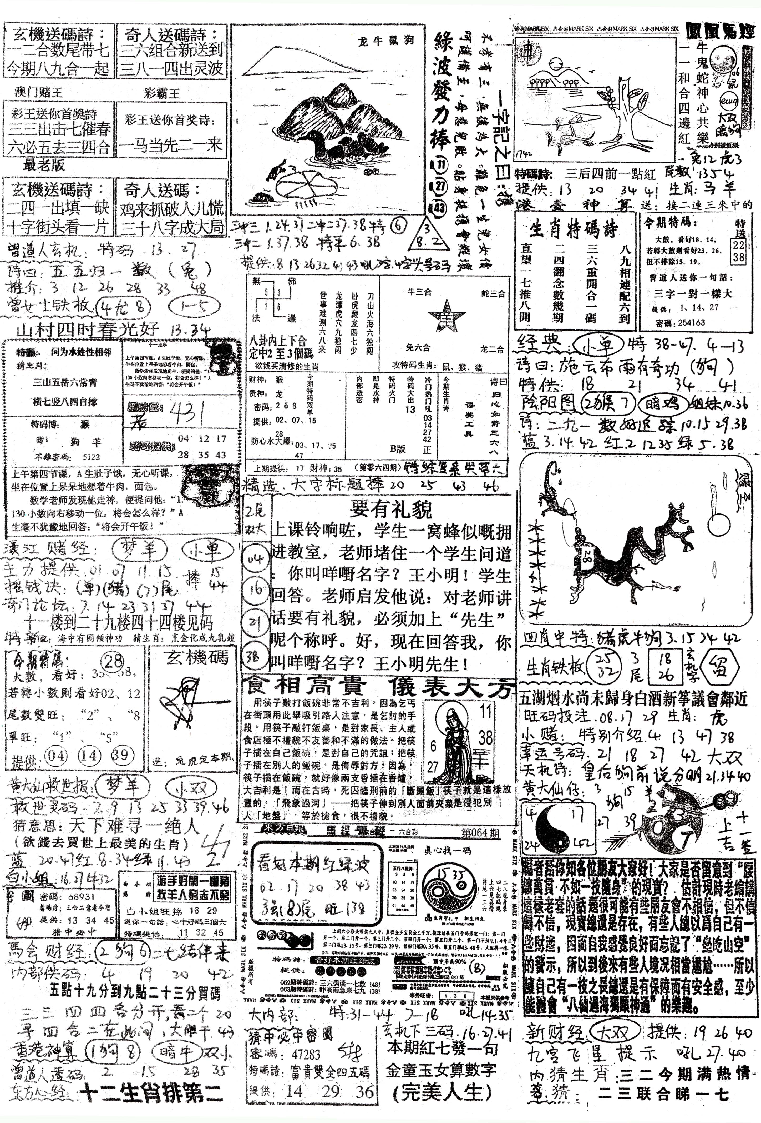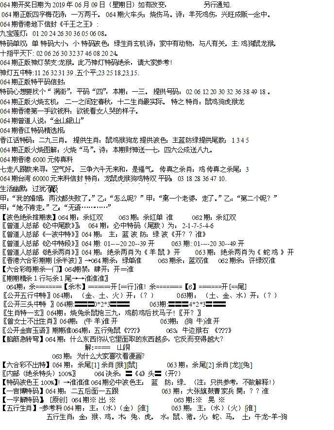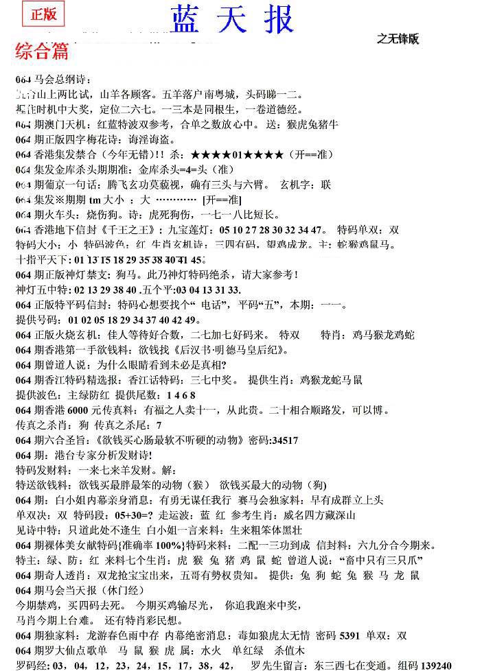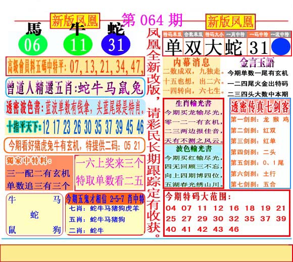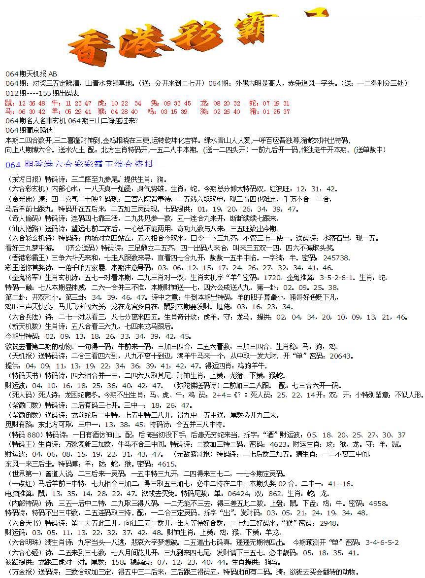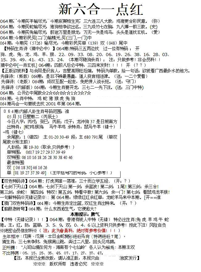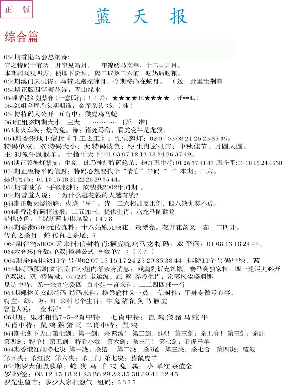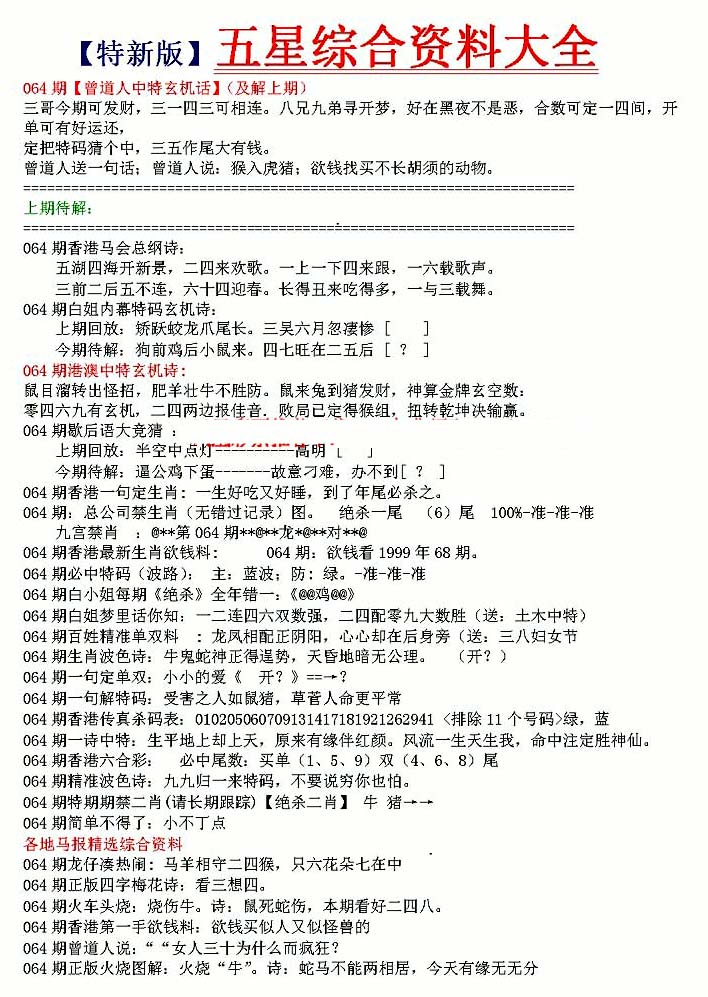 | 063 | 六合禅机A | 064 | 六合禅机B | 069 | 特 新 报A | 070 | 特 新 报B | |||||||||||||||||||||||||||||||||||||||||||||||||||