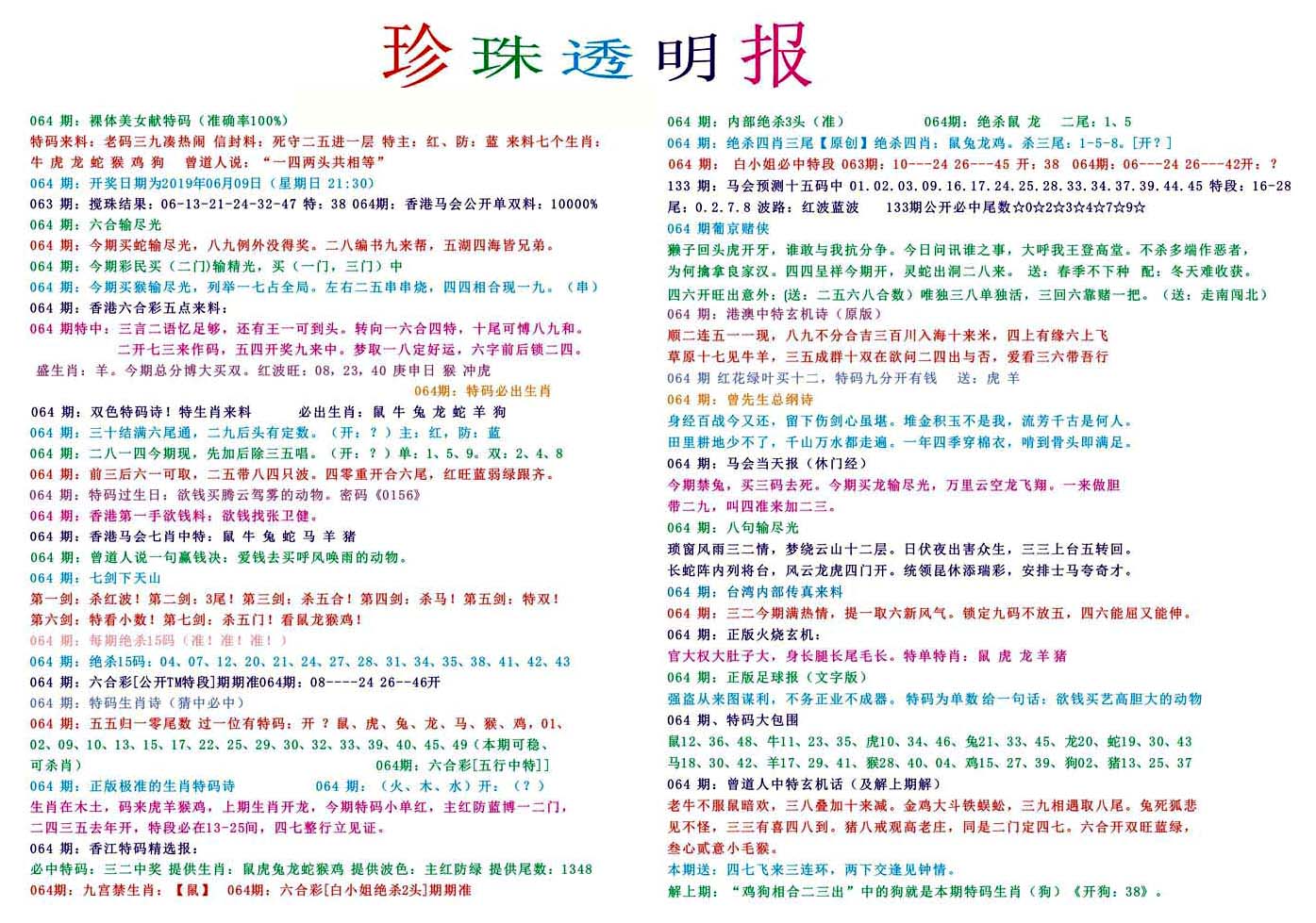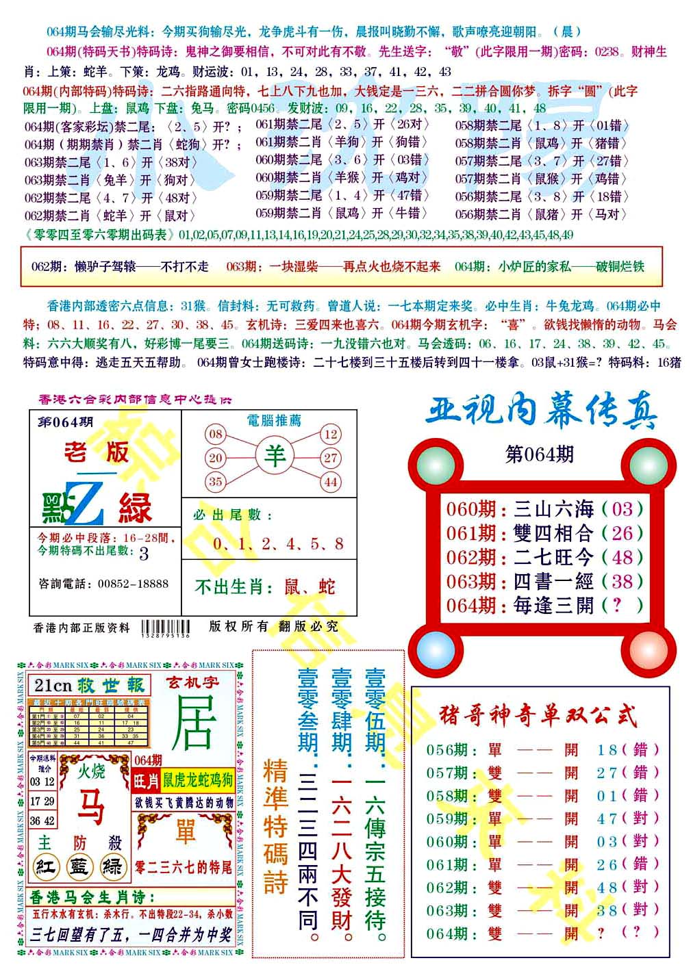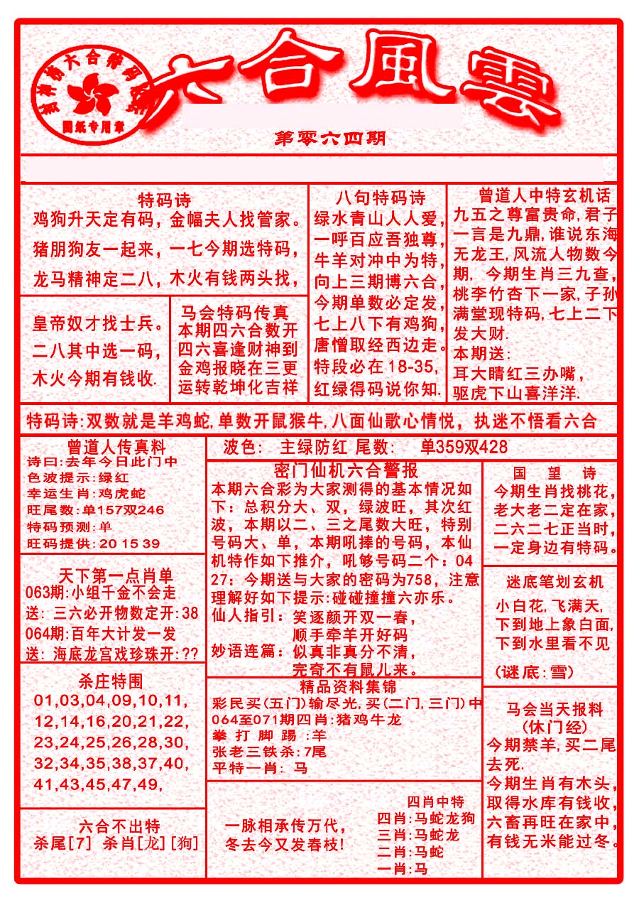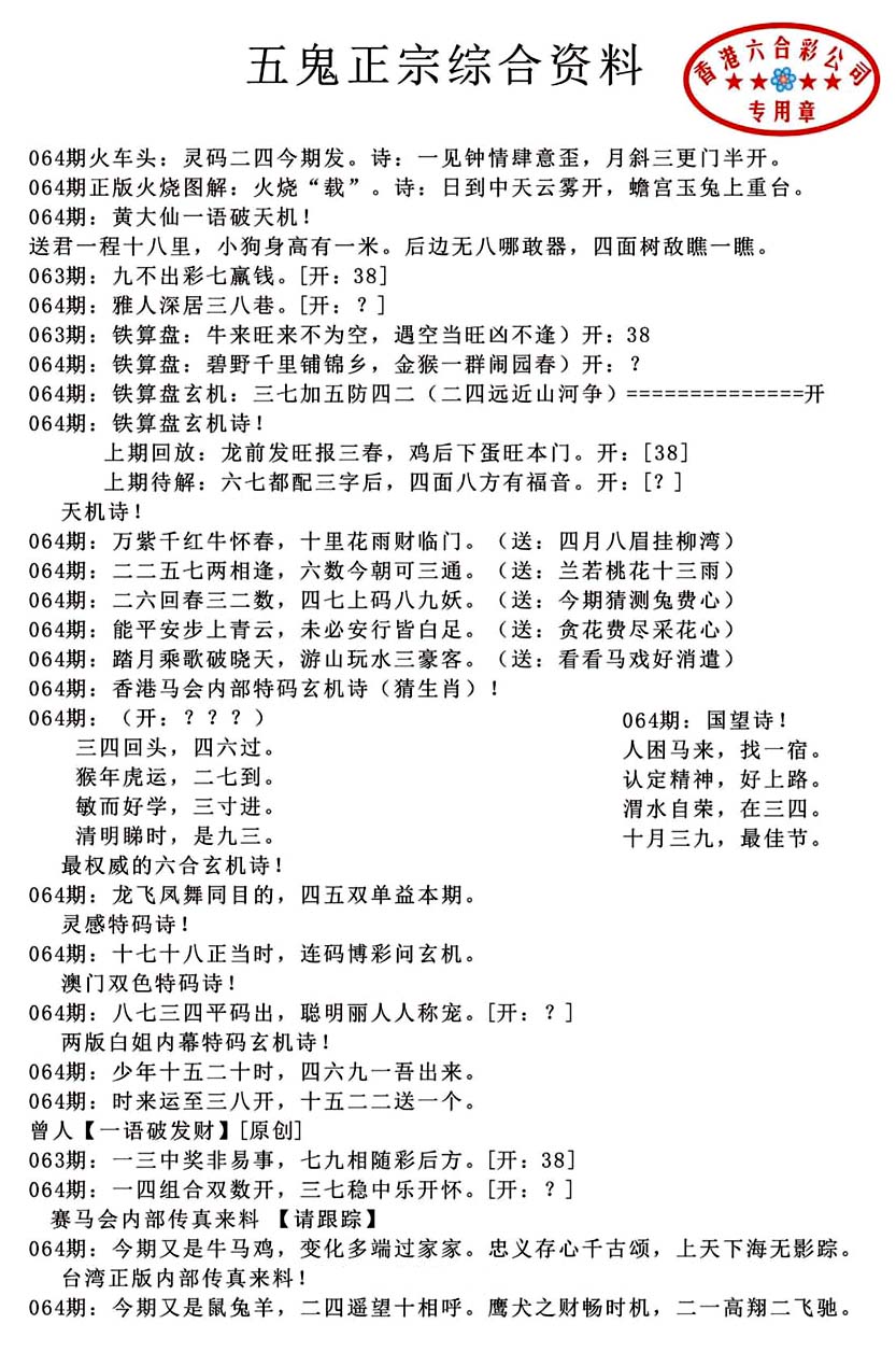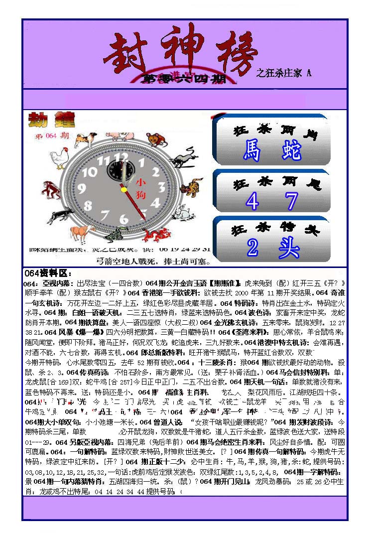 | 063 | 六合禅机A | 064 | 六合禅机B | 069 | 特 新 报A | 070 | 特 新 报B | |||||||||||||||||||||||||||||||||||||||||||||||||||