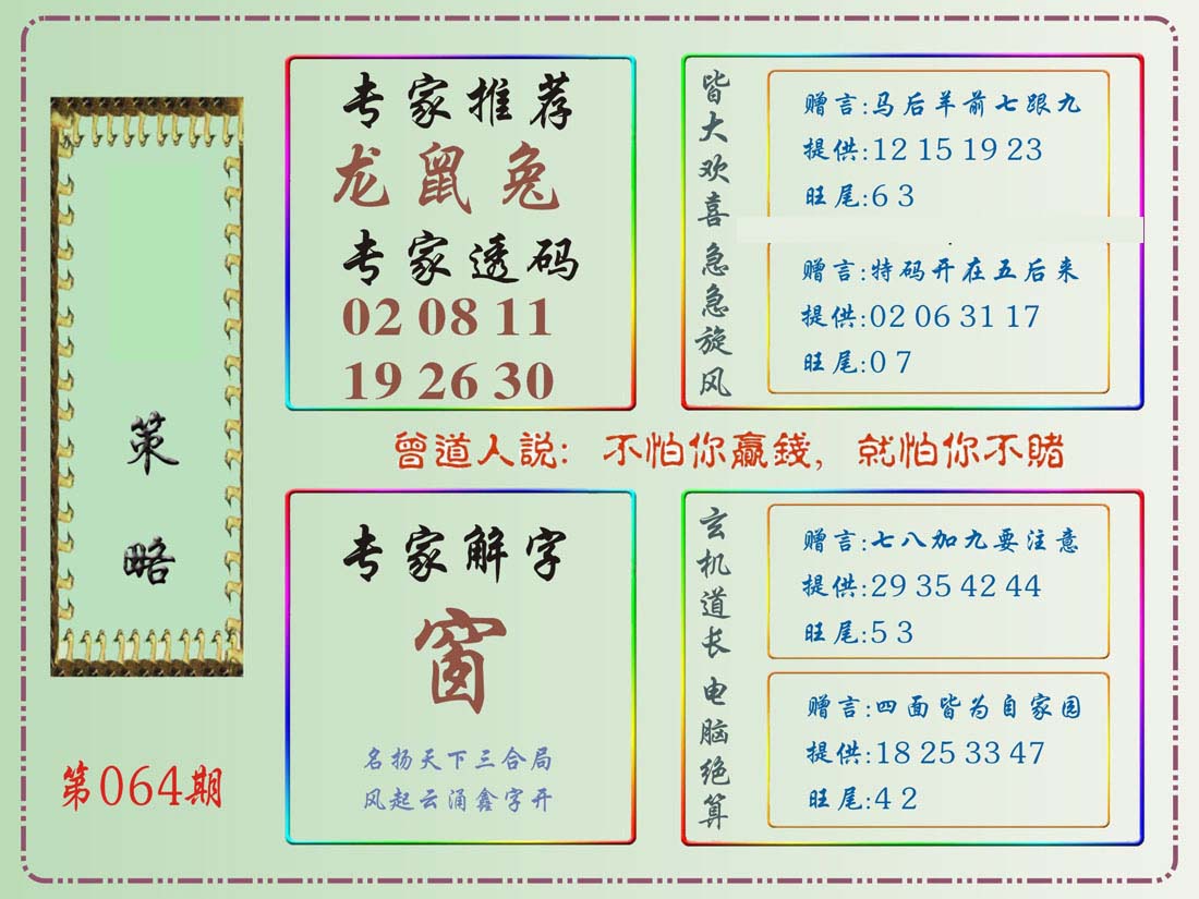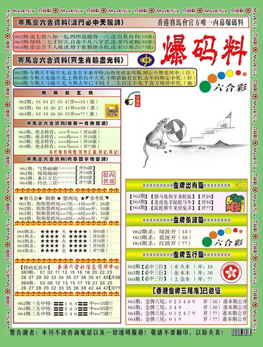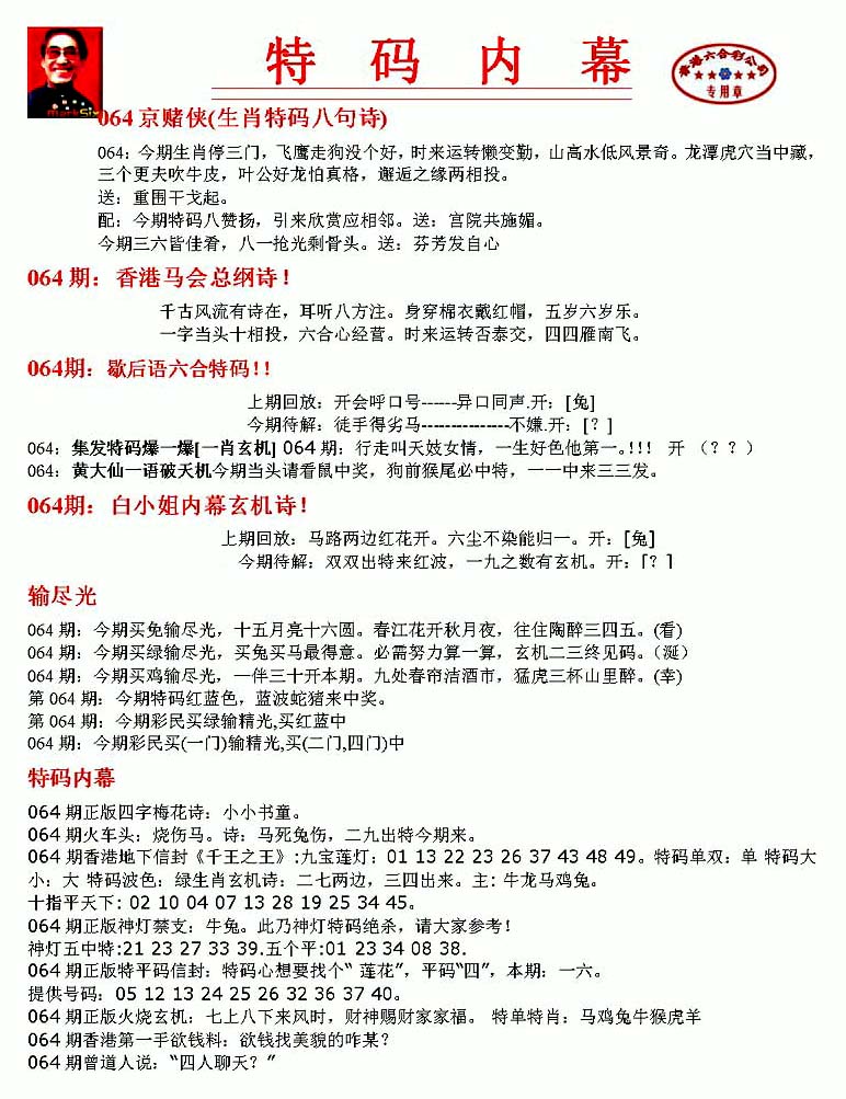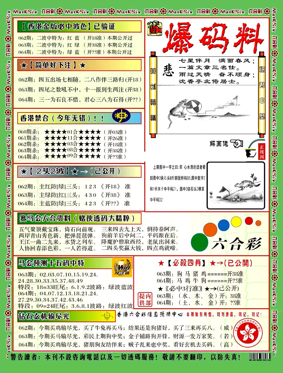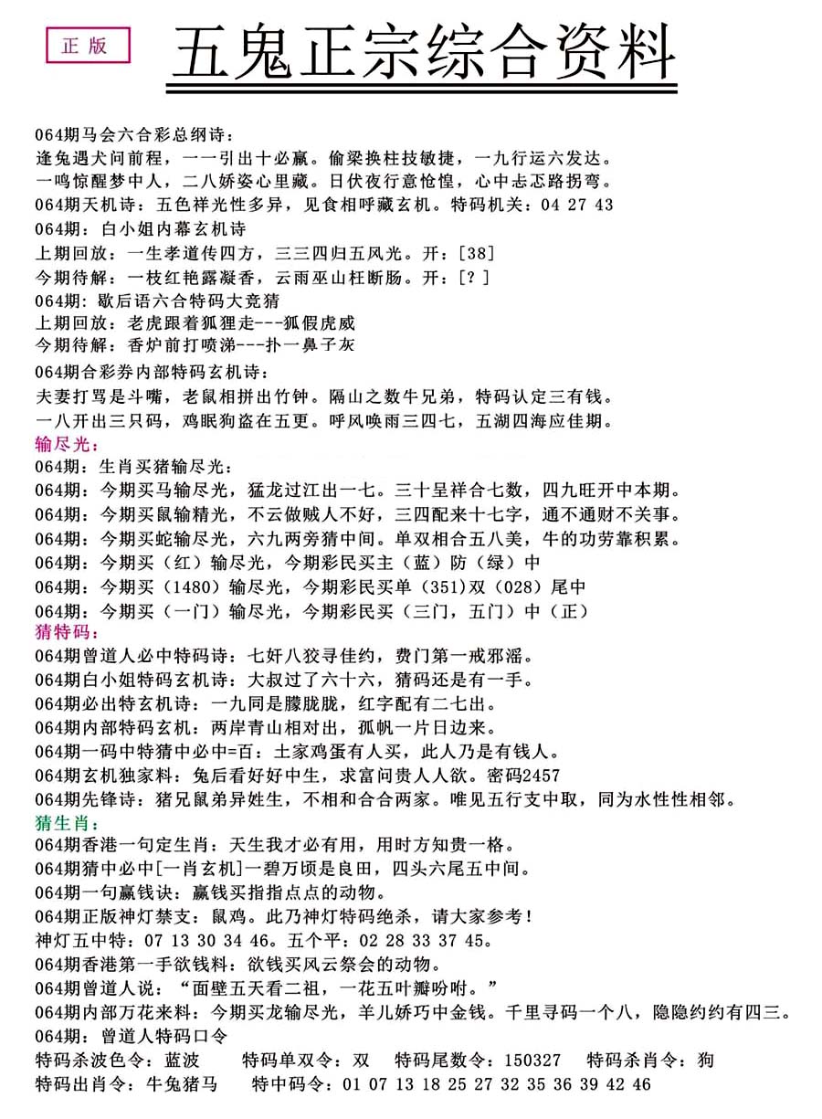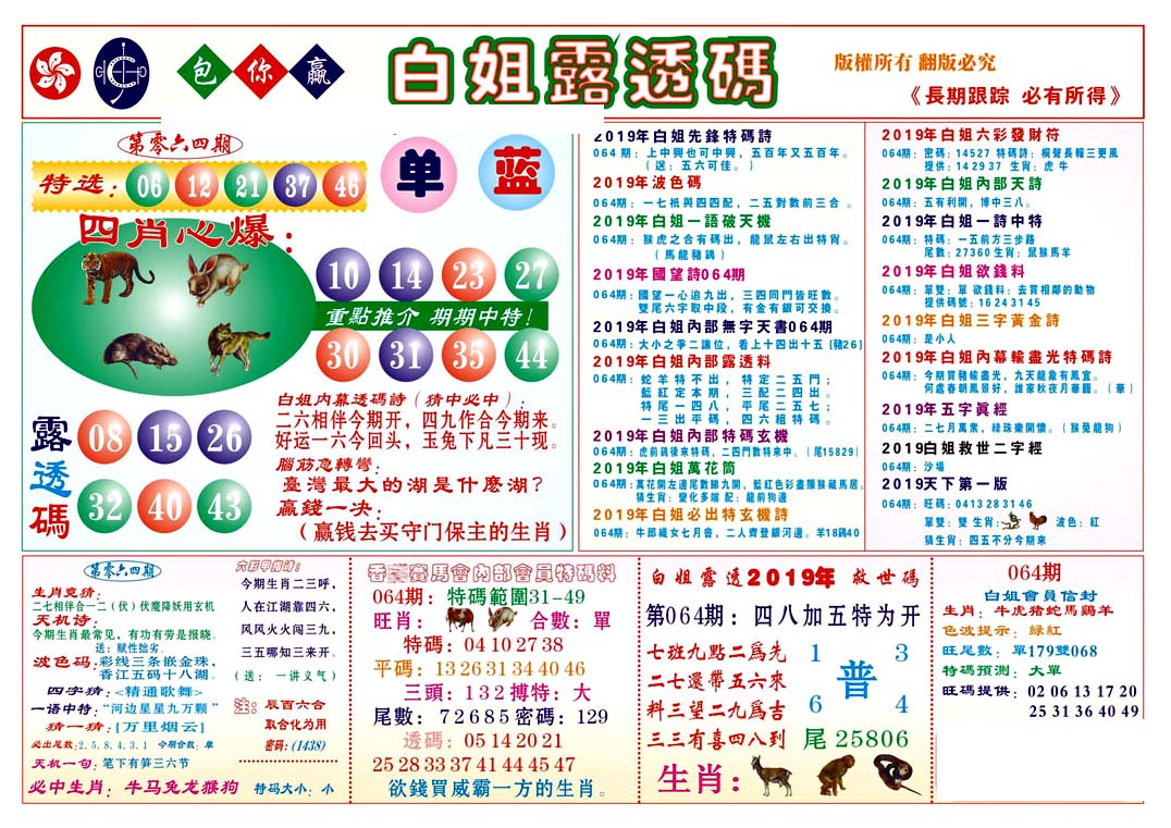 | 063 | 六合禅机A | 064 | 六合禅机B | 069 | 特 新 报A | 070 | 特 新 报B | |||||||||||||||||||||||||||||||||||||||||||||||||||