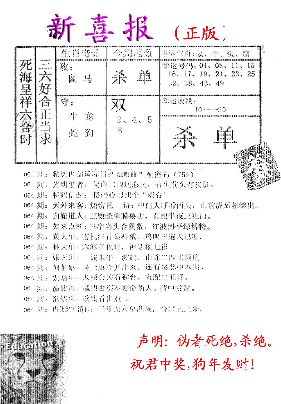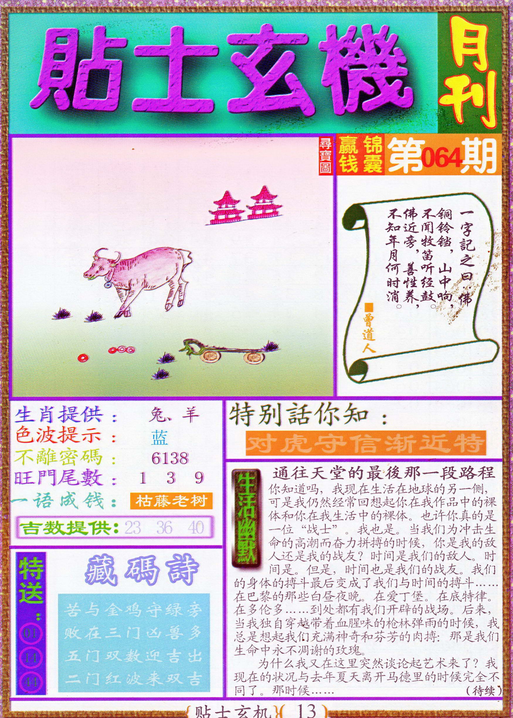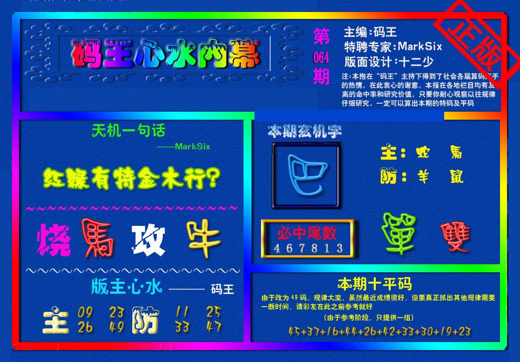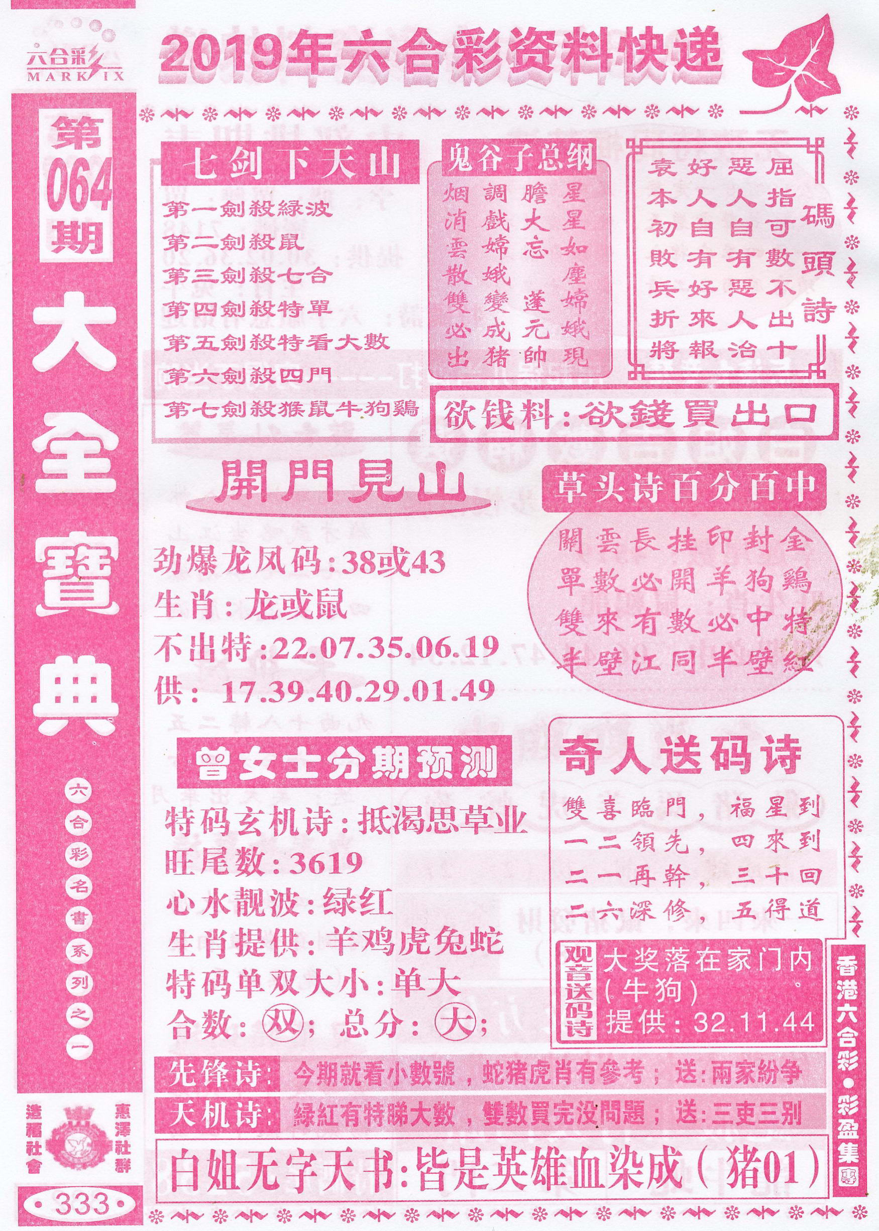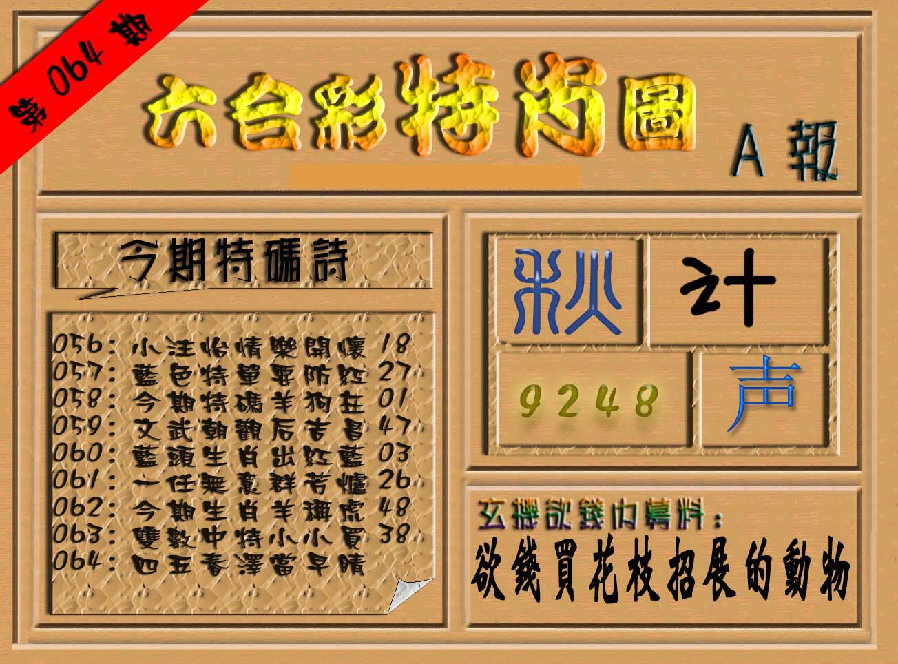 | 063 | 六合禅机A | 064 | 六合禅机B | 069 | 特 新 报A | 070 | 特 新 报B | |||||||||||||||||||||||||||||||||||||||||||||||||||