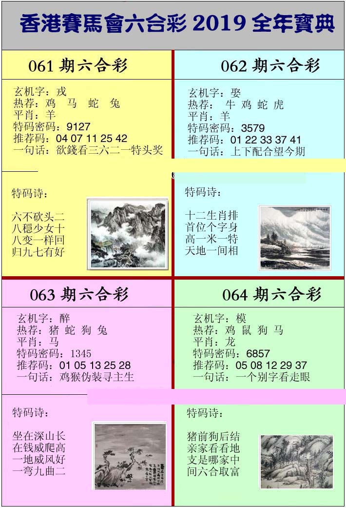 | 065 | 香港神算 | 066 | 澳门三合图 | 067 | 台湾神算通 | 068 | 六彩阴阳图 | |||||||||||||||||||||||||||||||||||||||||||||||||||