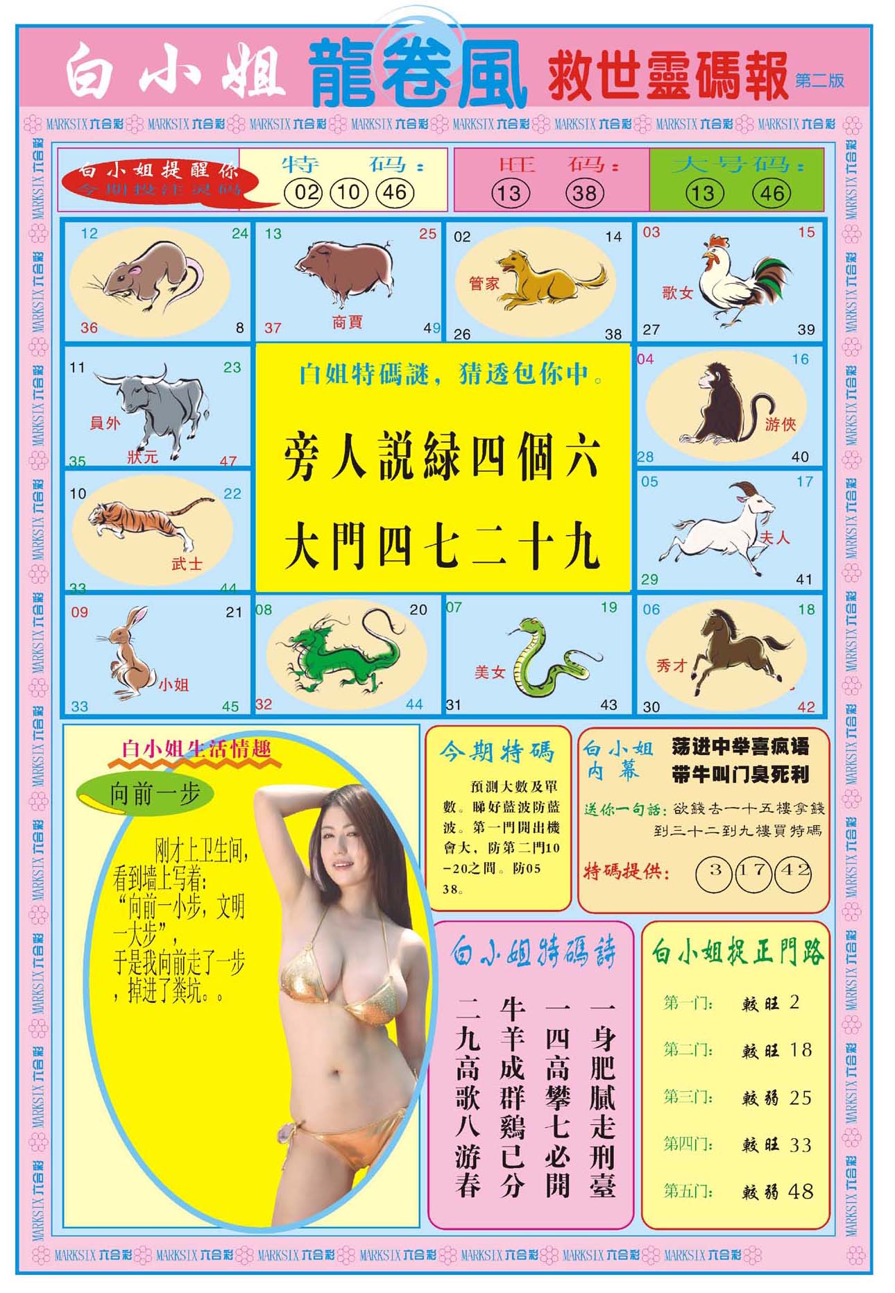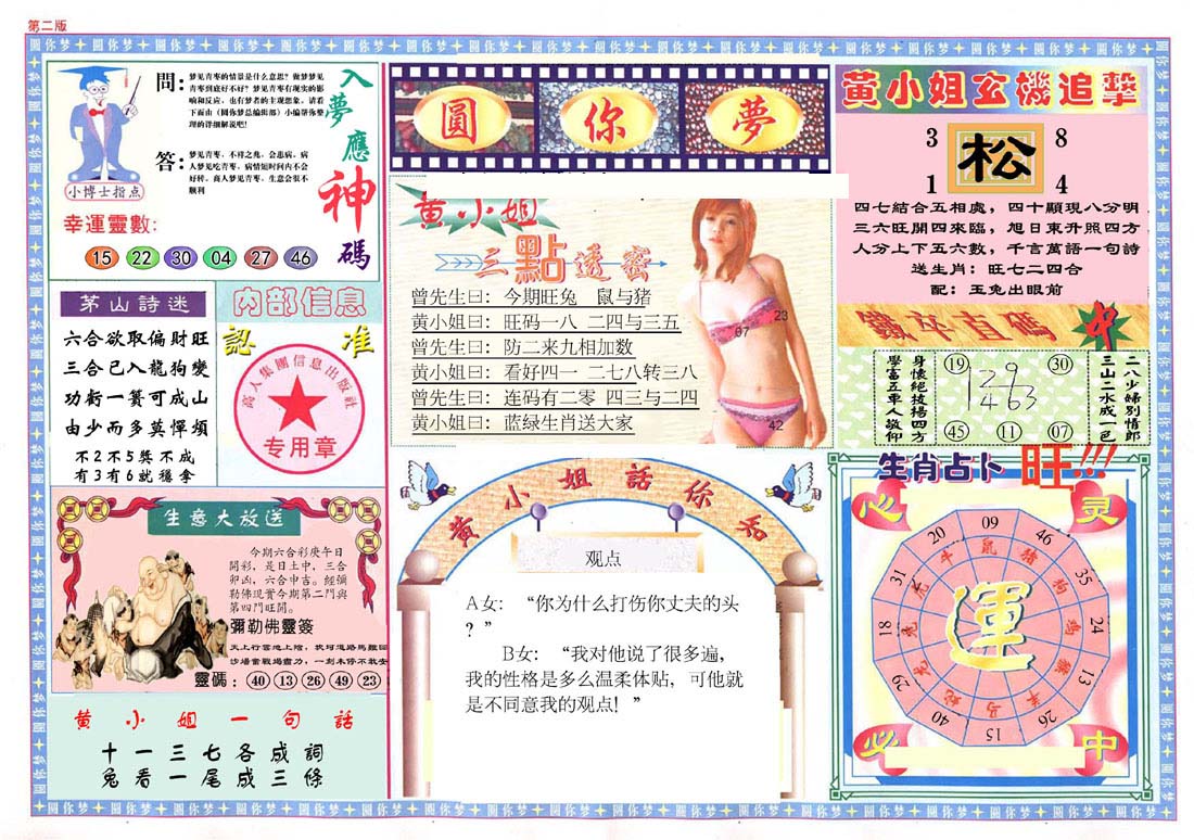 | 1336 | 统一玄机报 | 1337 | 正宗青龙五鬼报A | 1338 | 正宗青龙五鬼报B | 1339 | 美女六肖报 | |||||||||||||||||||||||||||||||||||||||||||||||||||