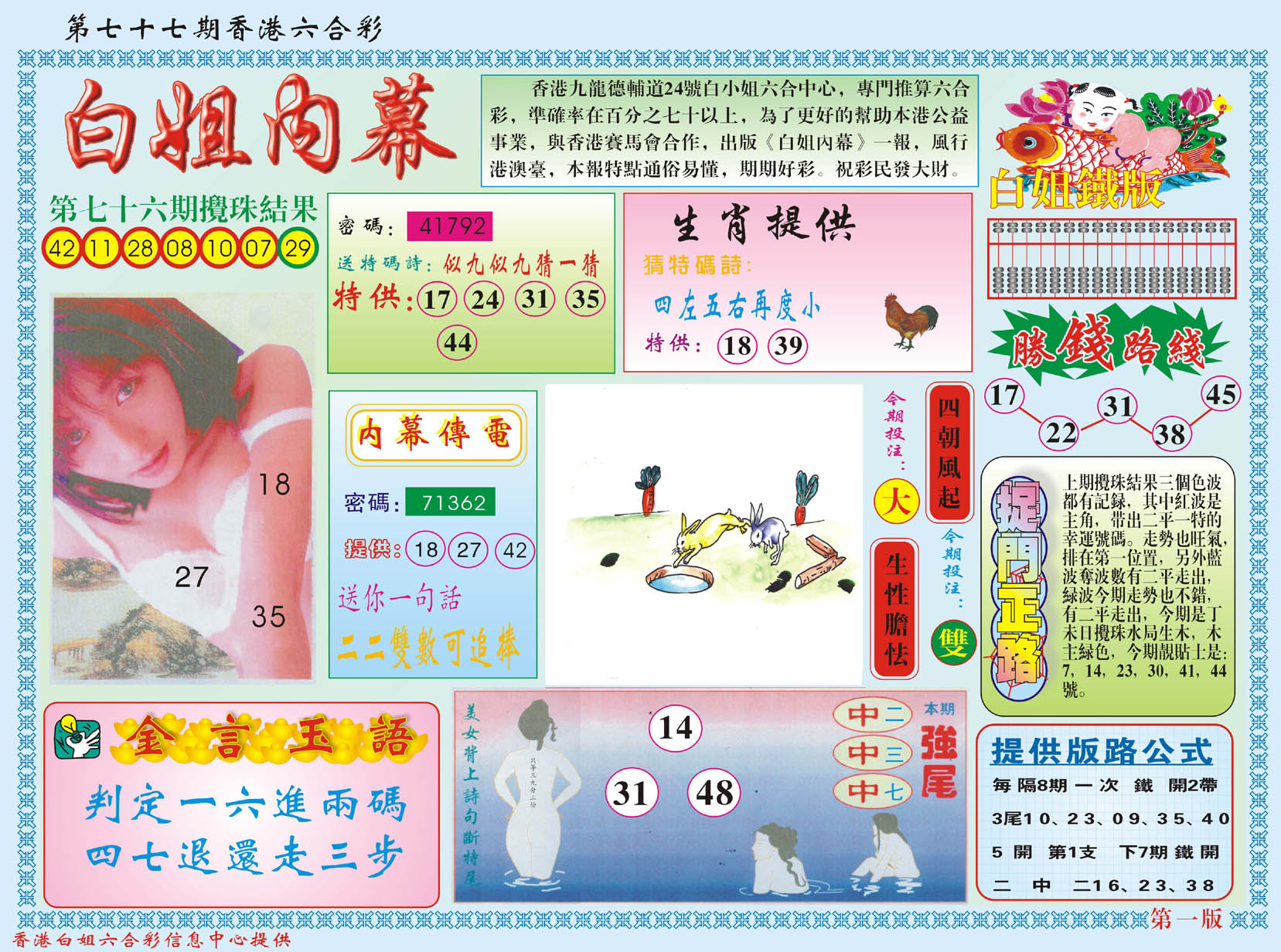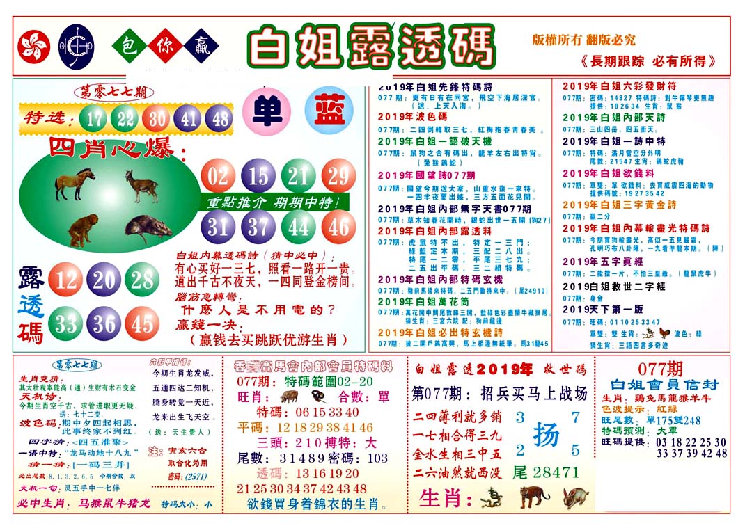 | 441 | 六合解霸A | 442 | 六合解霸B | 445 | 白姐特新刊A | 446 | 白姐特新刊B | |||||||||||||||||||||||||||||||||||||||||||||||||||