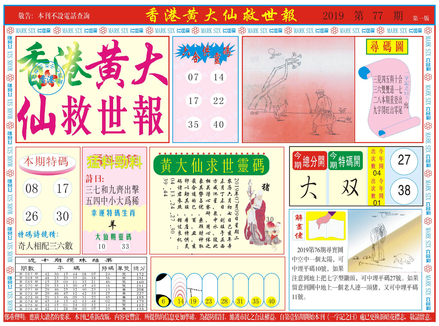 | 019 | 黄大仙救世报A | 020 | 黄大仙救世报B | 021 | 香港黄大仙报A | 022 | 香港黄大仙报B | |||||||||||||||||||||||||||||||||||||||||||||||||||