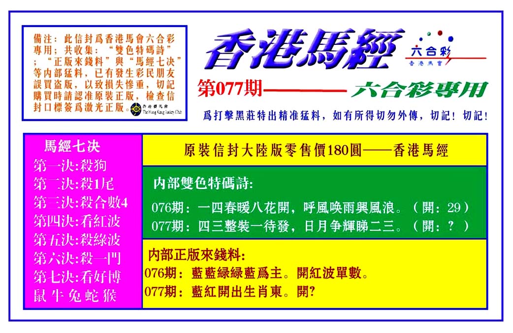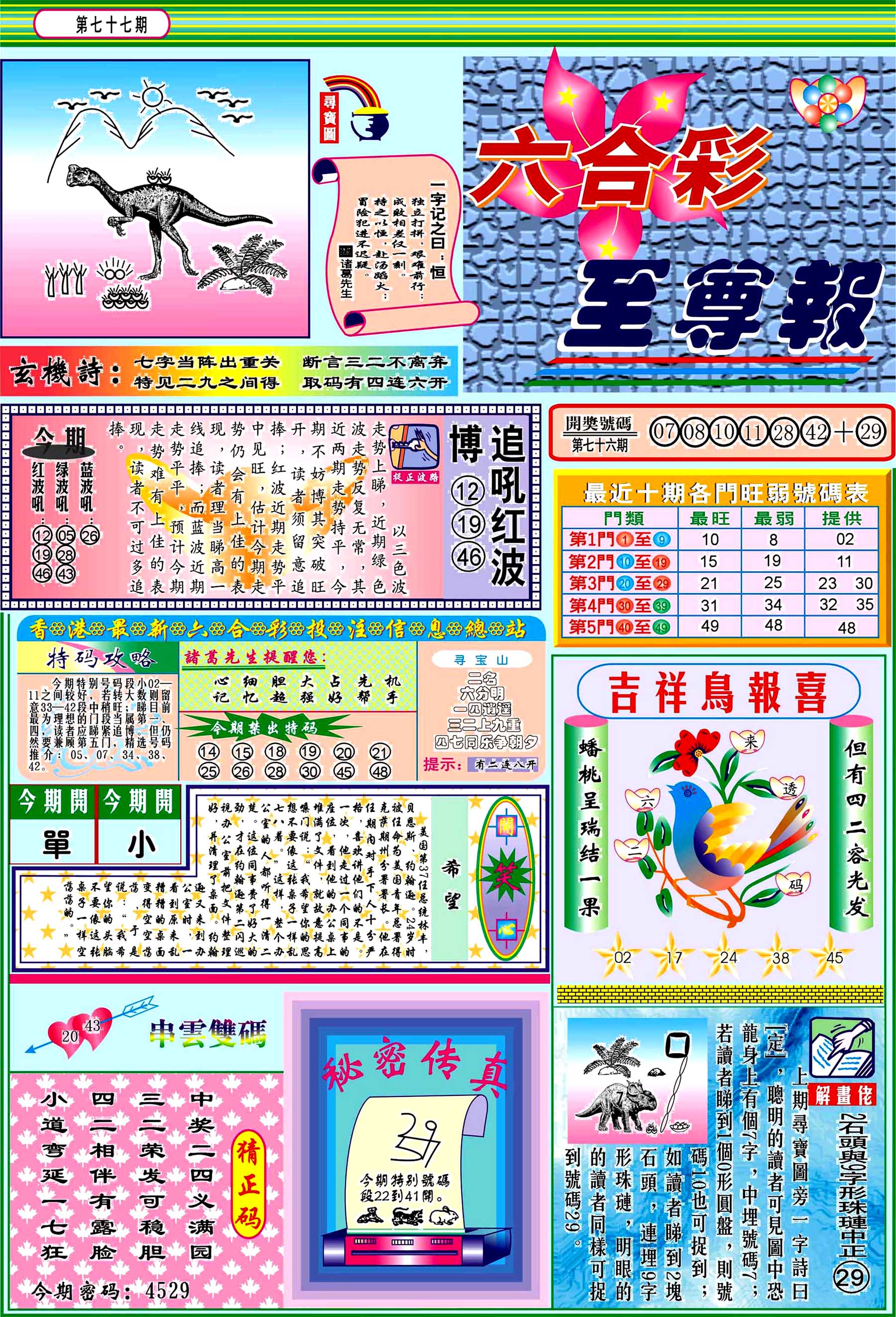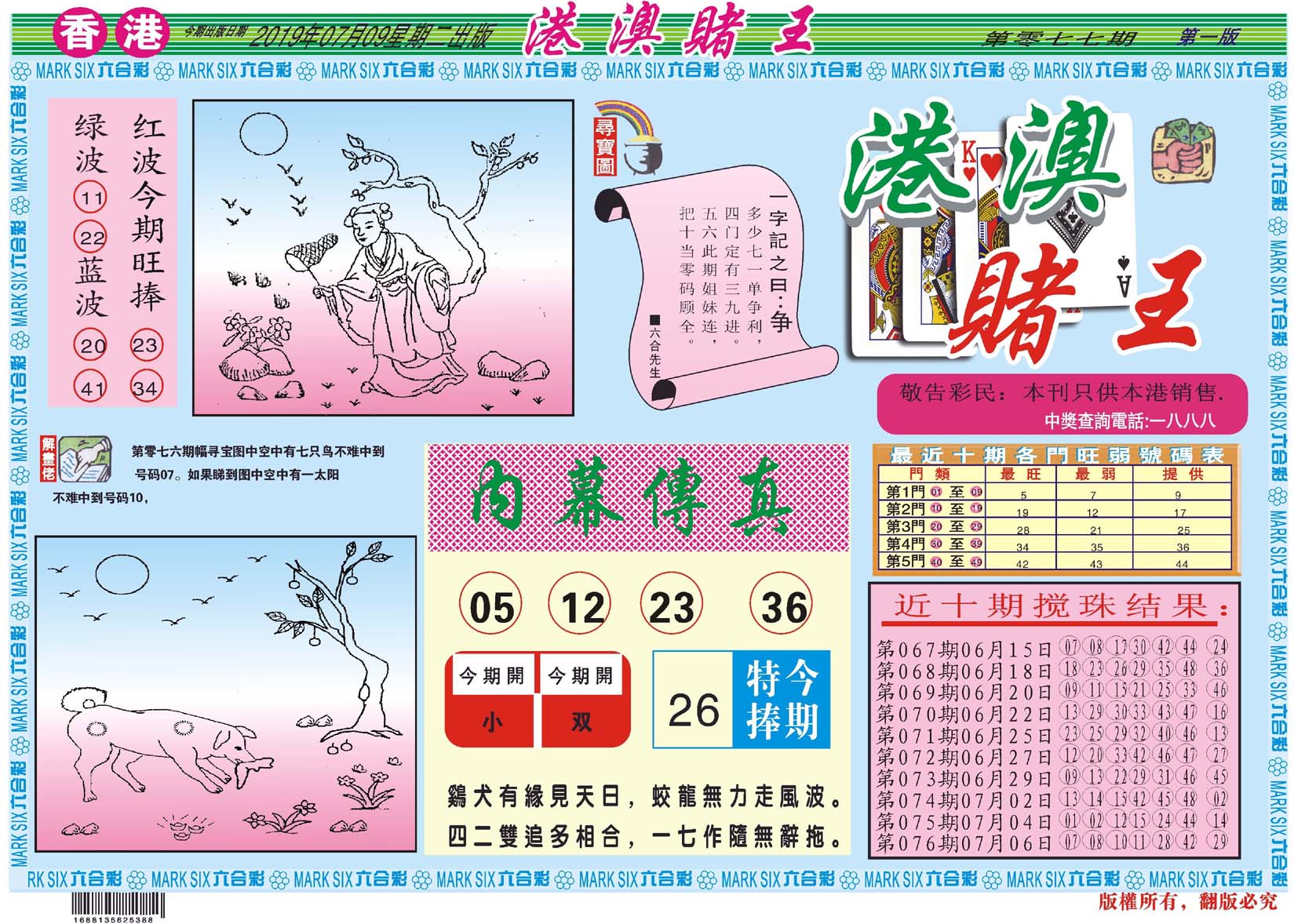 | 1765 | 黄大仙救世报 | 1766 | 香港马会专刊A | 1767 | 香港马会专刊B | 1768 | 赌王心经 |