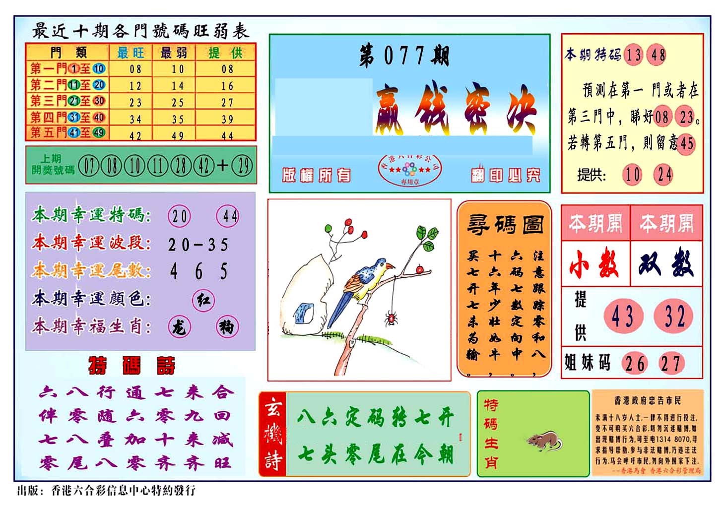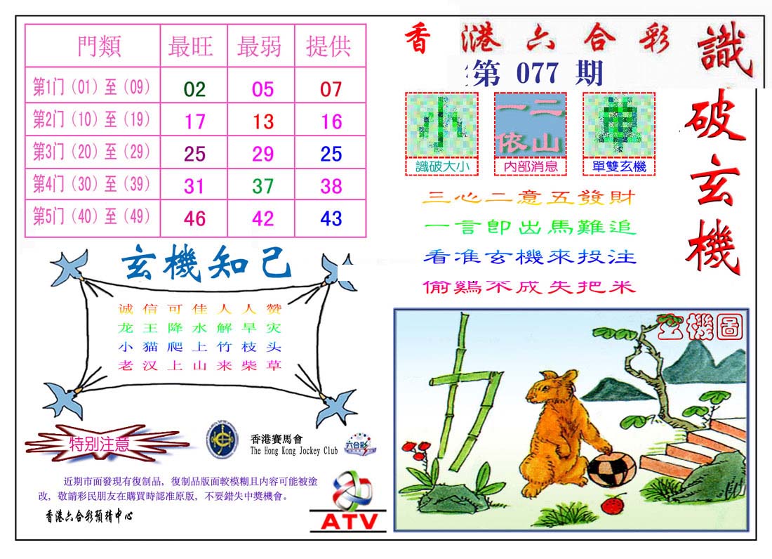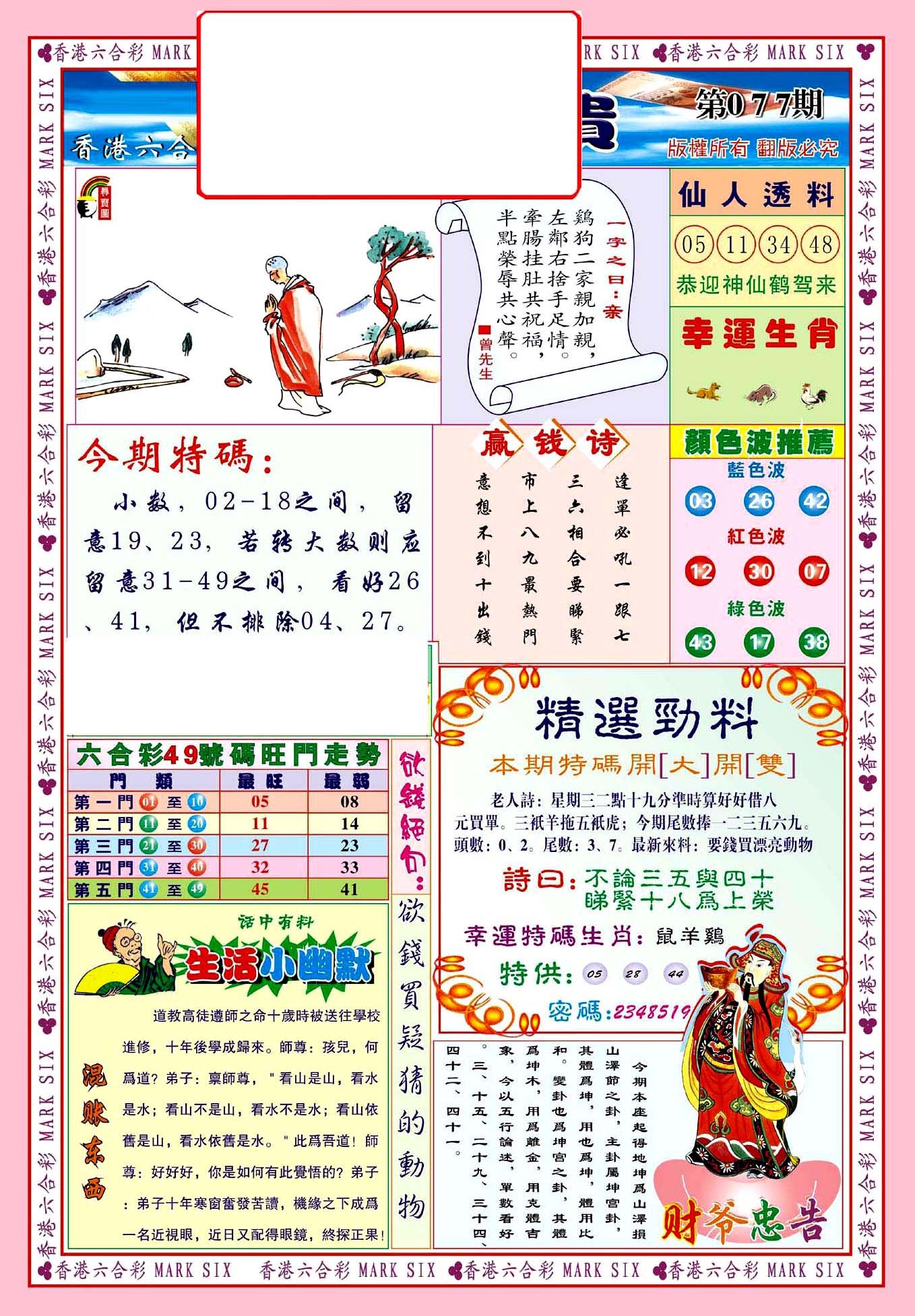 | 1765 | 黄大仙救世报 | 1766 | 香港马会专刊A | 1767 | 香港马会专刊B | 1768 | 赌王心经 |