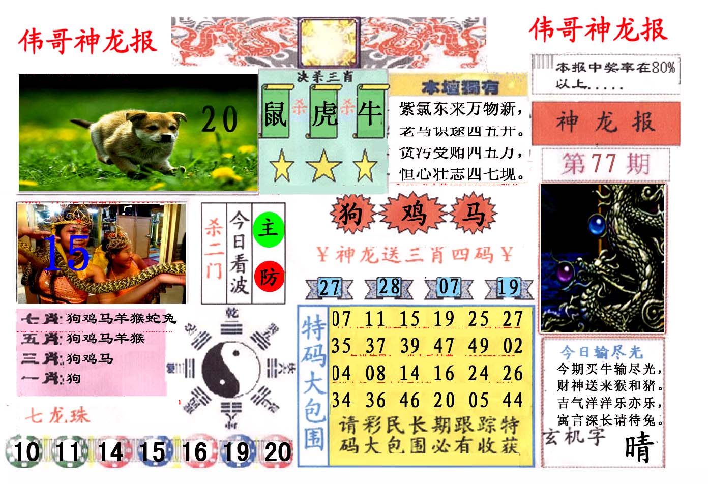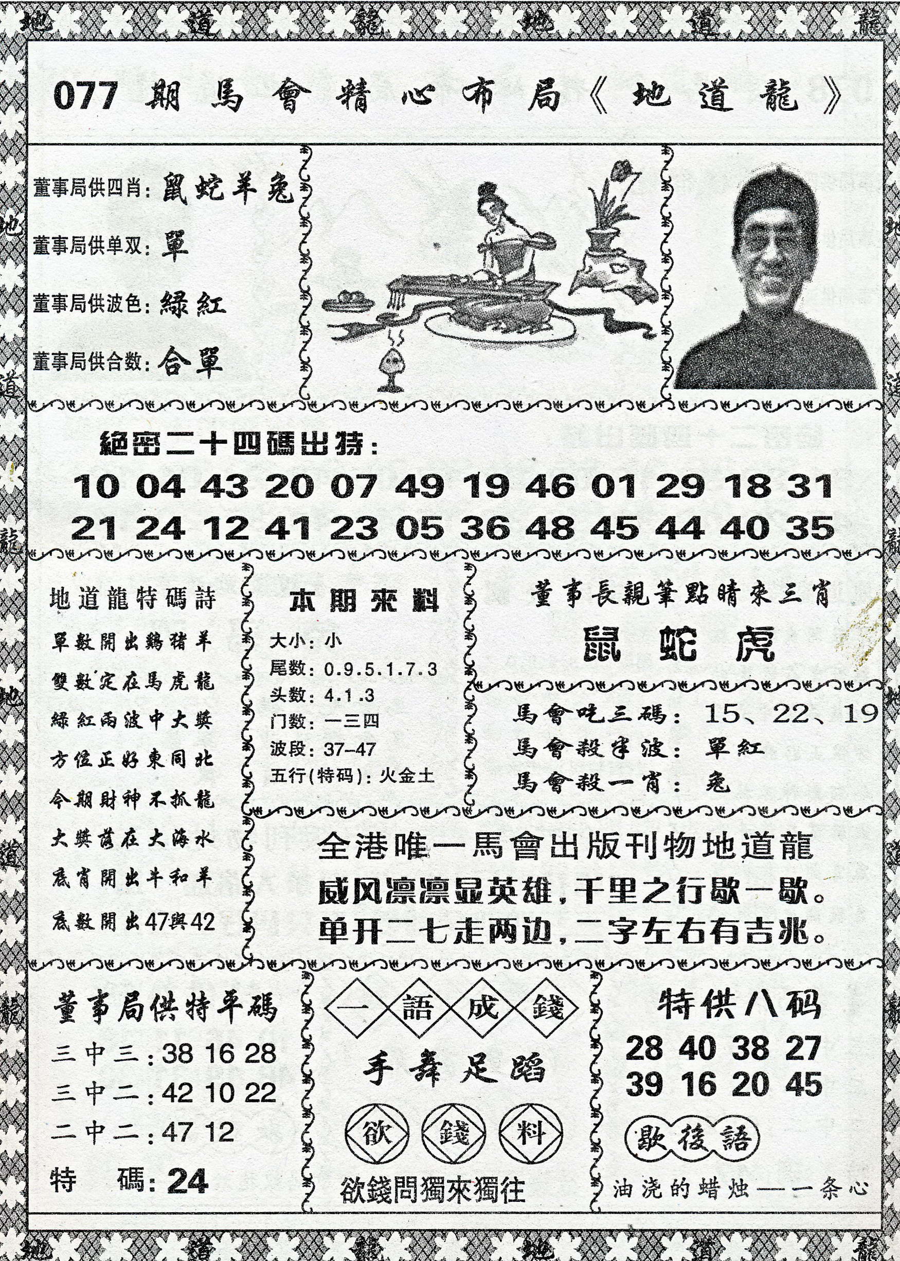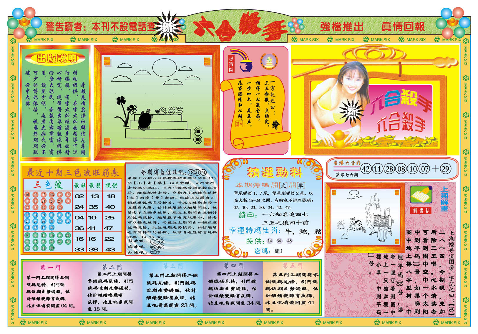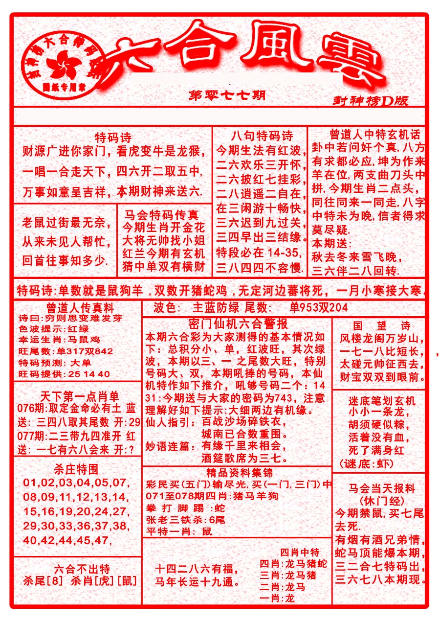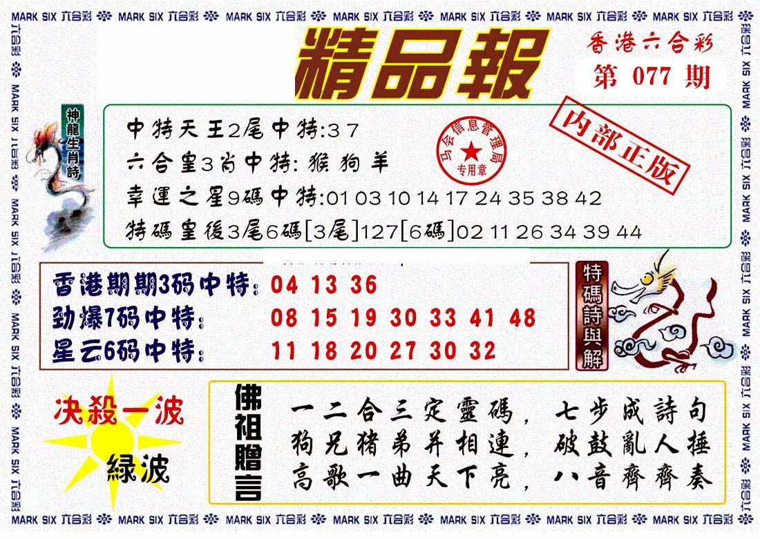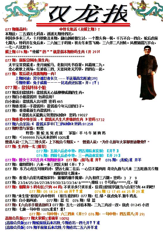 | 1336 | 统一玄机报 | 1337 | 正宗青龙五鬼报A | 1338 | 正宗青龙五鬼报B | 1339 | 美女六肖报 | |||||||||||||||||||||||||||||||||||||||||||||||||||