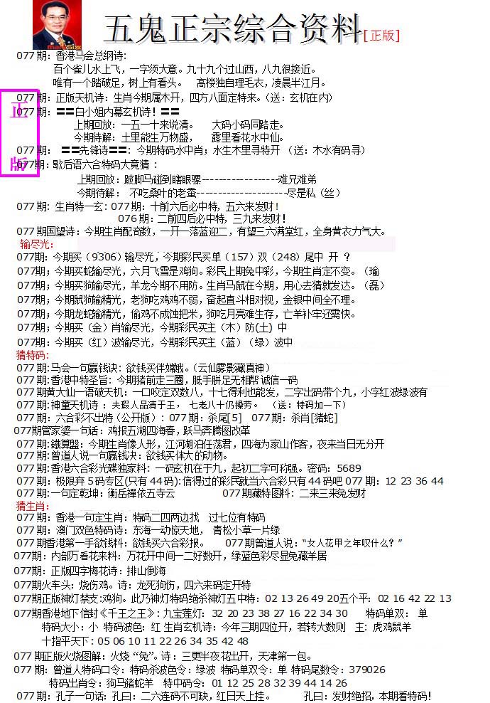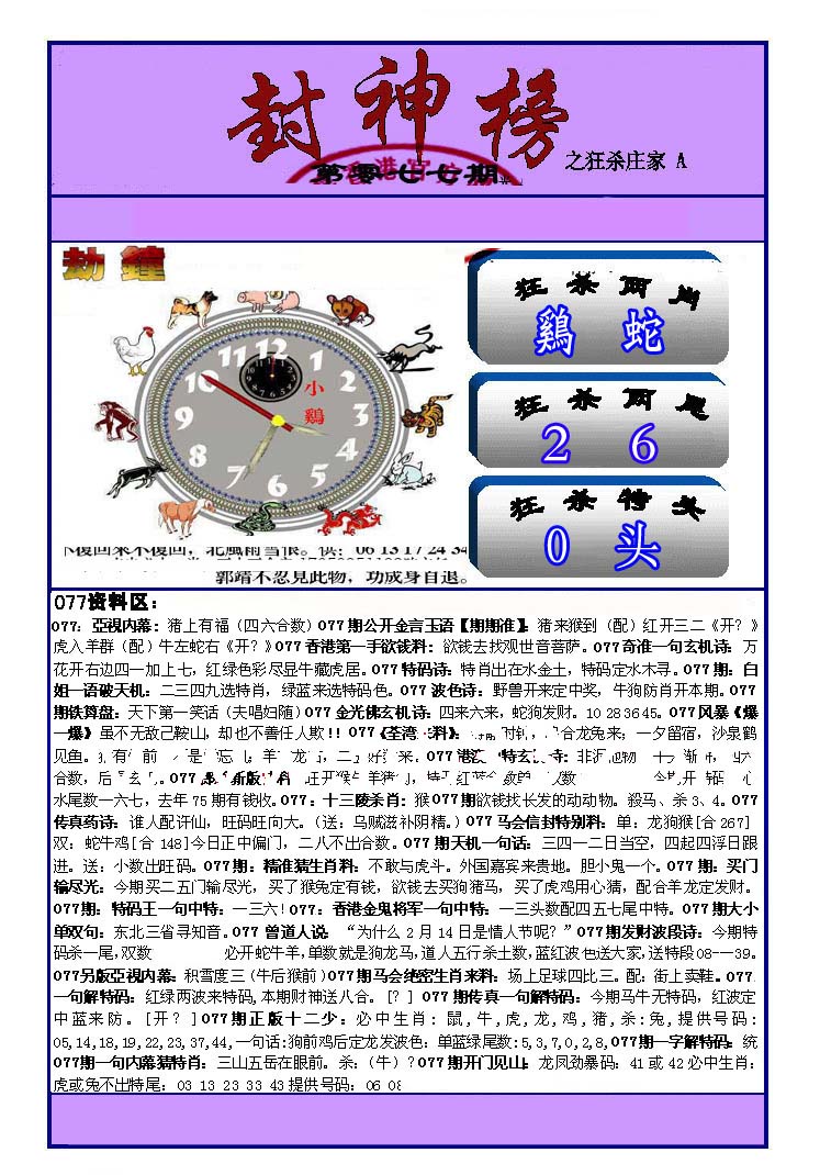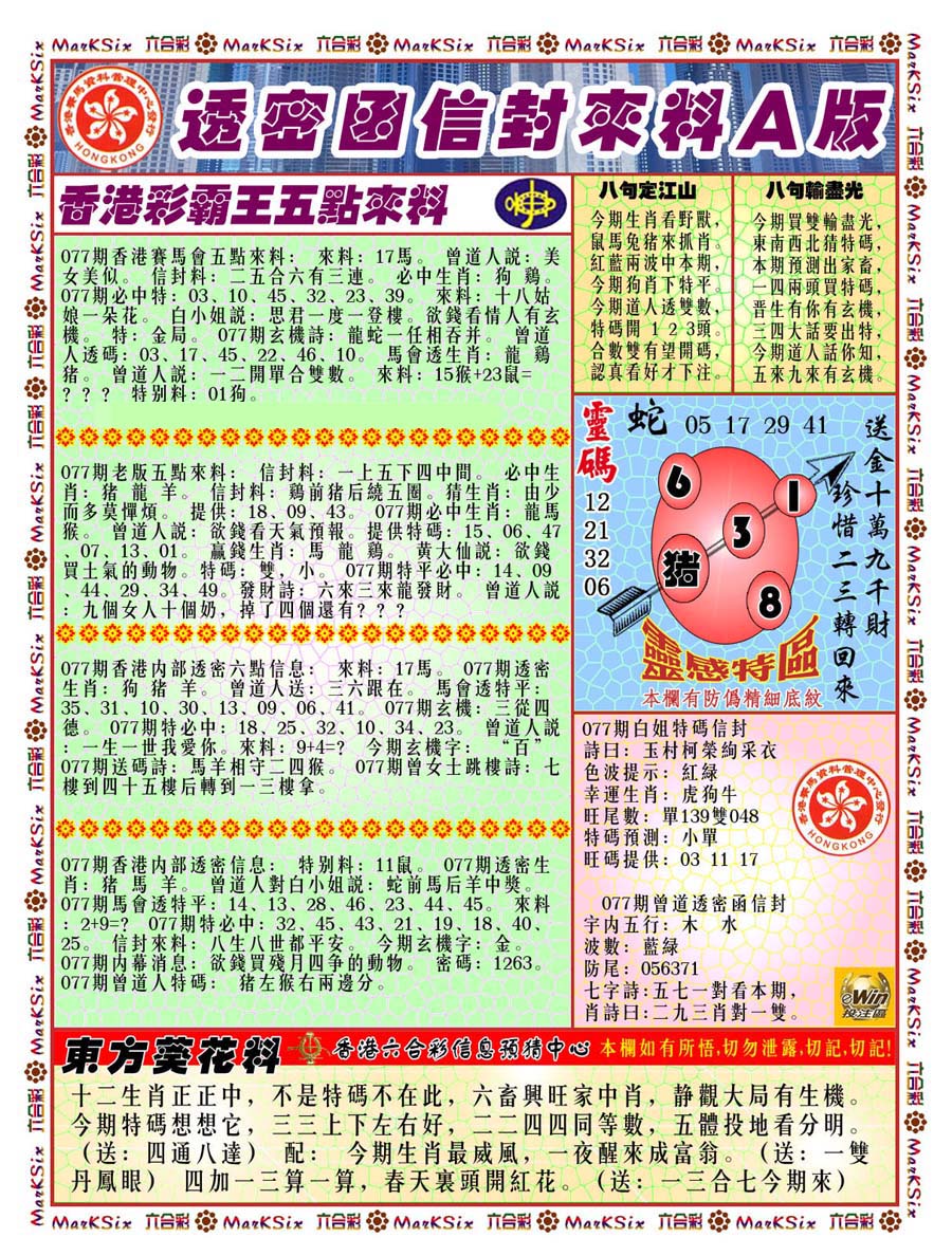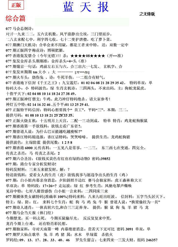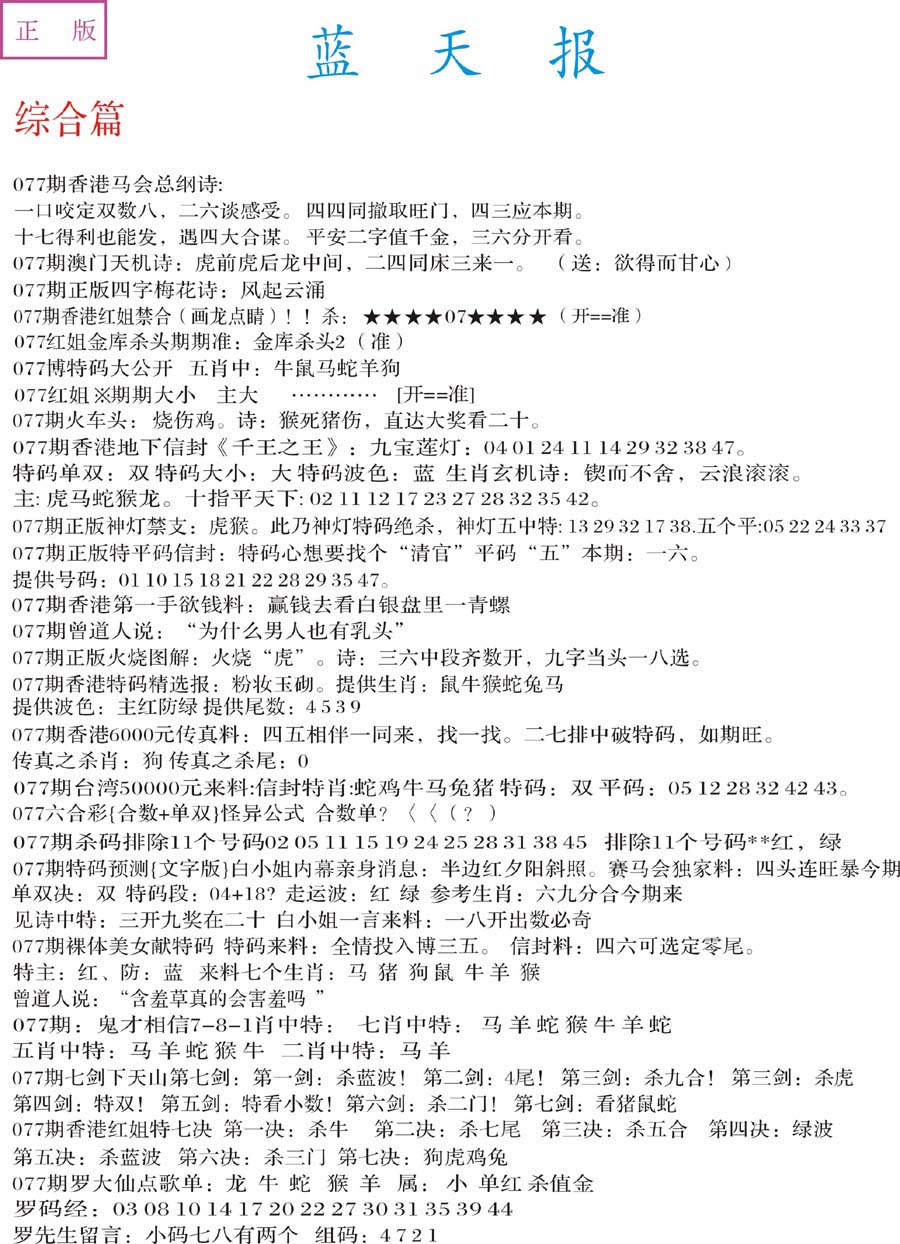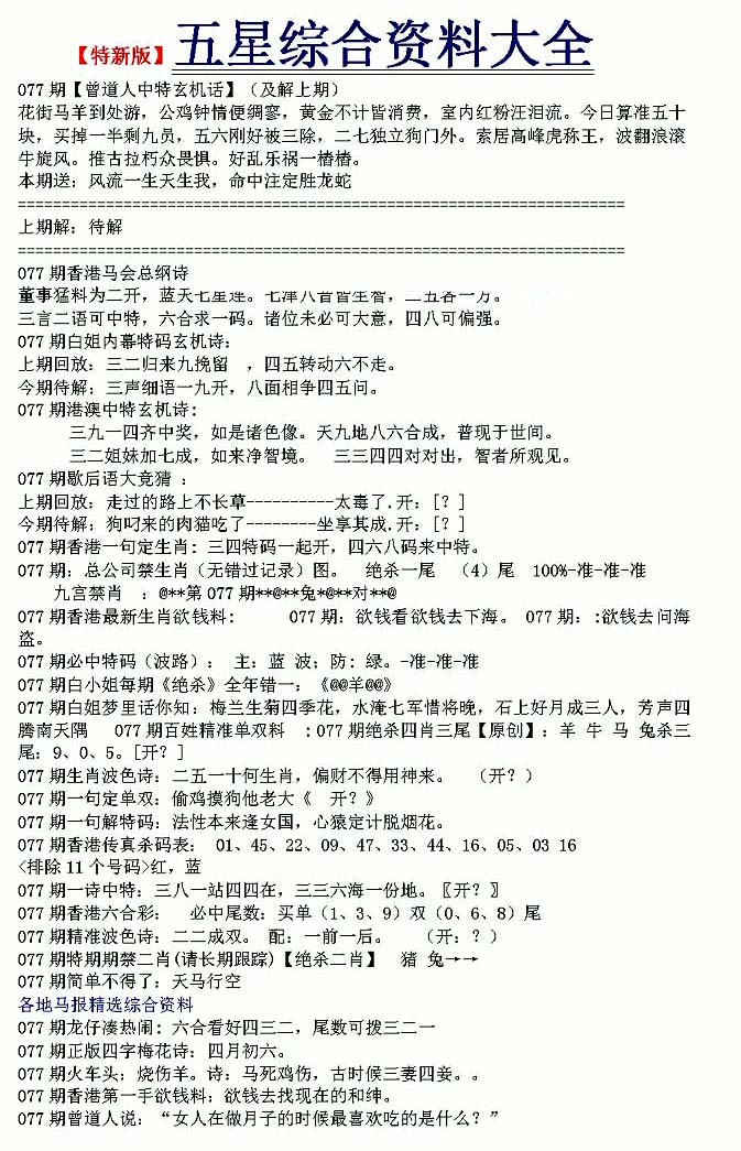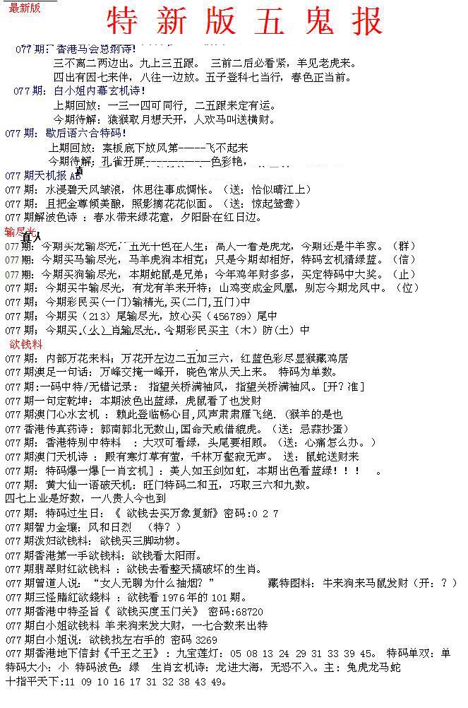 | 063 | 六合禅机A | 064 | 六合禅机B | 069 | 特 新 报A | 070 | 特 新 报B | |||||||||||||||||||||||||||||||||||||||||||||||||||