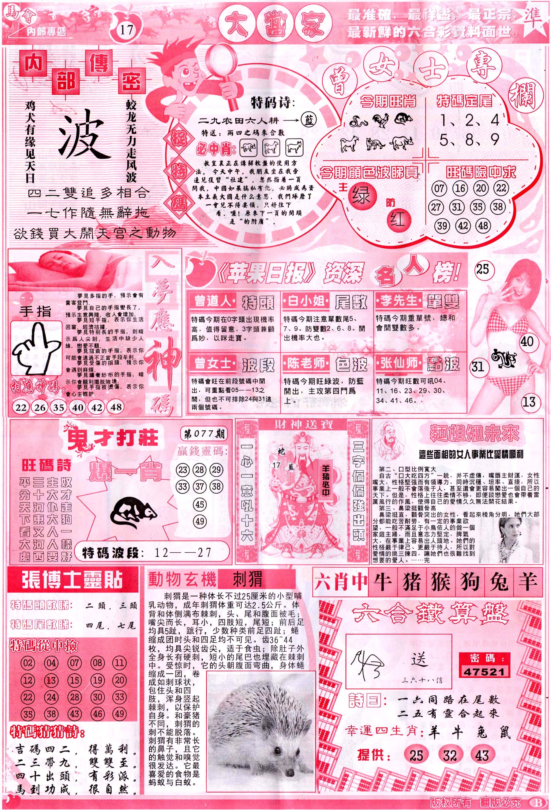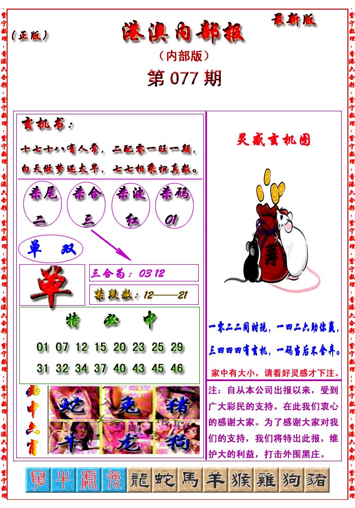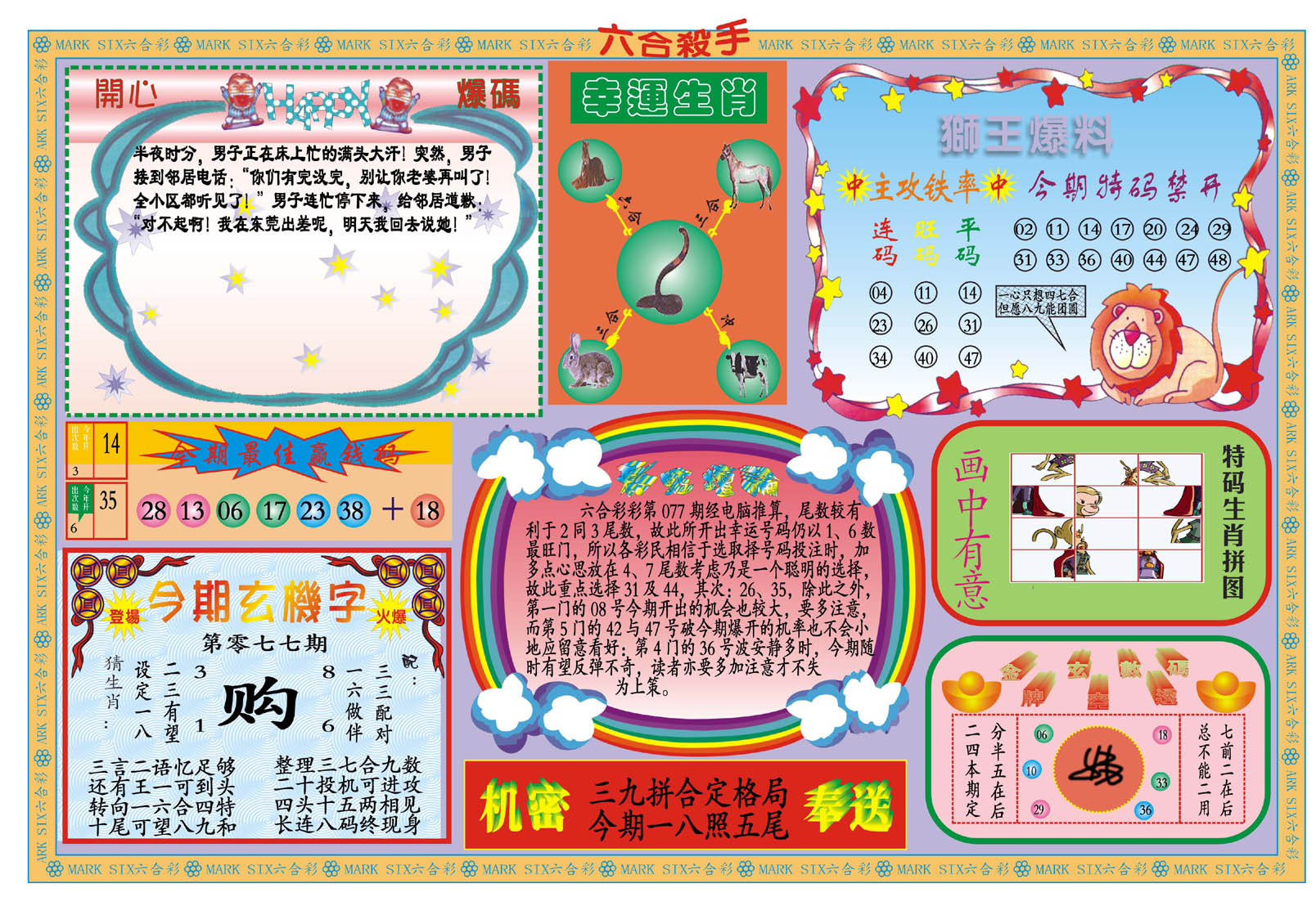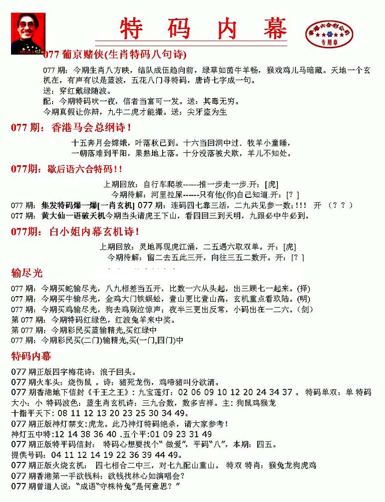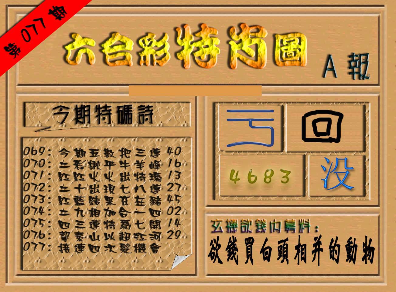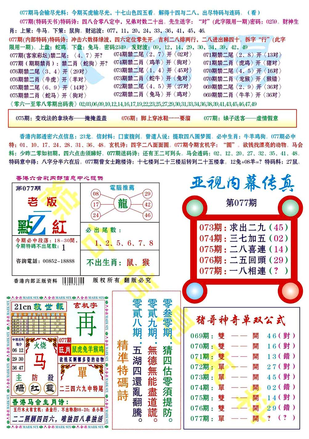 | 063 | 六合禅机A | 064 | 六合禅机B | 069 | 特 新 报A | 070 | 特 新 报B | |||||||||||||||||||||||||||||||||||||||||||||||||||
