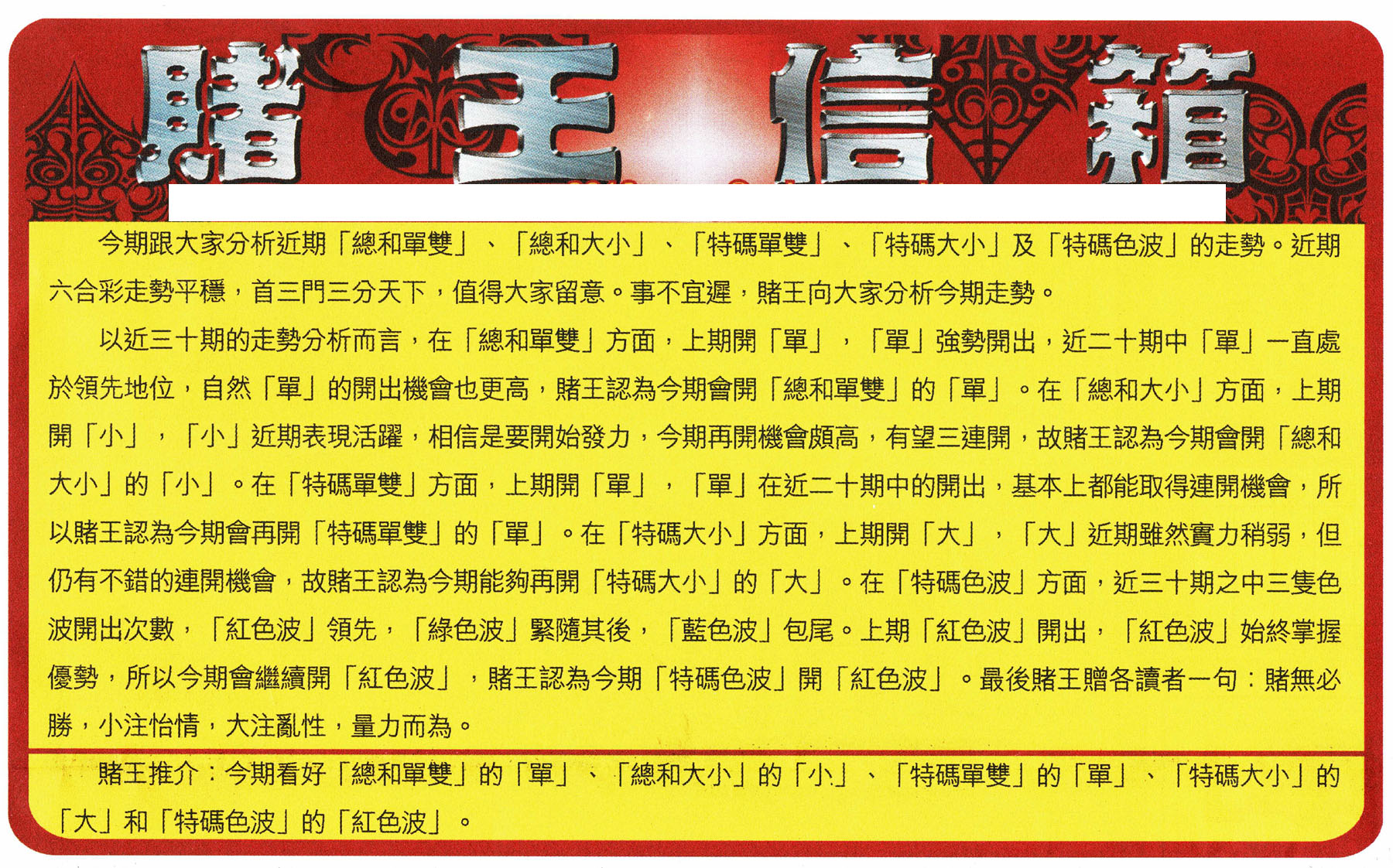 | 211 | 小赌经A | 212 | 小赌经B | 213 | 黄大仙加大版A | 214 | 黄大仙加大版B | |||||||||||||||||||||||||||||||||||||||||||||||||||