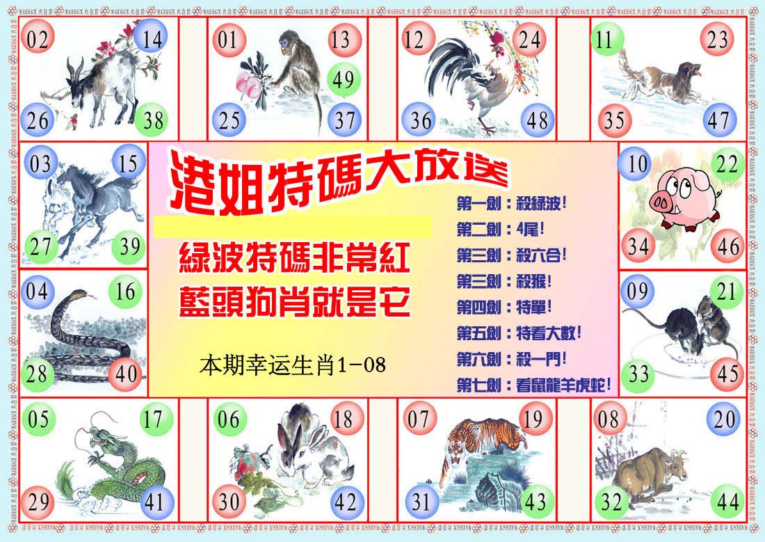 | 1601 | 马会双烧图 | 1602 | 马会禁尾图 | 1603 | 马会必中生肖 | 1604 | 内部禁肖禁尾 | |||||||||||||||||||||||||||||||||||||||||||||||||||