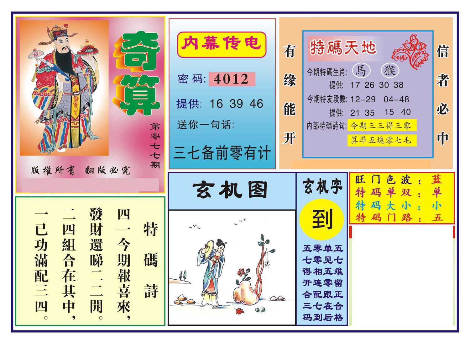 | 1708 | 内幕B | 1709 | 奇迹A | 1710 | 奇迹B | 1715 | 中特玄机料 | |||||||||||||||||||||||||||||||||||||||||||||||||||