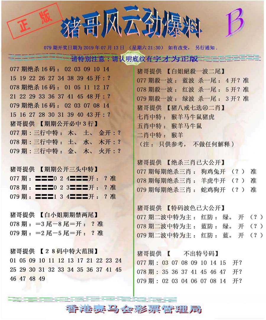 | 1659 | 另二代孔明报 | 1660 | 马经平特图 | 1661 | 杀杀杀A | 1662 | 杀杀杀B | |||||||||||||||||||||||||||||||||||||||||||||||||||