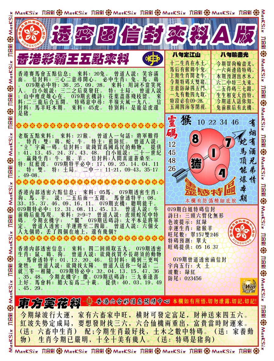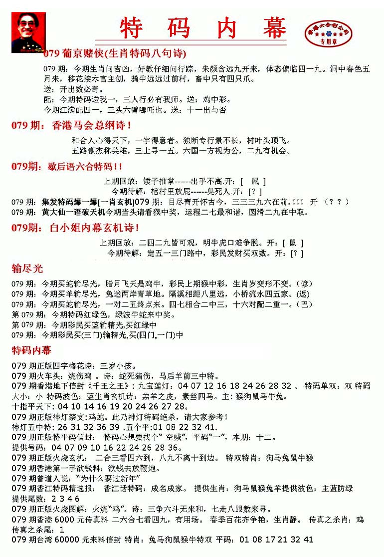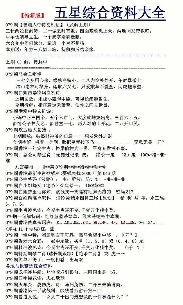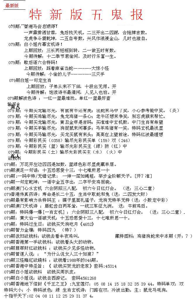 | 063 | 六合禅机A | 064 | 六合禅机B | 069 | 特 新 报A | 070 | 特 新 报B | |||||||||||||||||||||||||||||||||||||||||||||||||||