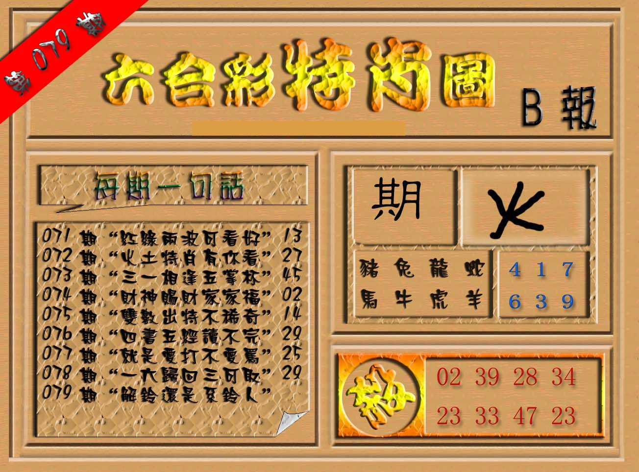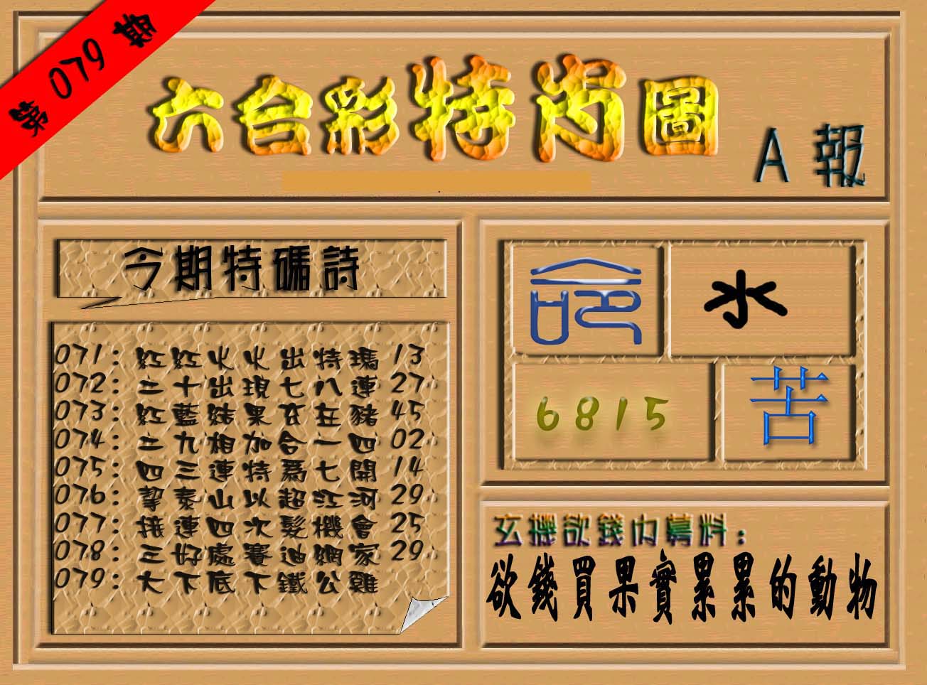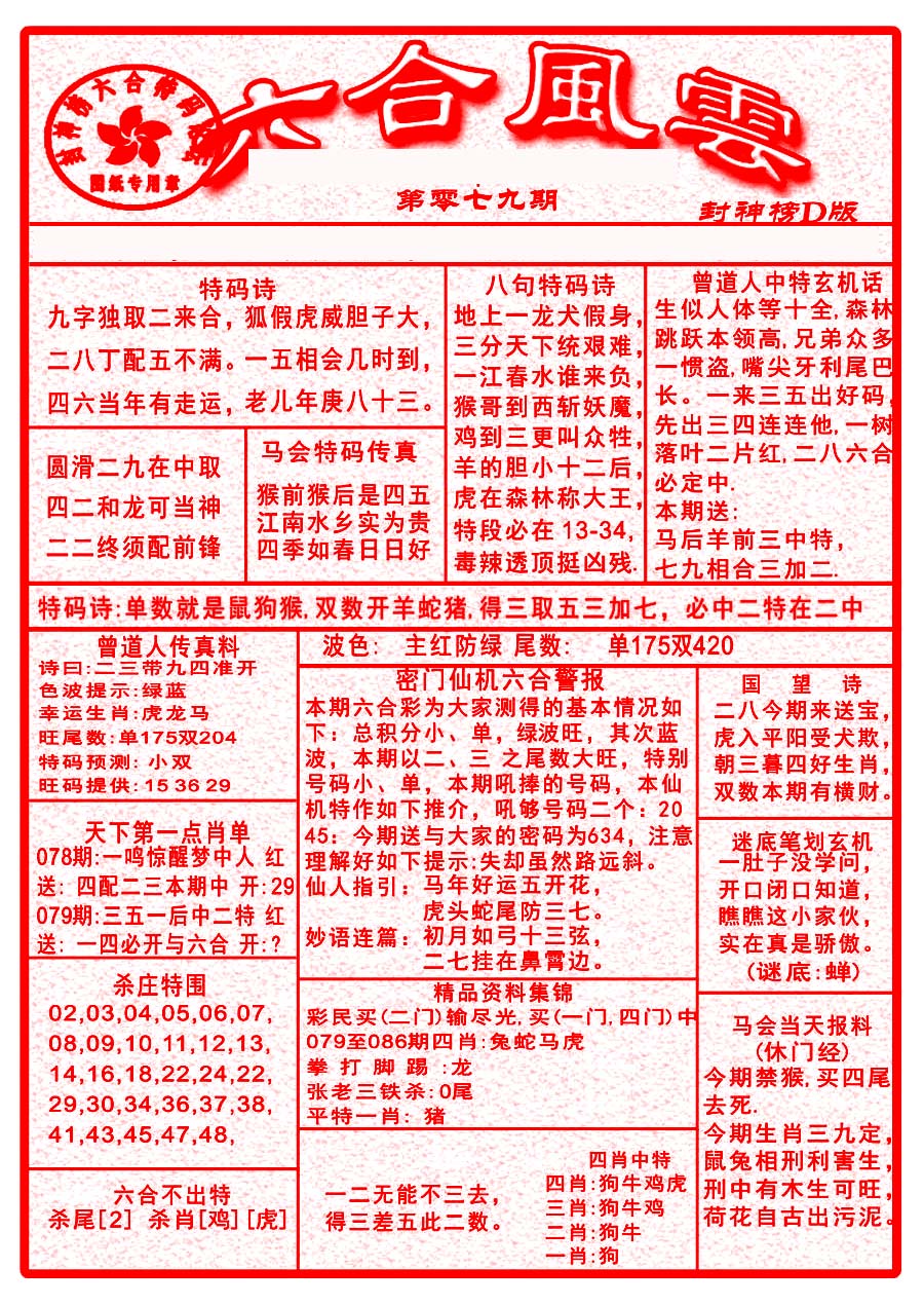 | 063 | 六合禅机A | 064 | 六合禅机B | 069 | 特 新 报A | 070 | 特 新 报B | |||||||||||||||||||||||||||||||||||||||||||||||||||