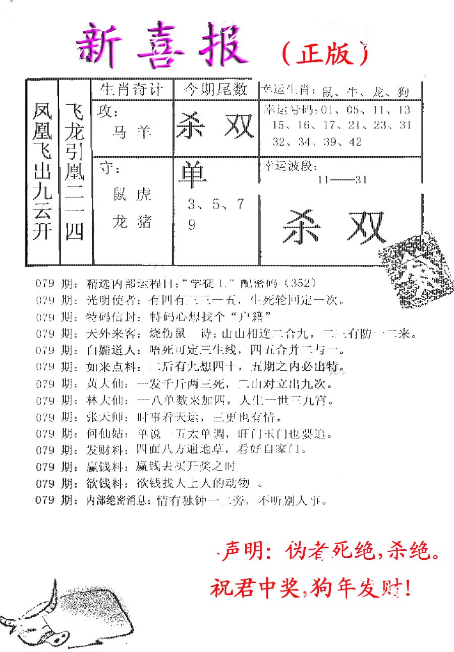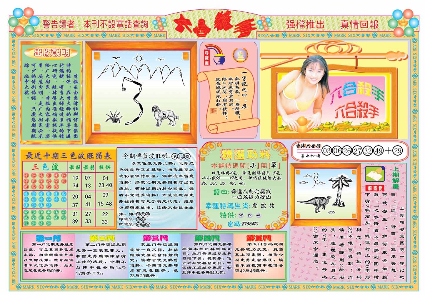 | 1336 | 统一玄机报 | 1337 | 正宗青龙五鬼报A | 1338 | 正宗青龙五鬼报B | 1339 | 美女六肖报 | |||||||||||||||||||||||||||||||||||||||||||||||||||