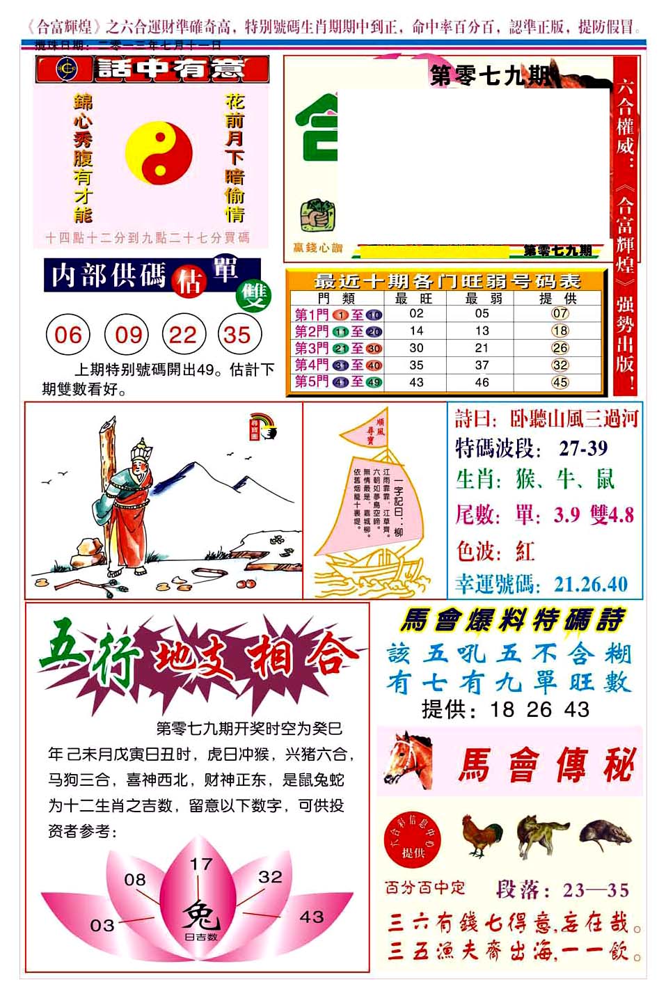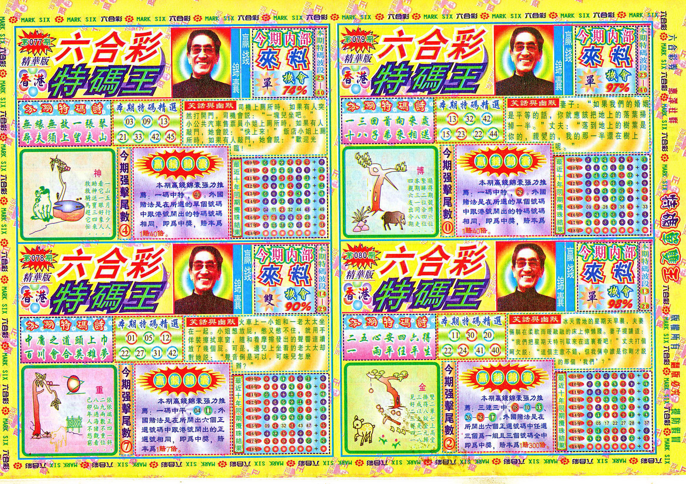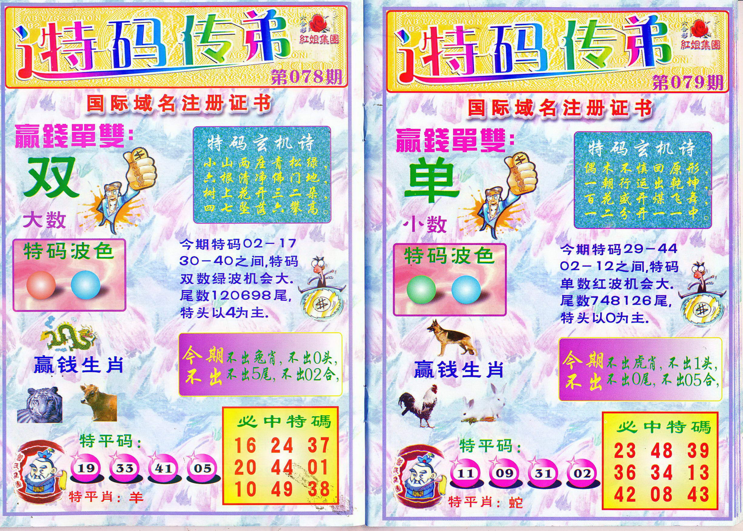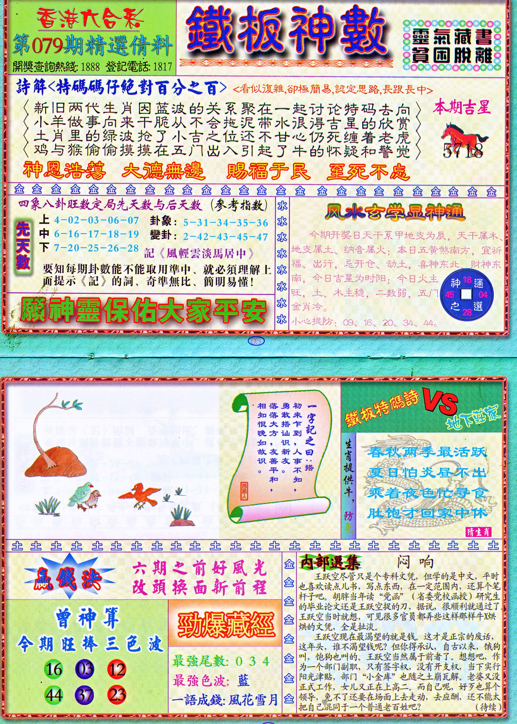 | 1765 | 黄大仙救世报 | 1766 | 香港马会专刊A | 1767 | 香港马会专刊B | 1768 | 赌王心经 |