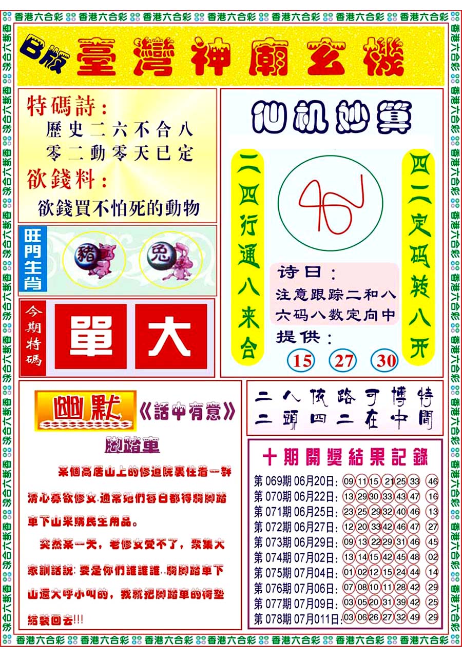 | 065 | 香港神算 | 066 | 澳门三合图 | 067 | 台湾神算通 | 068 | 六彩阴阳图 | |||||||||||||||||||||||||||||||||||||||||||||||||||