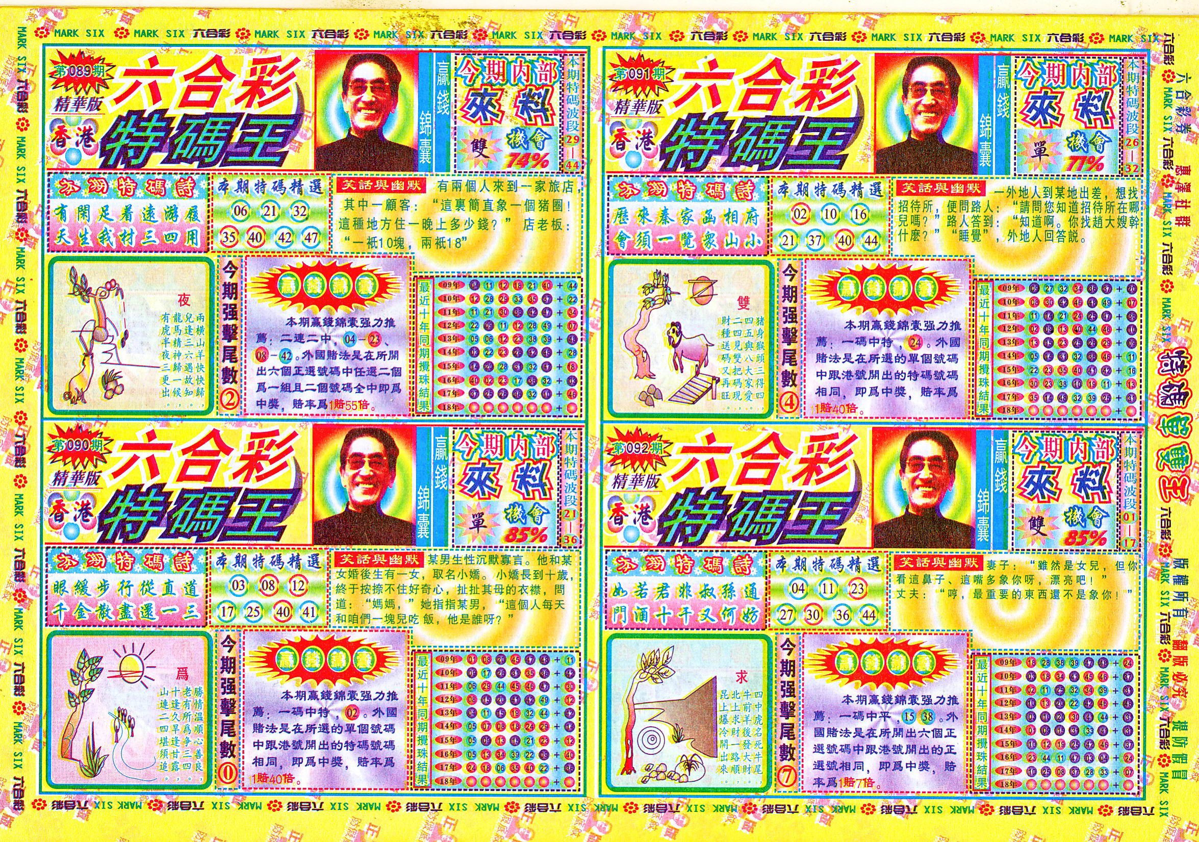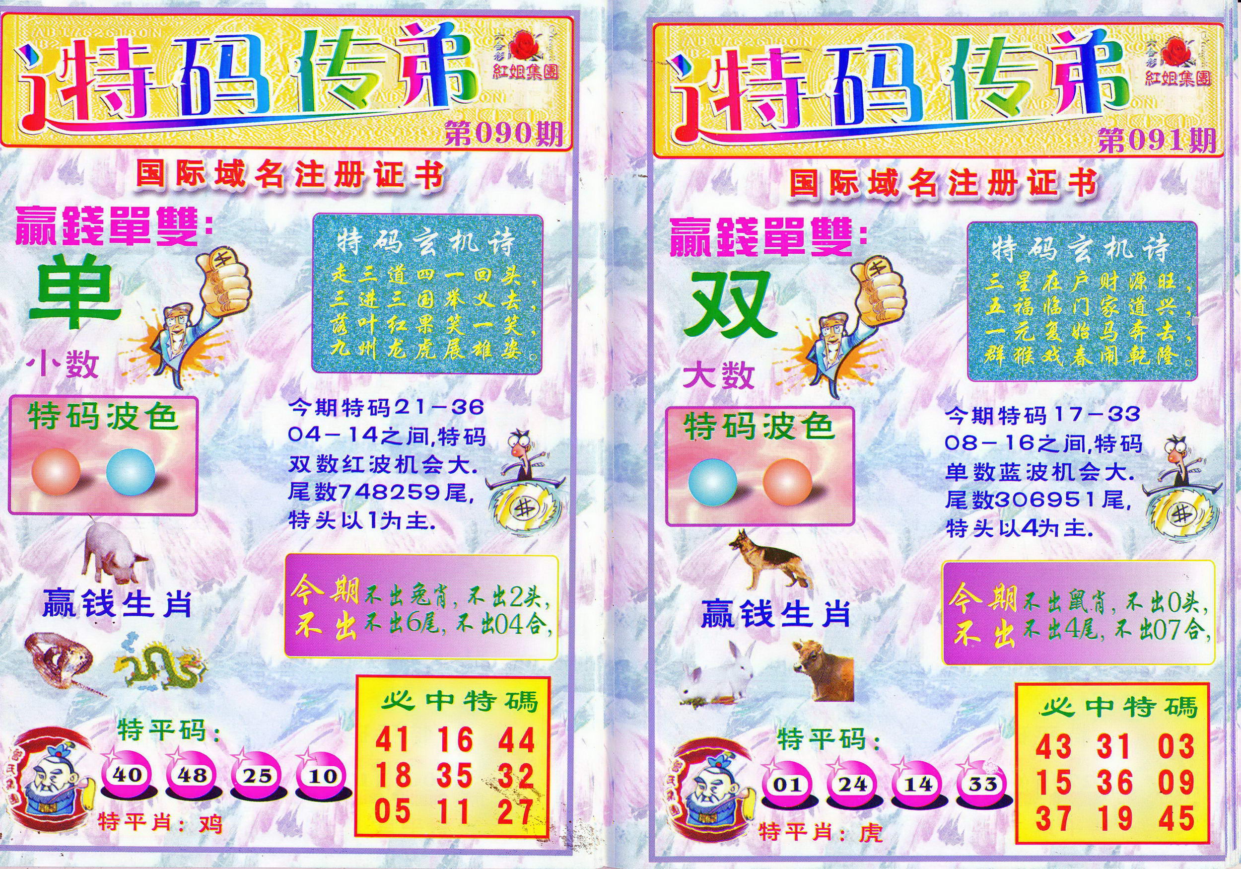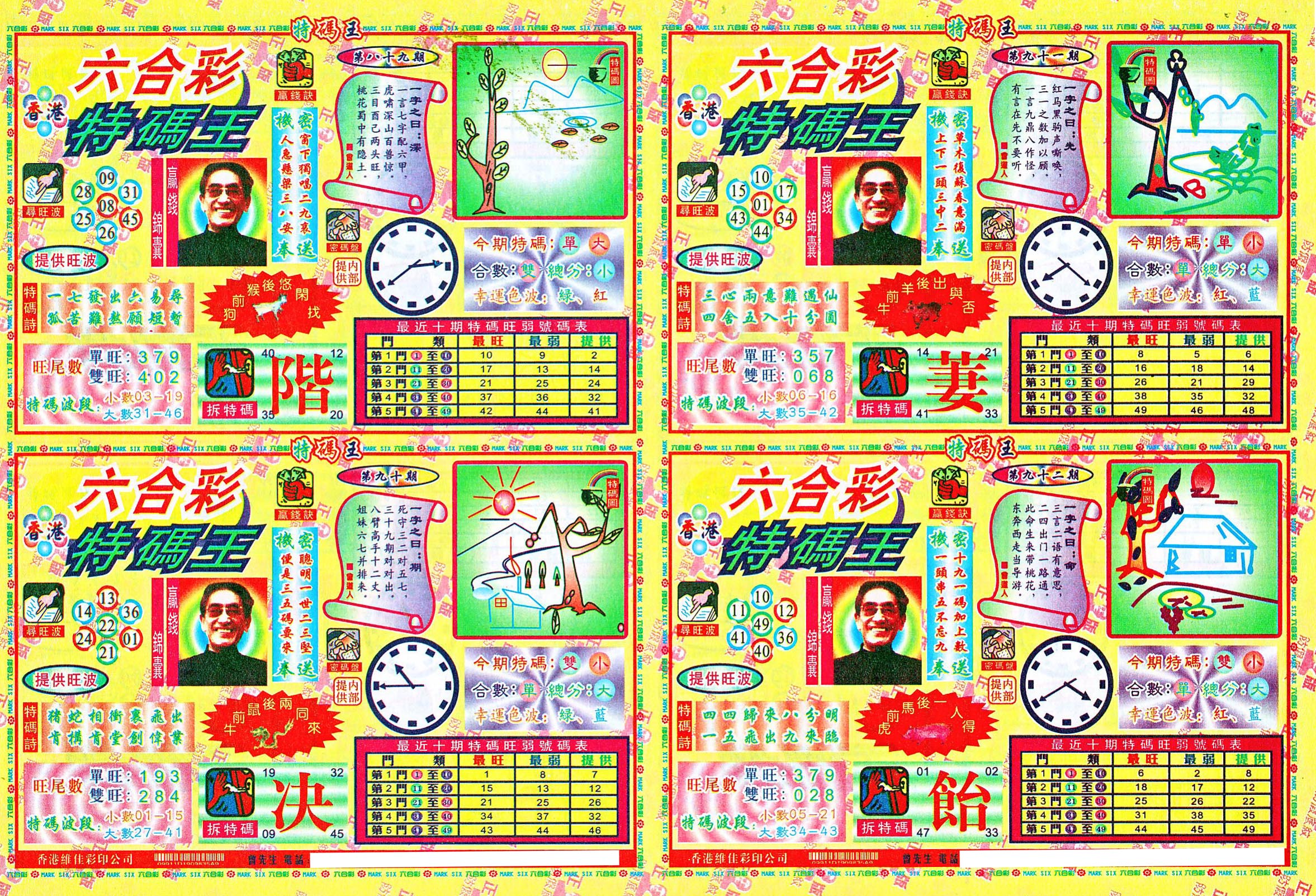 | 1765 | 黄大仙救世报 | 1766 | 香港马会专刊A | 1767 | 香港马会专刊B | 1768 | 赌王心经 |