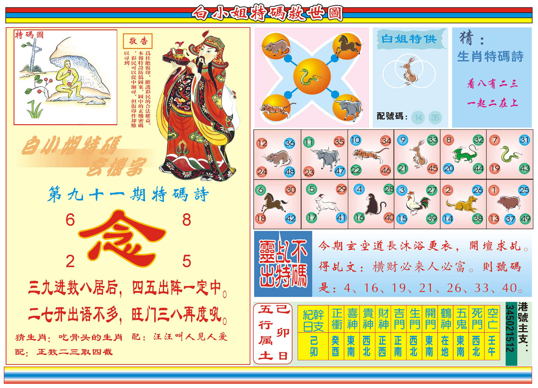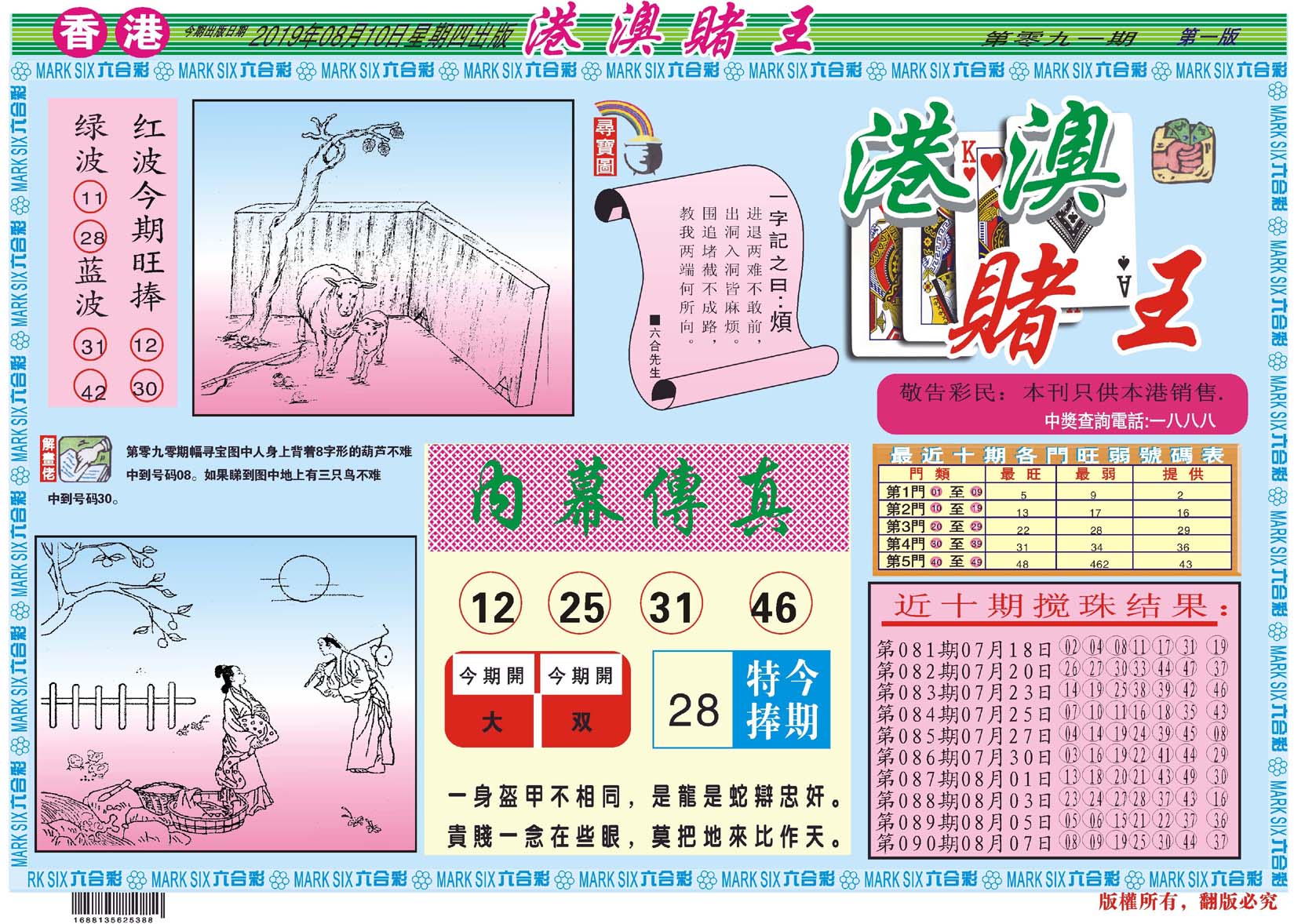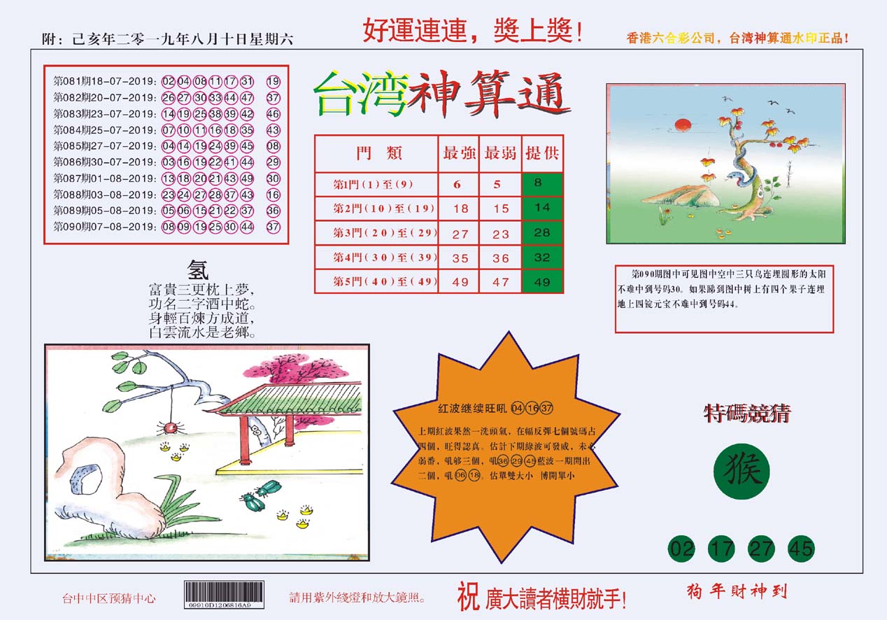 | 1765 | 黄大仙救世报 | 1766 | 香港马会专刊A | 1767 | 香港马会专刊B | 1768 | 赌王心经 |