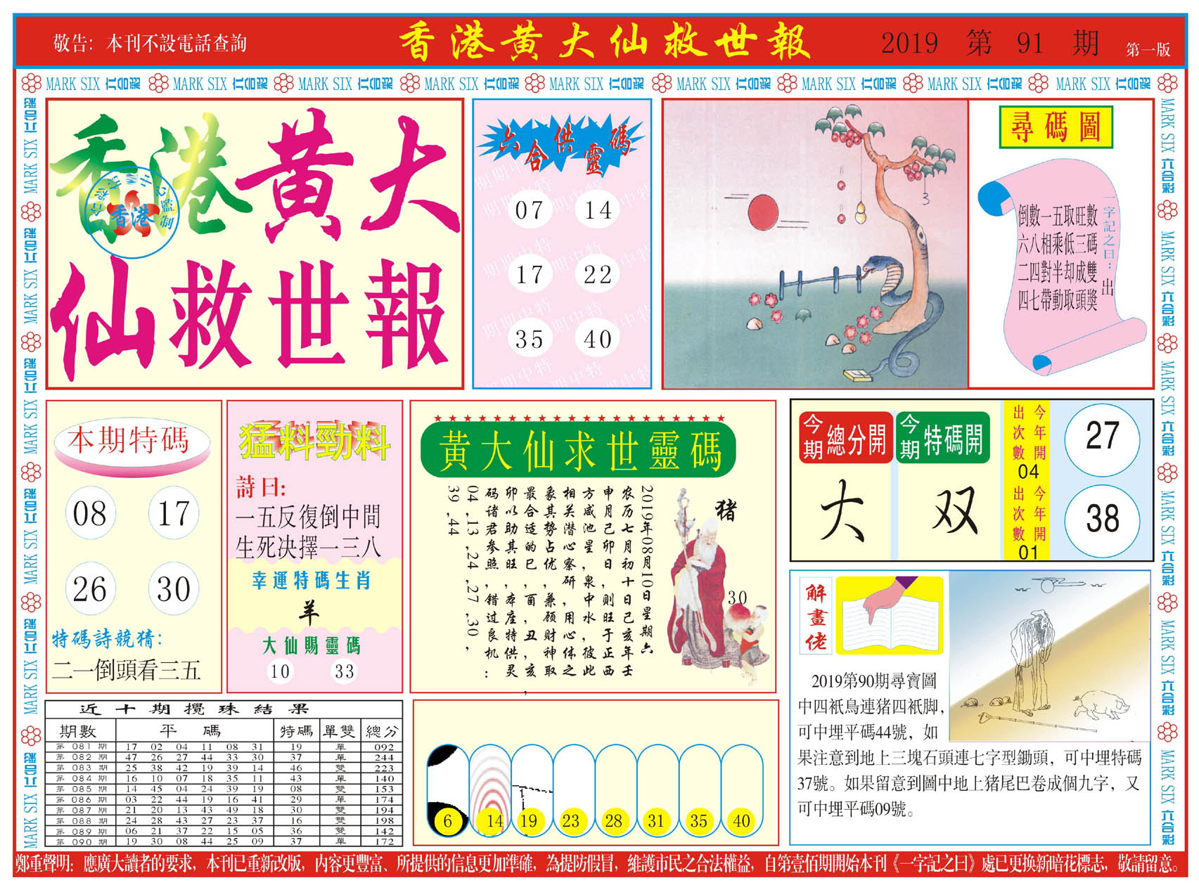 | 019 | 黄大仙救世报A | 020 | 黄大仙救世报B | 021 | 香港黄大仙报A | 022 | 香港黄大仙报B | |||||||||||||||||||||||||||||||||||||||||||||||||||