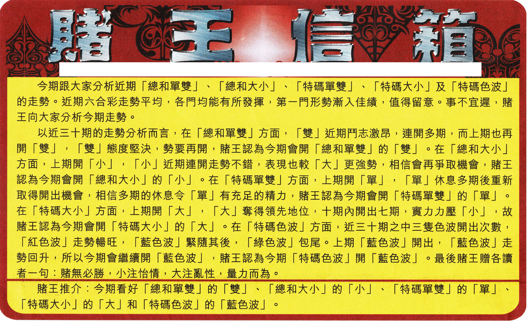 | 211 | 小赌经A | 212 | 小赌经B | 213 | 黄大仙加大版A | 214 | 黄大仙加大版B | |||||||||||||||||||||||||||||||||||||||||||||||||||
