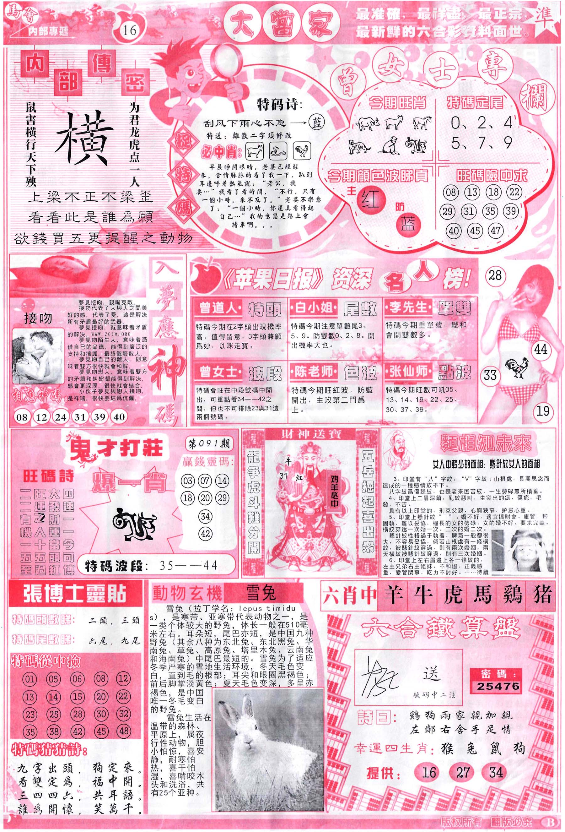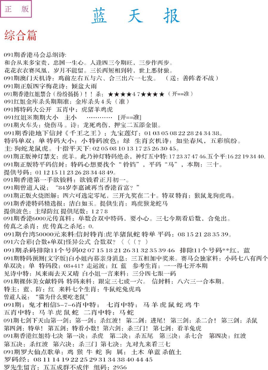 | 063 | 六合禅机A | 064 | 六合禅机B | 069 | 特 新 报A | 070 | 特 新 报B | |||||||||||||||||||||||||||||||||||||||||||||||||||