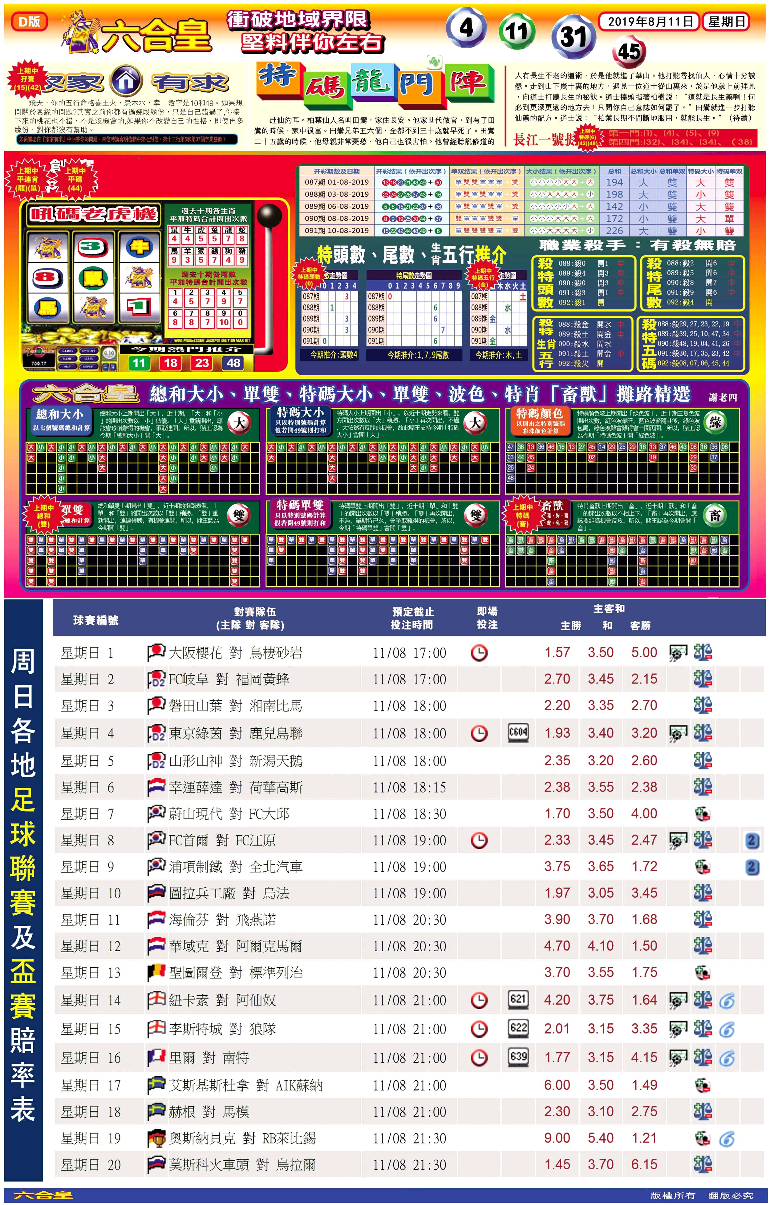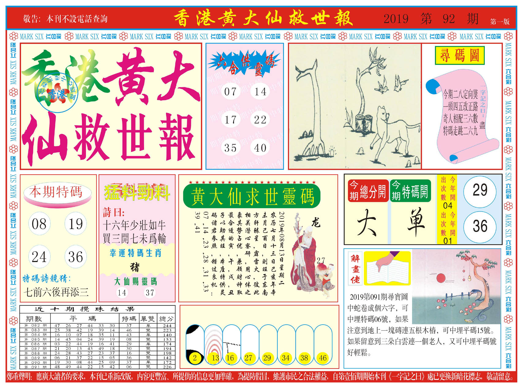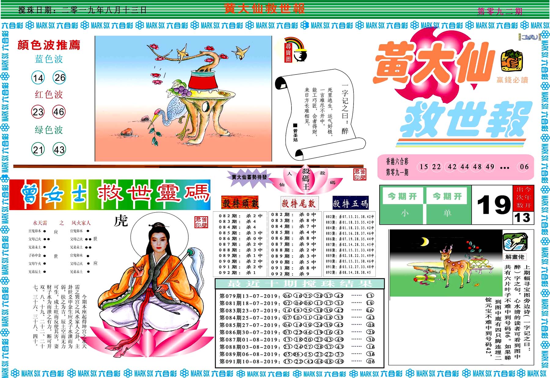 | 019 | 黄大仙救世报A | 020 | 黄大仙救世报B | 021 | 香港黄大仙报A | 022 | 香港黄大仙报B | |||||||||||||||||||||||||||||||||||||||||||||||||||