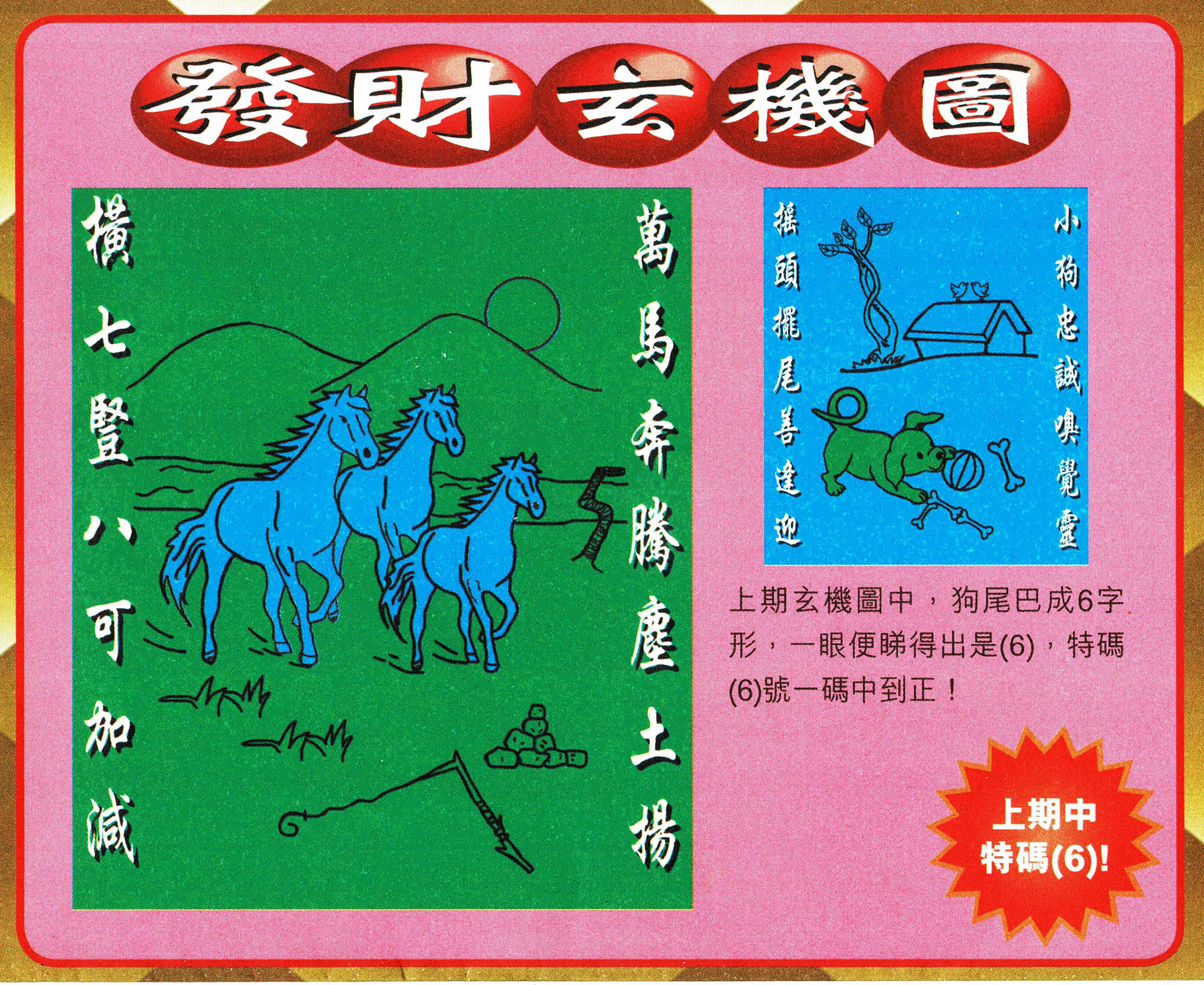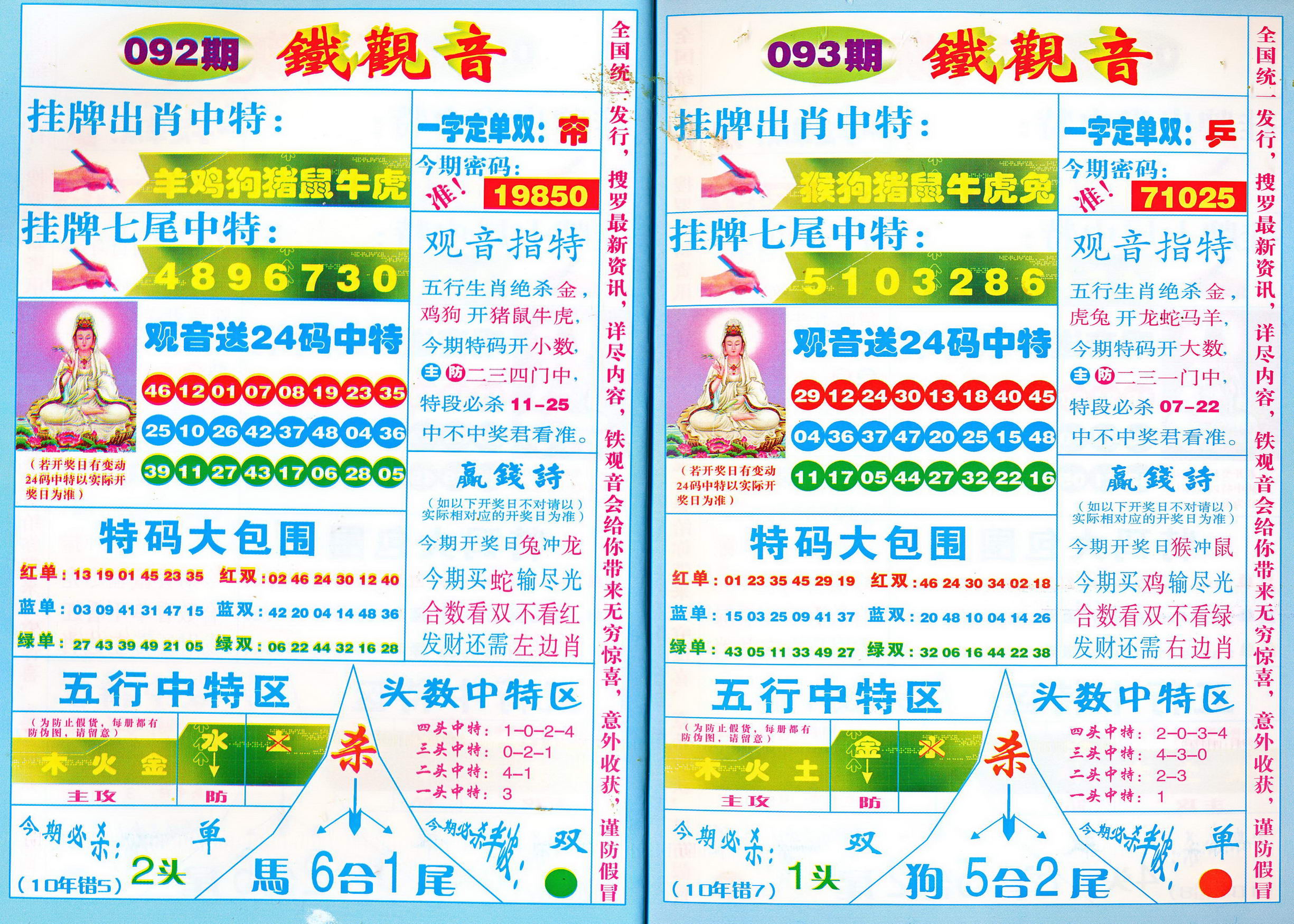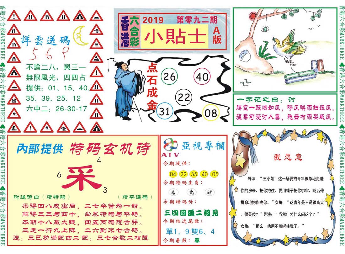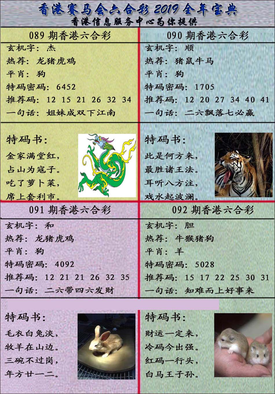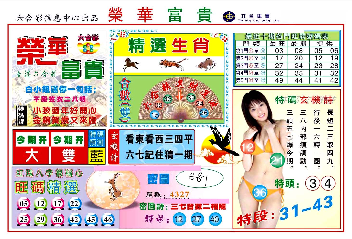| 1765 | 黄大仙救世报 | 1766 | 香港马会专刊A | 1767 | 香港马会专刊B | 1768 | 赌王心经 |