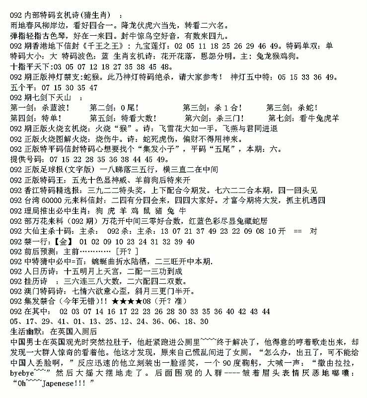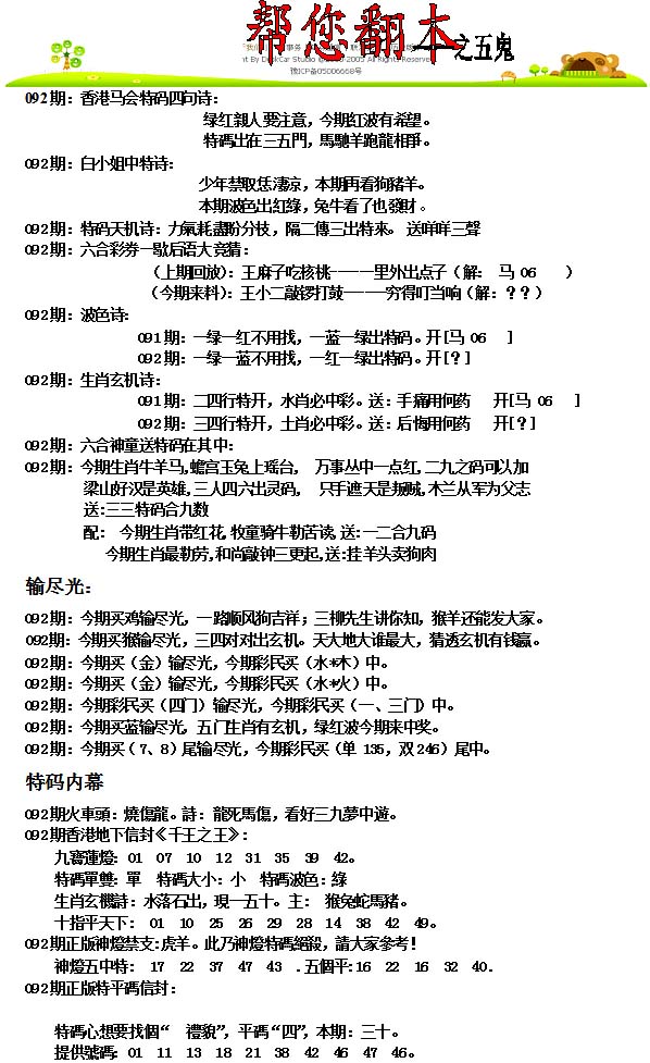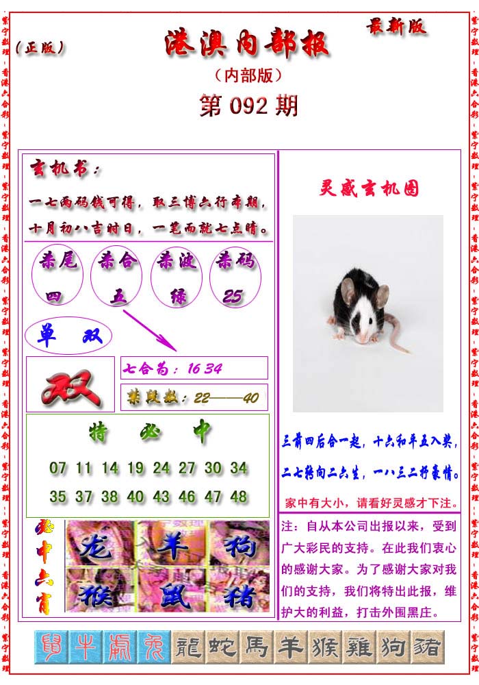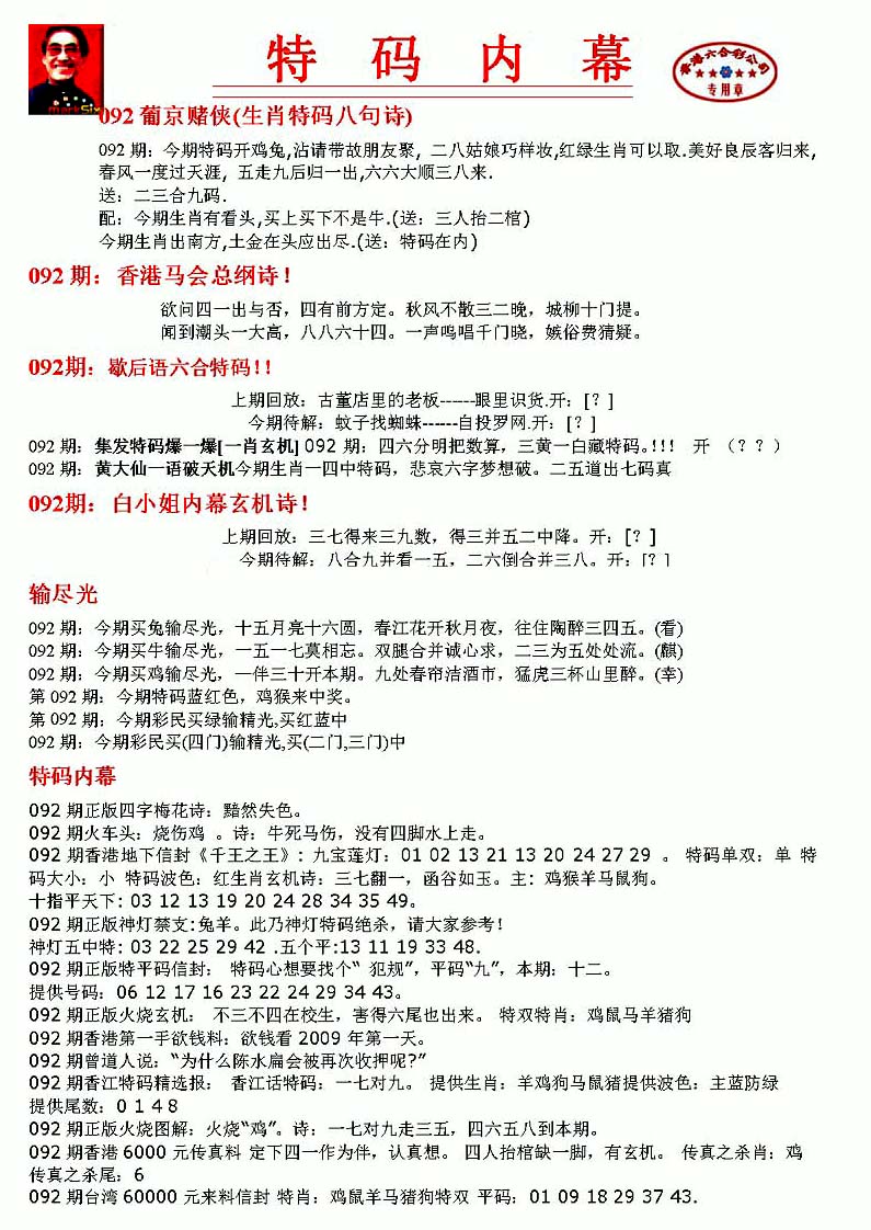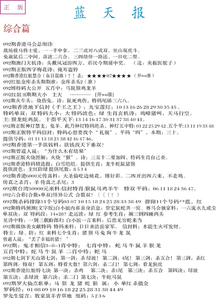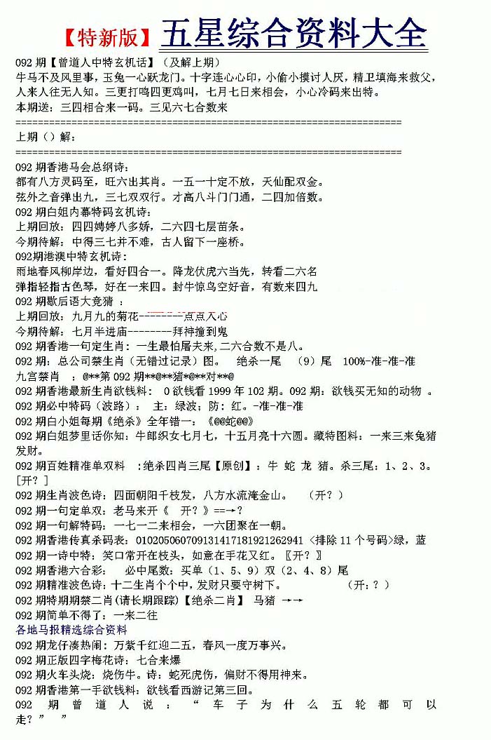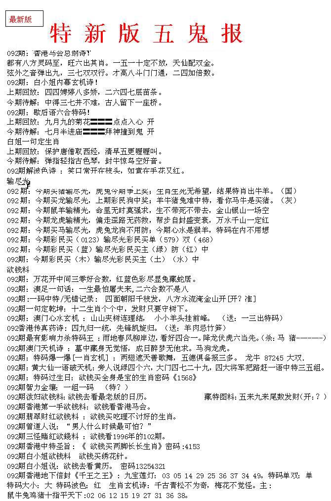 | 063 | 六合禅机A | 064 | 六合禅机B | 069 | 特 新 报A | 070 | 特 新 报B | |||||||||||||||||||||||||||||||||||||||||||||||||||