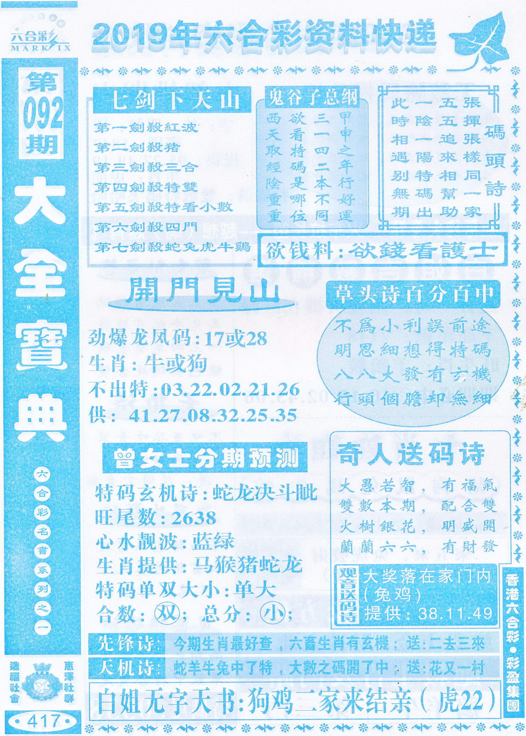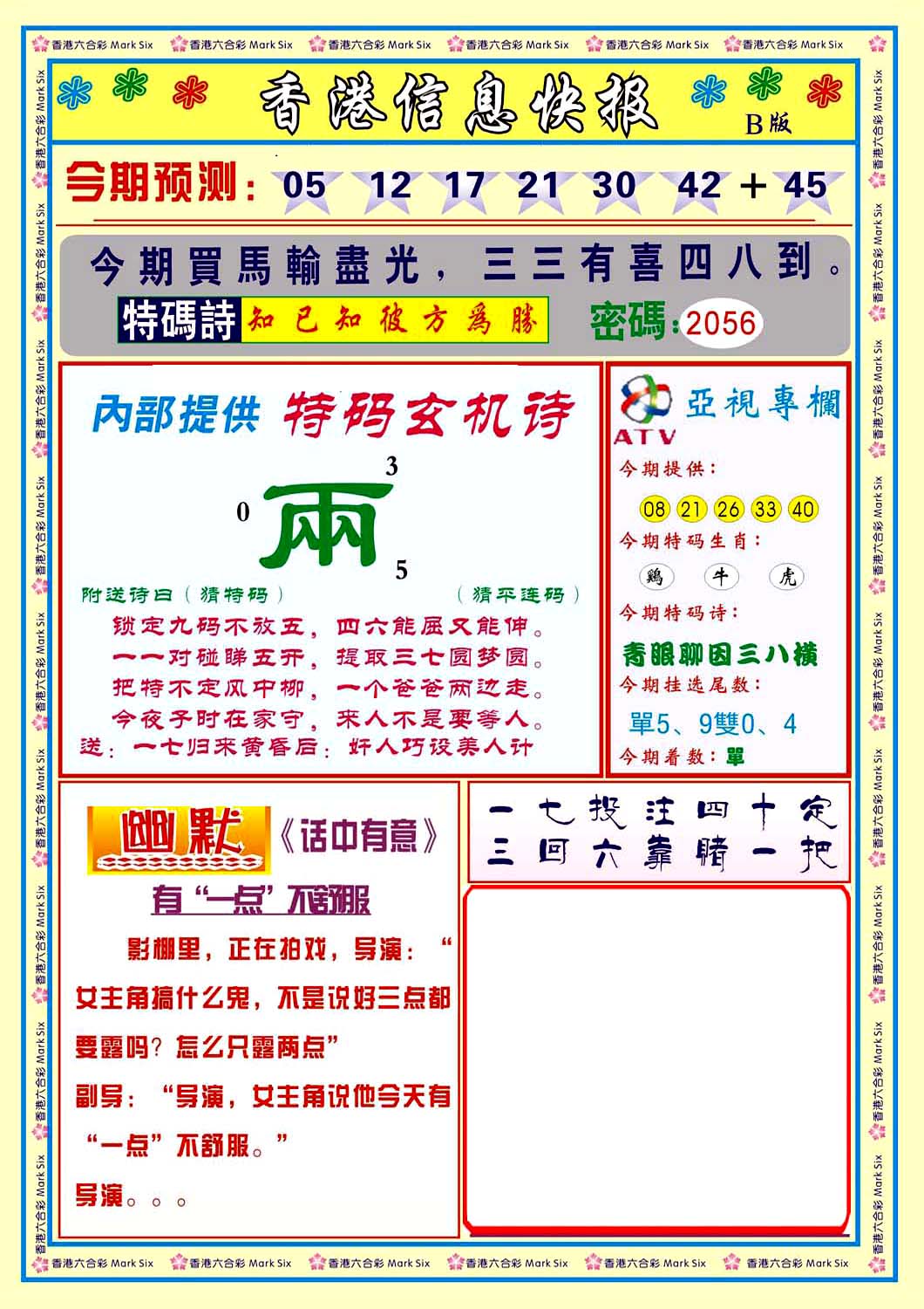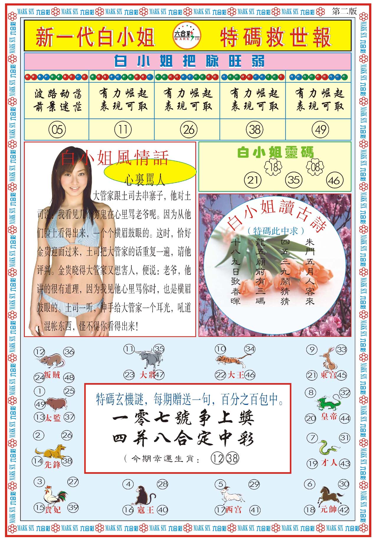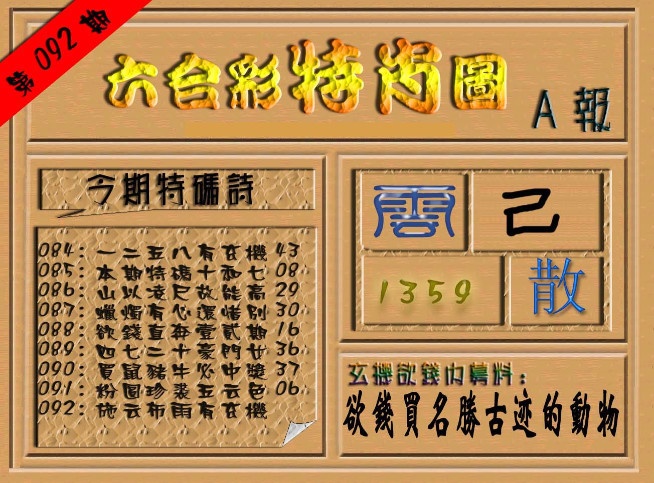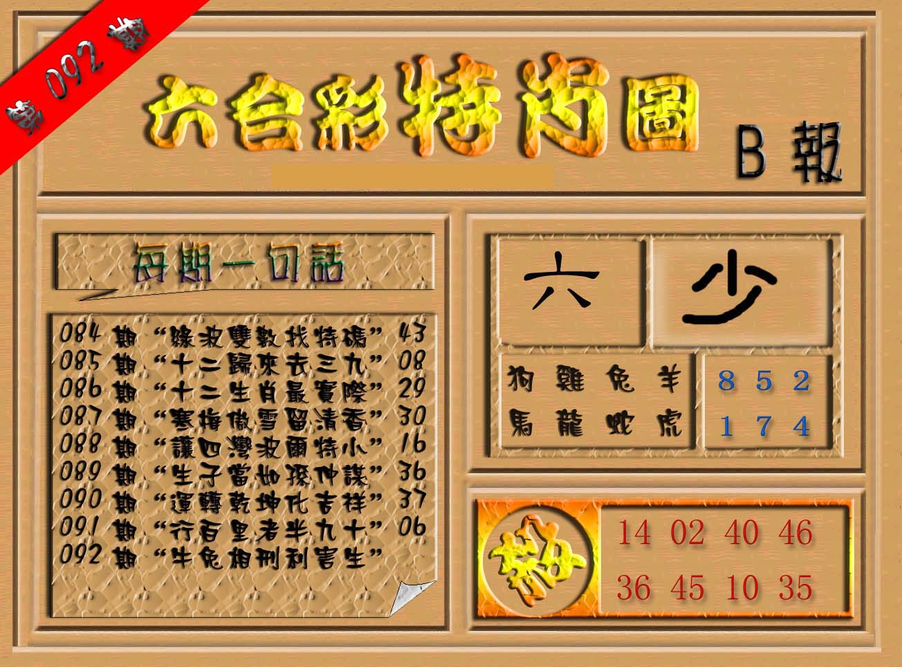 | 063 | 六合禅机A | 064 | 六合禅机B | 069 | 特 新 报A | 070 | 特 新 报B | |||||||||||||||||||||||||||||||||||||||||||||||||||