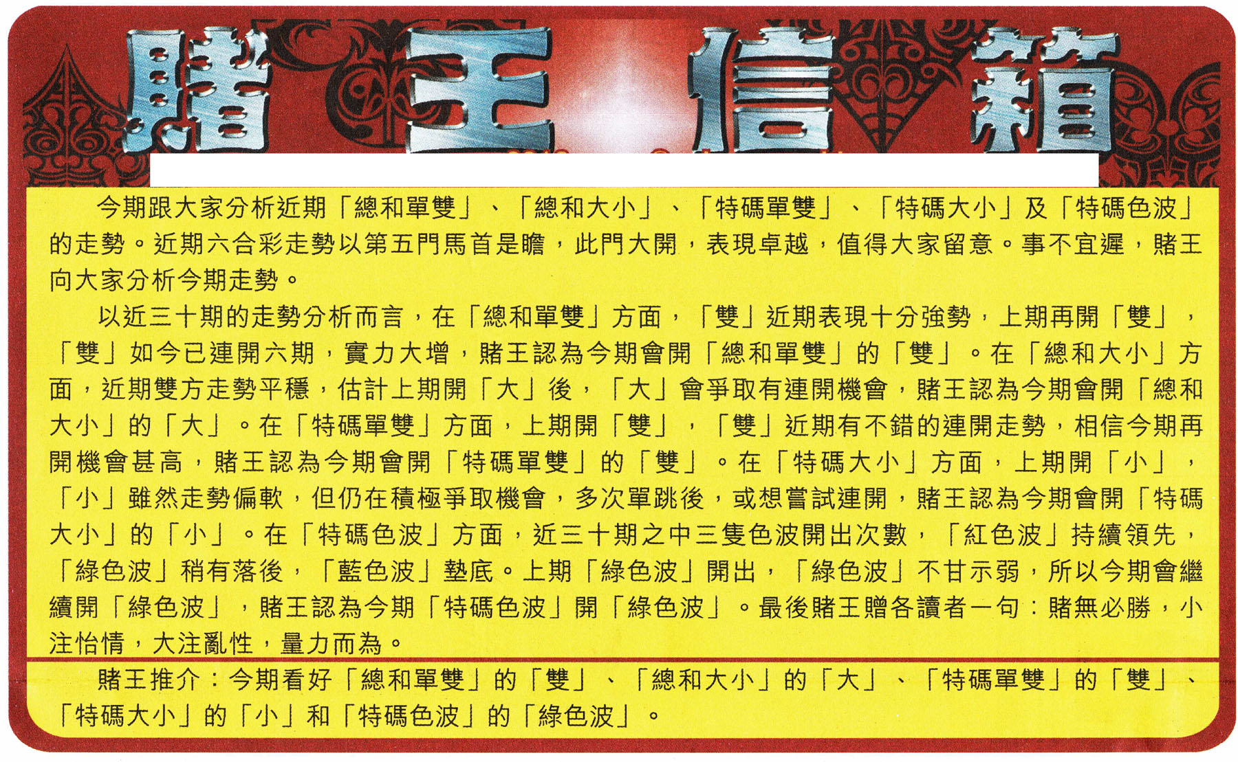 | 1356 | 赌神兔报(信封) | 1357 | 单双攻略(最老版) | 1358 | 藏宝图(最老版) | 1359 | 单双攻略(正版) | |||||||||||||||||||||||||||||||||||||||||||||||||||