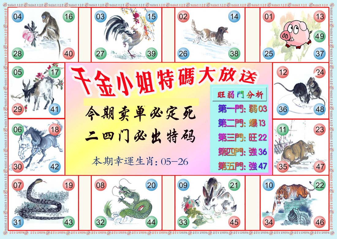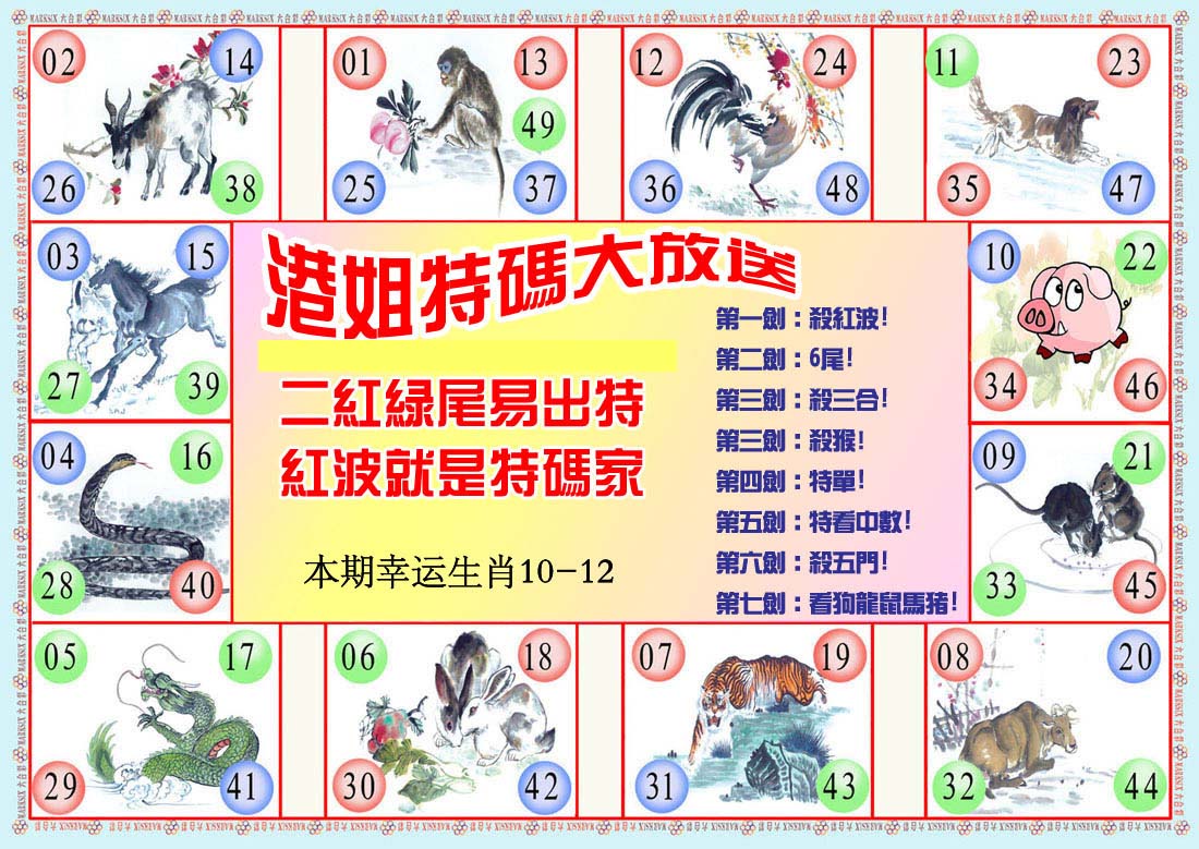 | 1601 | 马会双烧图 | 1602 | 马会禁尾图 | 1603 | 马会必中生肖 | 1604 | 内部禁肖禁尾 | |||||||||||||||||||||||||||||||||||||||||||||||||||