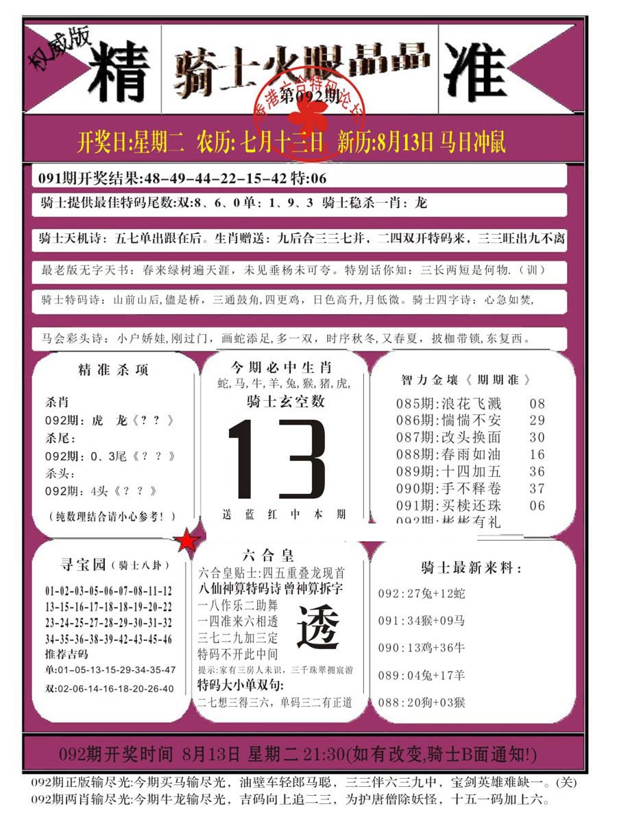 | 1336 | 统一玄机报 | 1337 | 正宗青龙五鬼报A | 1338 | 正宗青龙五鬼报B | 1339 | 美女六肖报 | |||||||||||||||||||||||||||||||||||||||||||||||||||