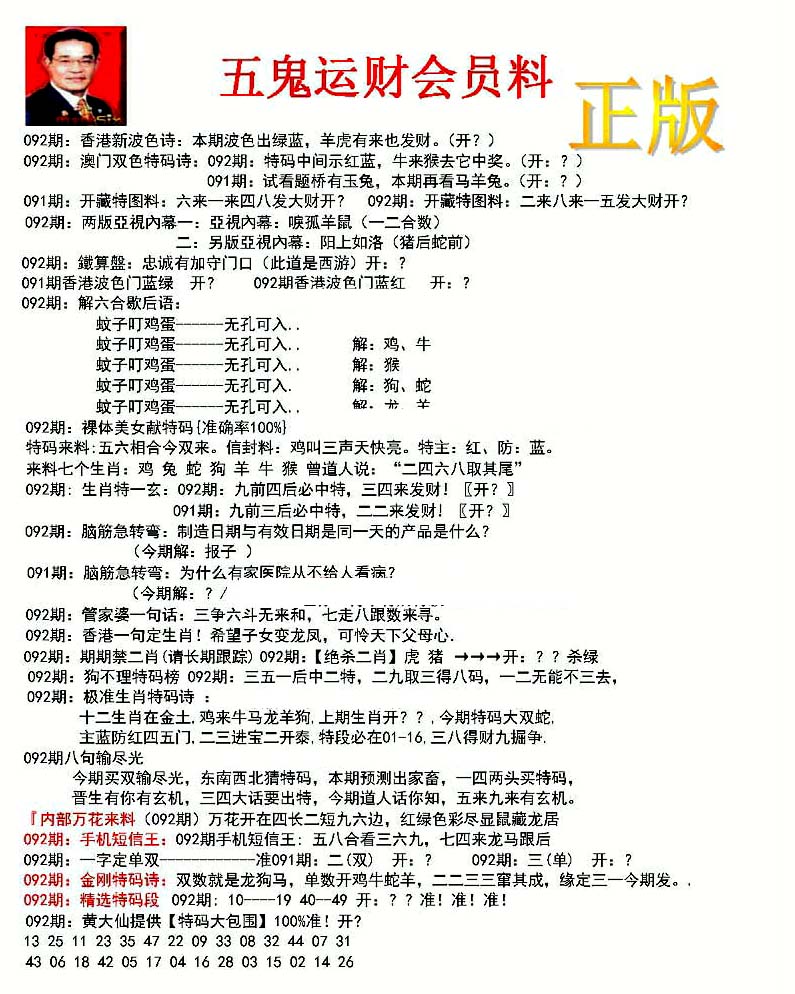 | 1401 | 正版2800信封 | 1402 | 特码内幕A | 1403 | 特码内幕B | 1404 | 五鬼正宗综合资料A | |||||||||||||||||||||||||||||||||||||||||||||||||||