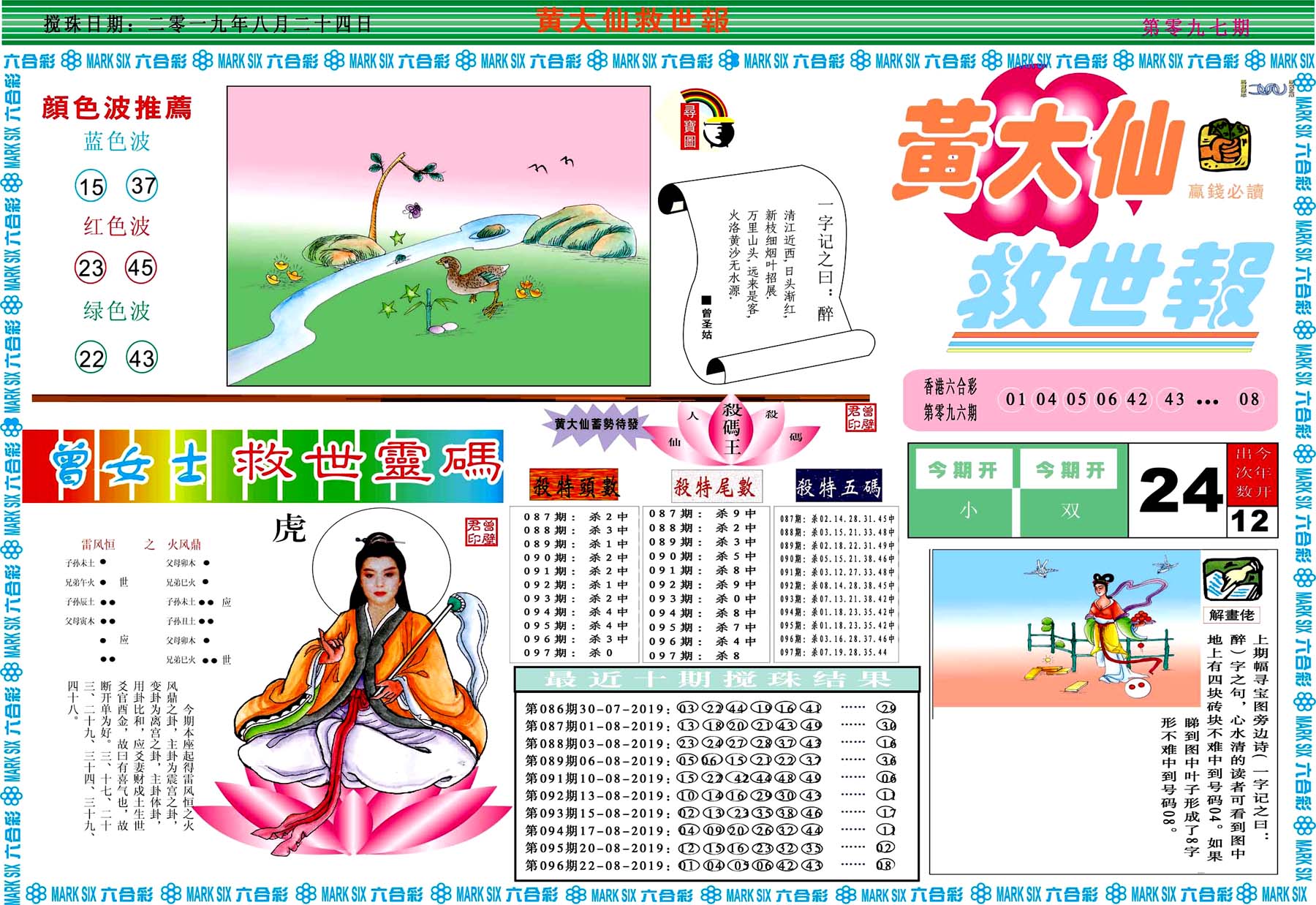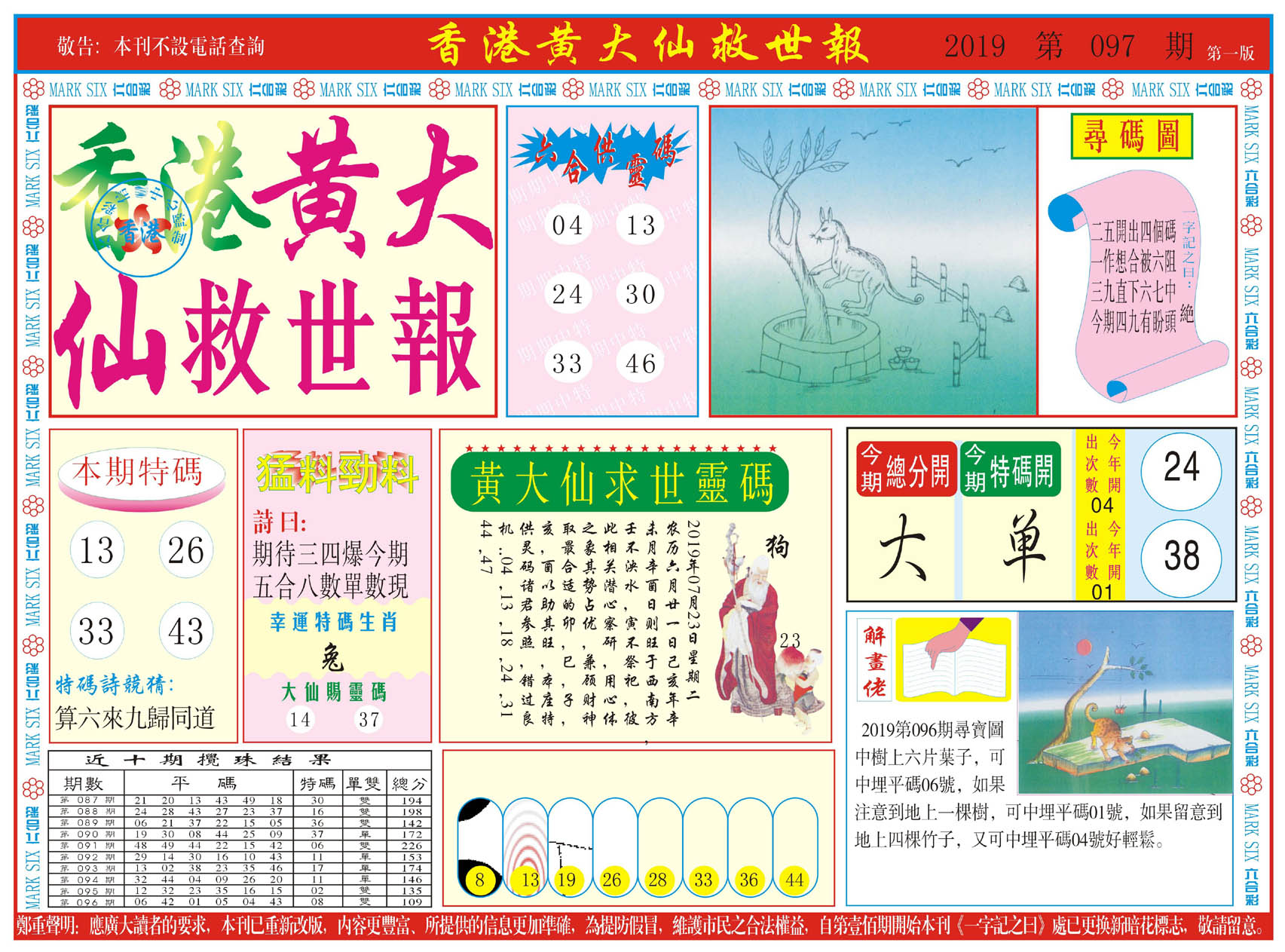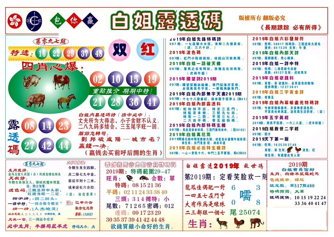 | 019 | 黄大仙救世报A | 020 | 黄大仙救世报B | 021 | 香港黄大仙报A | 022 | 香港黄大仙报B | |||||||||||||||||||||||||||||||||||||||||||||||||||