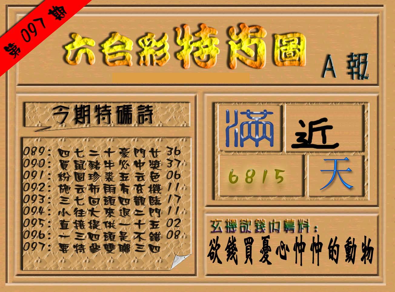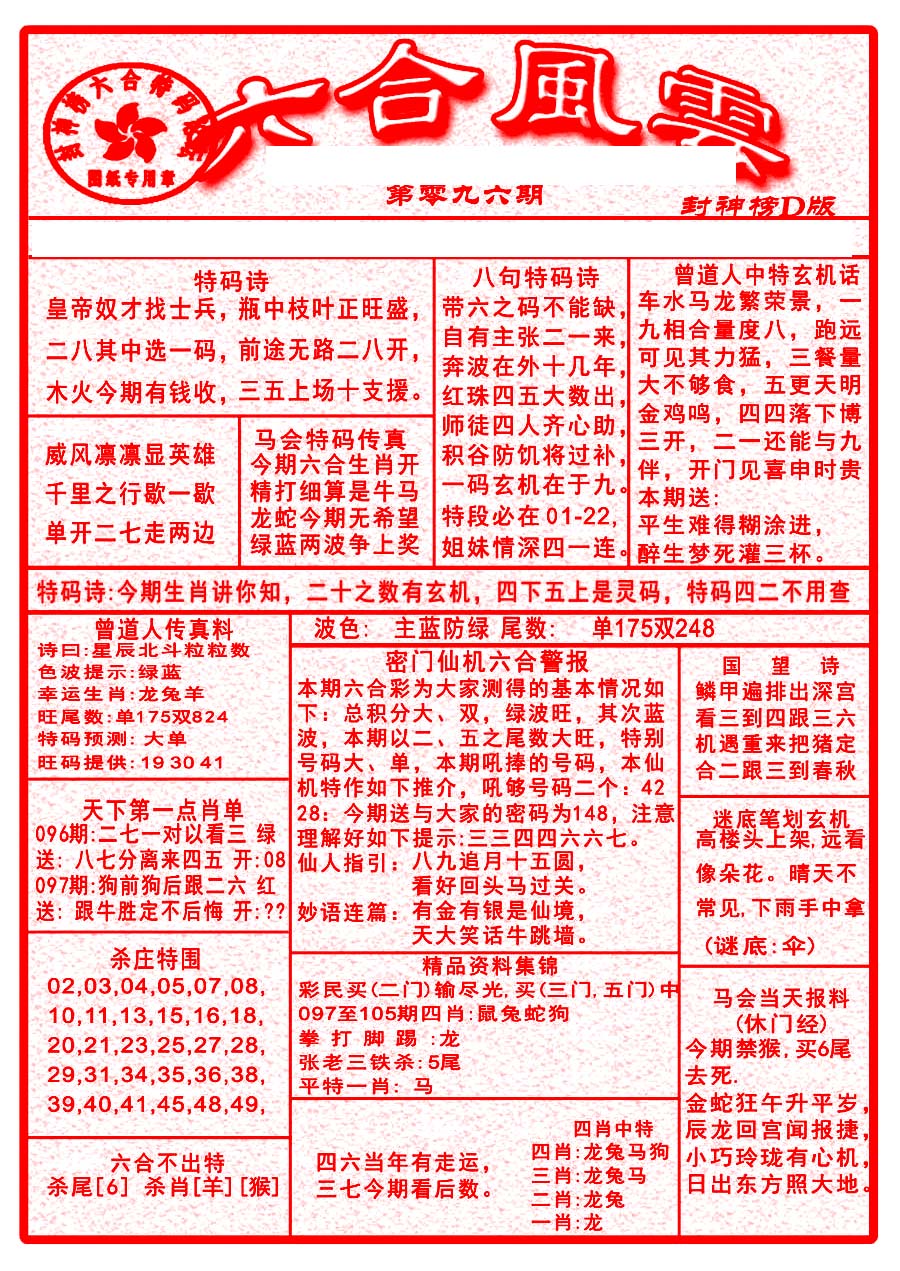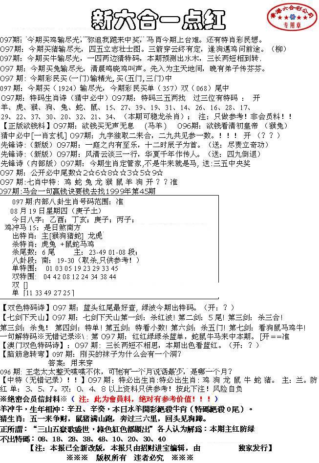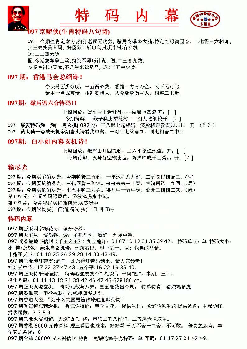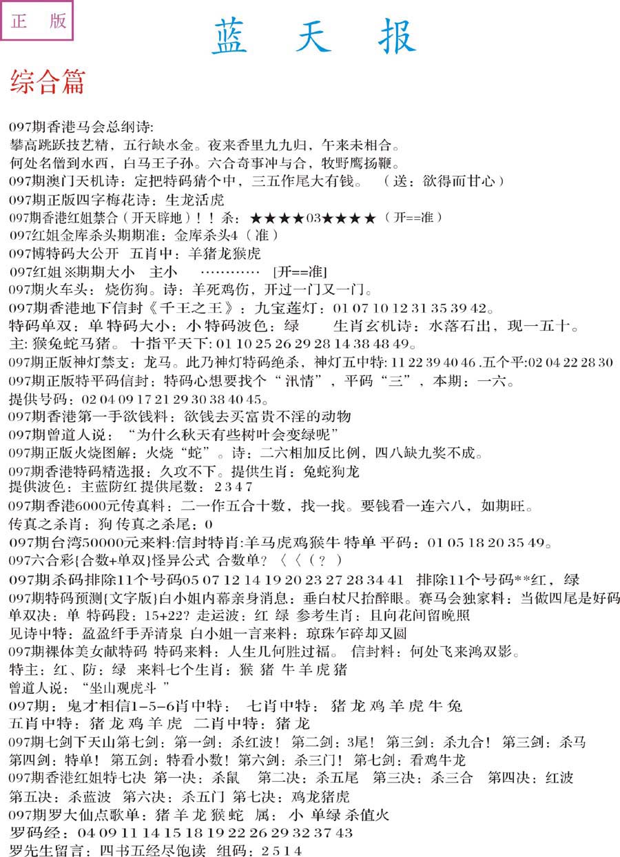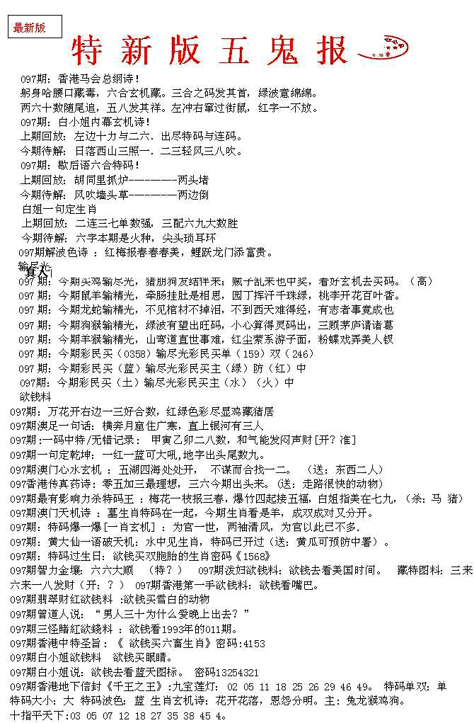 | 063 | 六合禅机A | 064 | 六合禅机B | 069 | 特 新 报A | 070 | 特 新 报B | |||||||||||||||||||||||||||||||||||||||||||||||||||