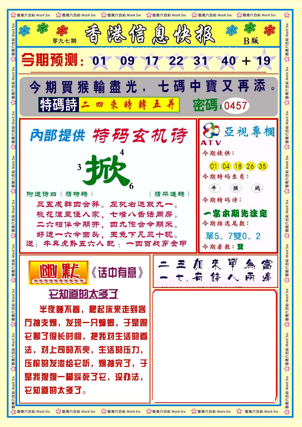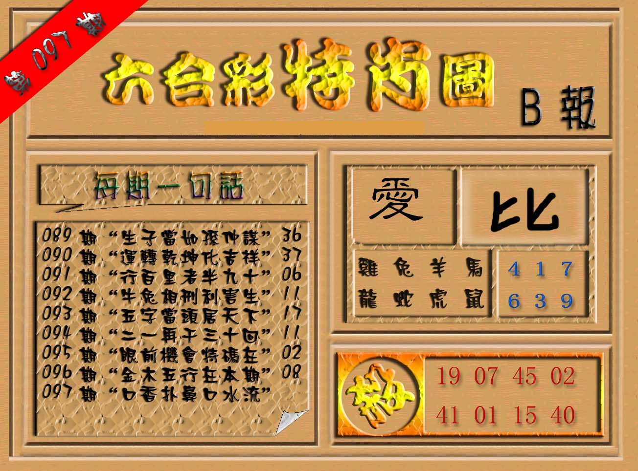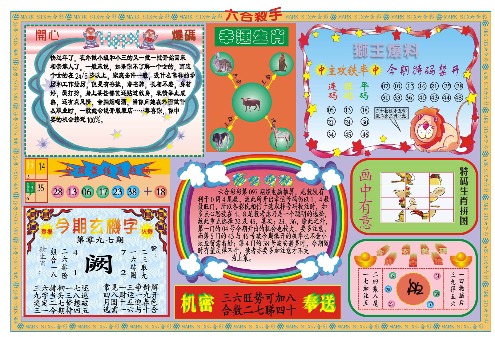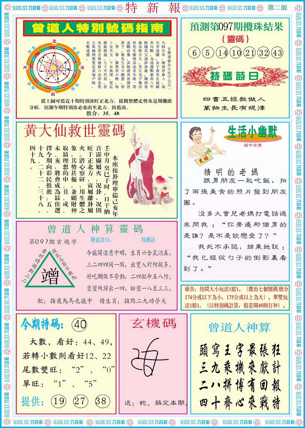 | 063 | 六合禅机A | 064 | 六合禅机B | 069 | 特 新 报A | 070 | 特 新 报B | |||||||||||||||||||||||||||||||||||||||||||||||||||