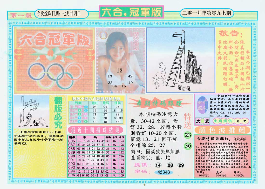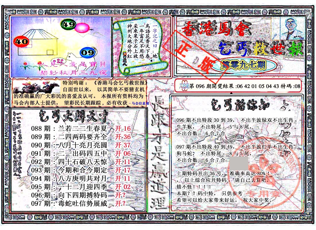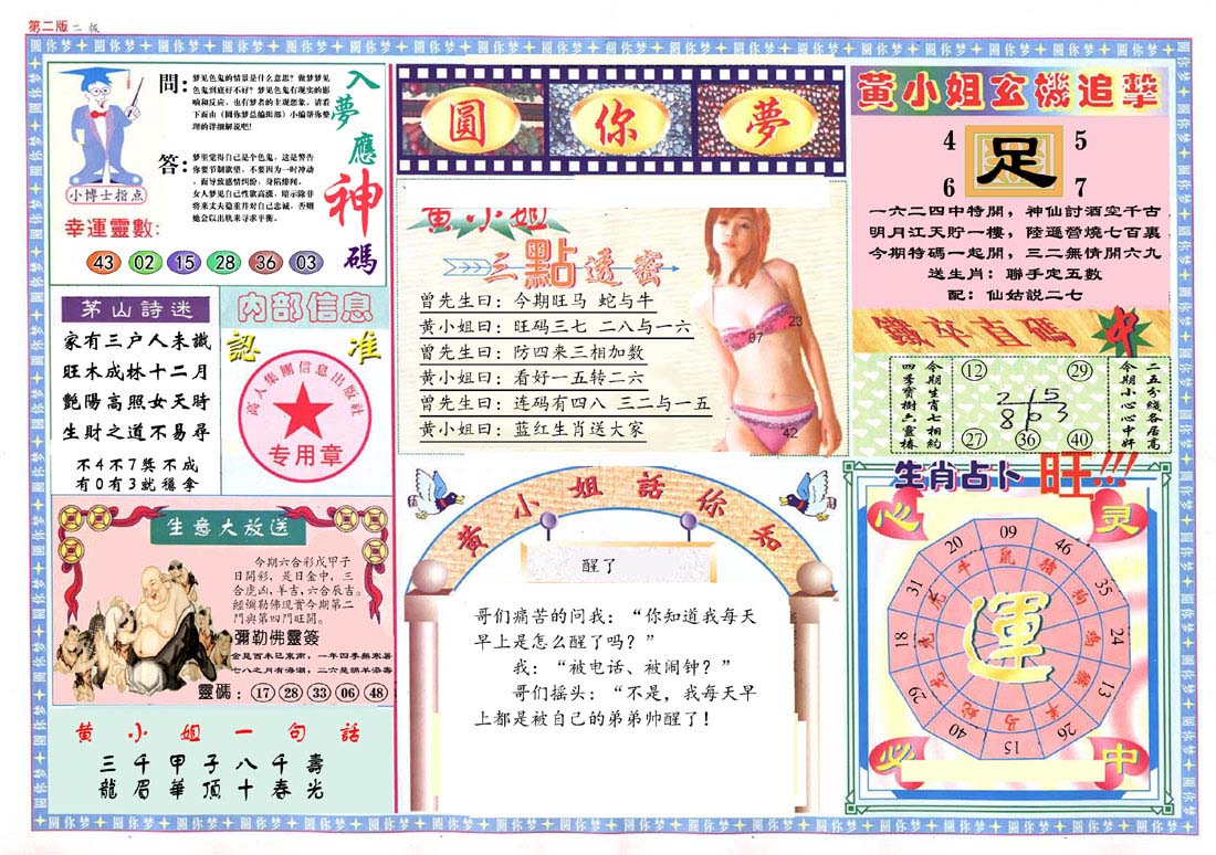 | 1336 | 统一玄机报 | 1337 | 正宗青龙五鬼报A | 1338 | 正宗青龙五鬼报B | 1339 | 美女六肖报 | |||||||||||||||||||||||||||||||||||||||||||||||||||